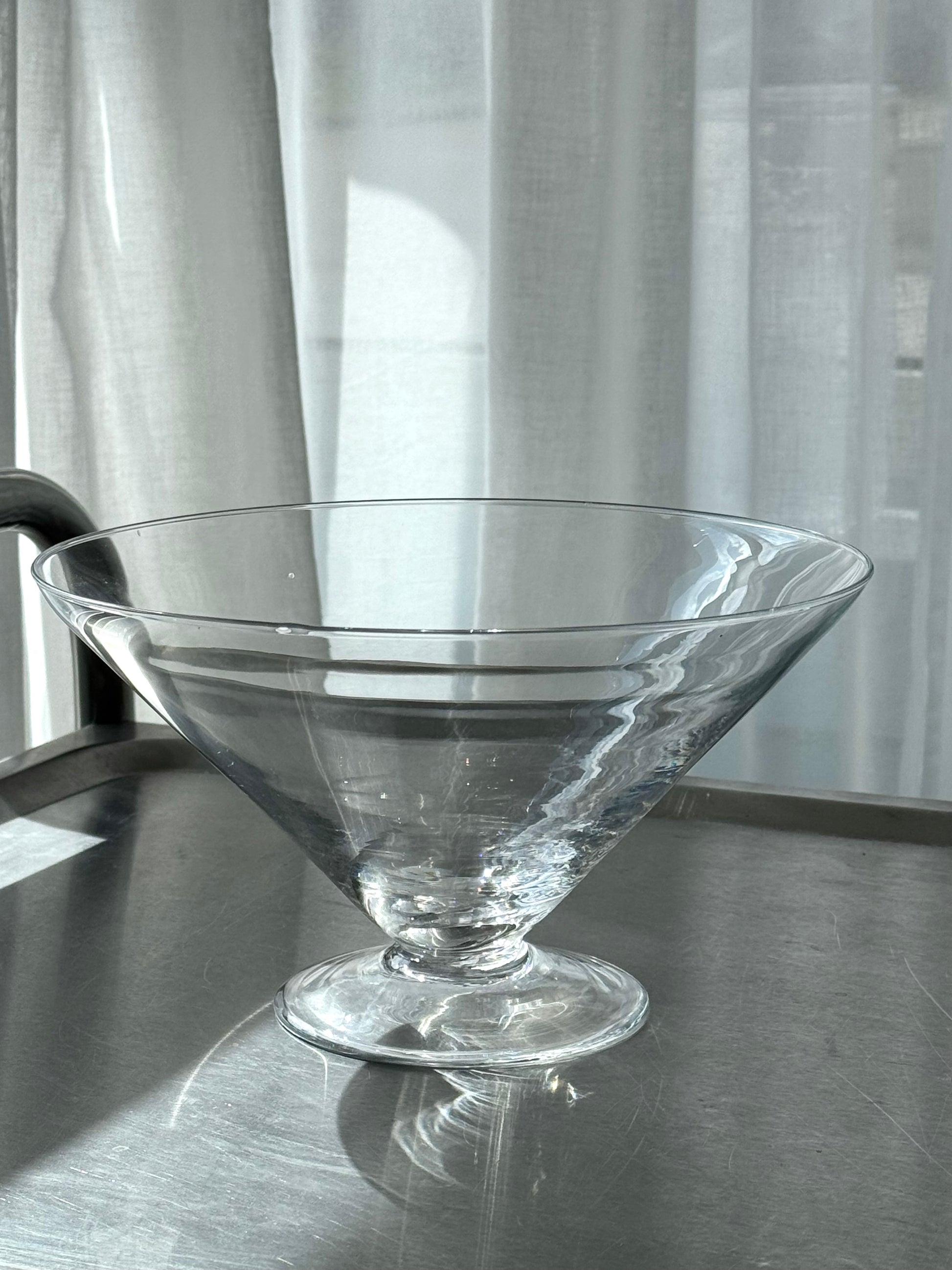 Beautiful Big glass bowl on foot, handmade. Nice condition.