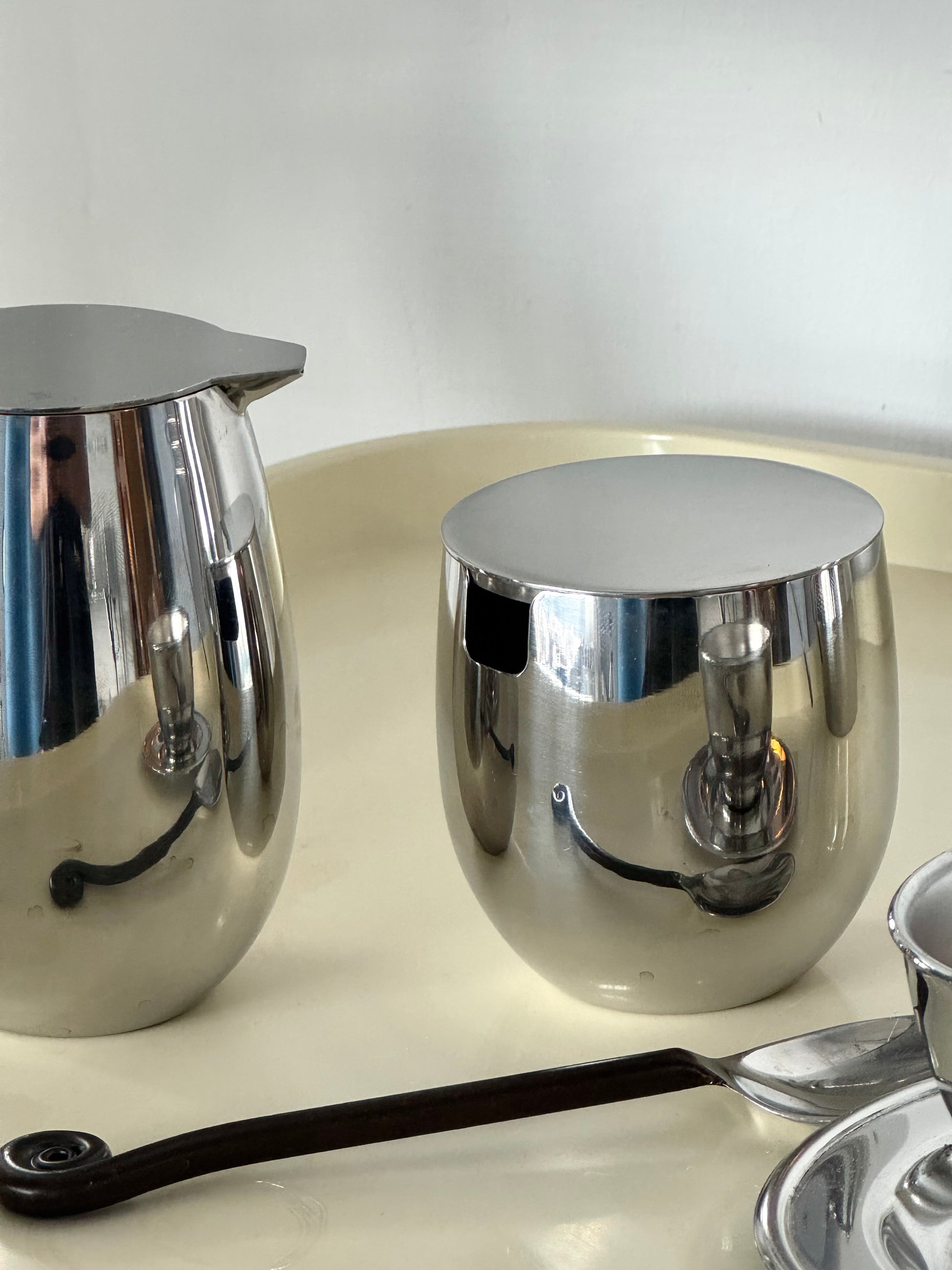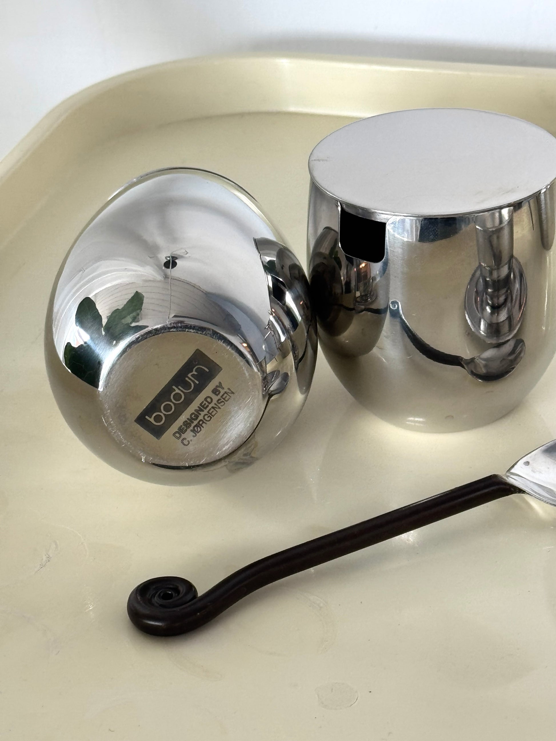 Cute bodum milk and sugar bowl with lid, stainless steel. Nice condition.