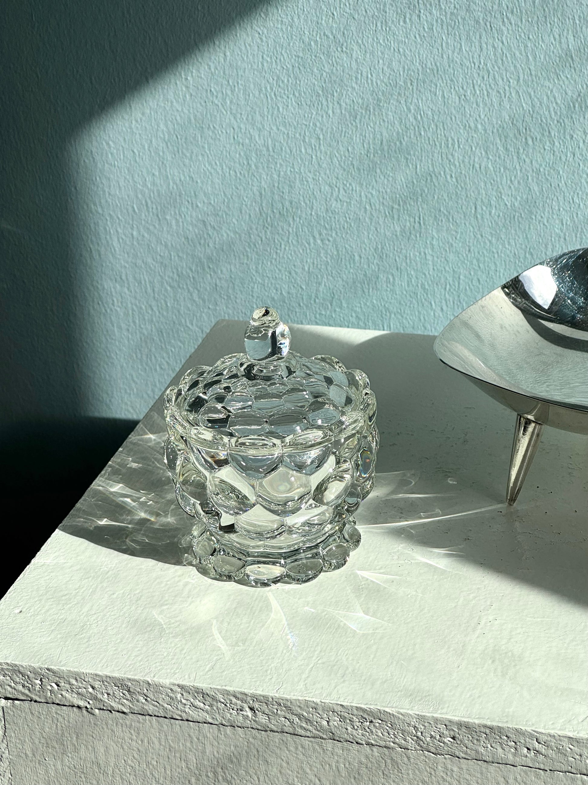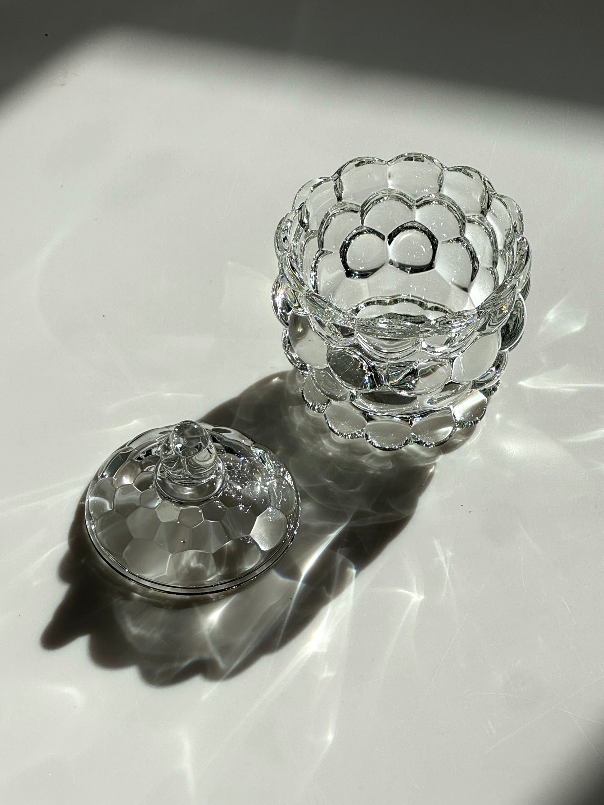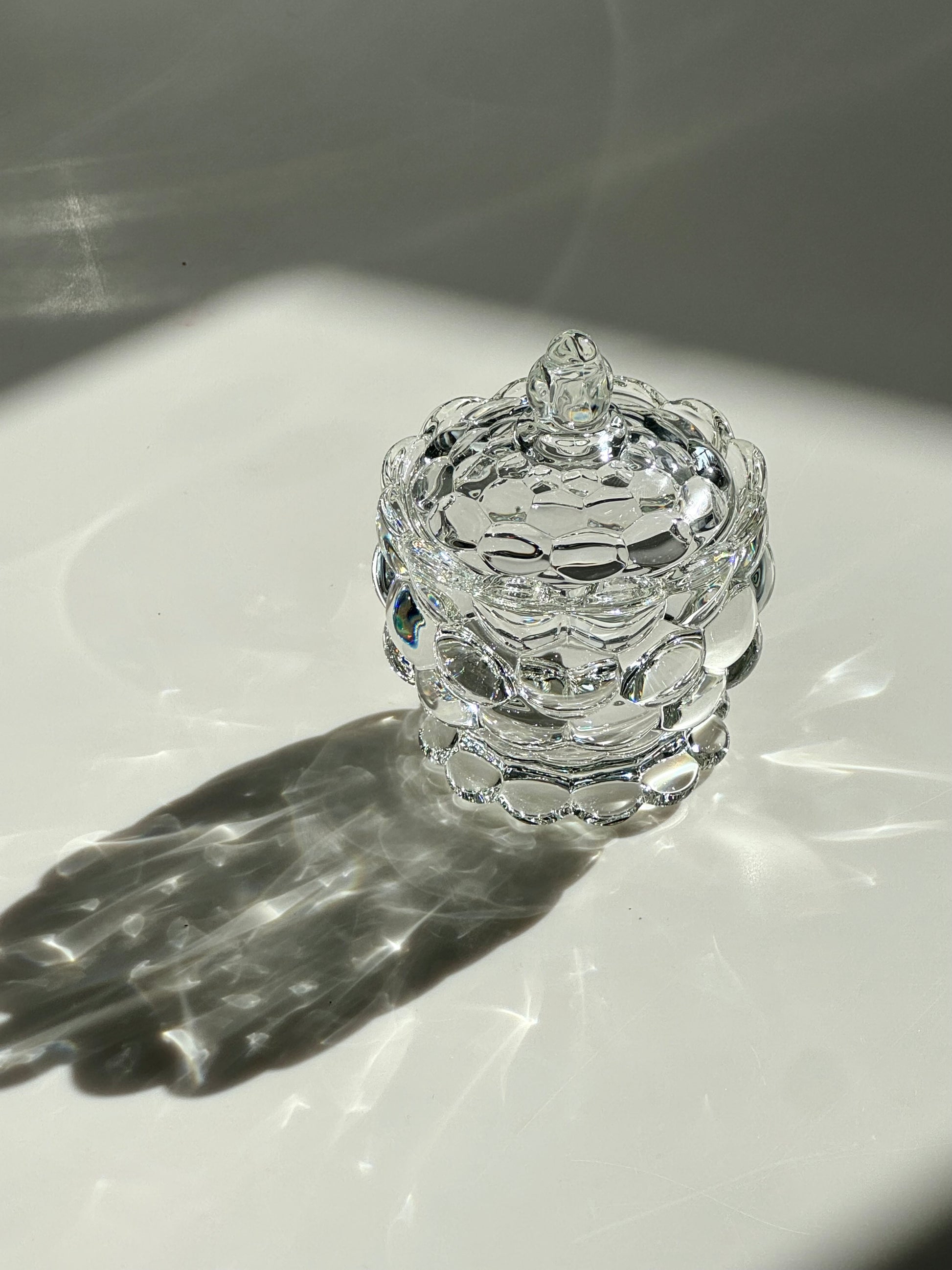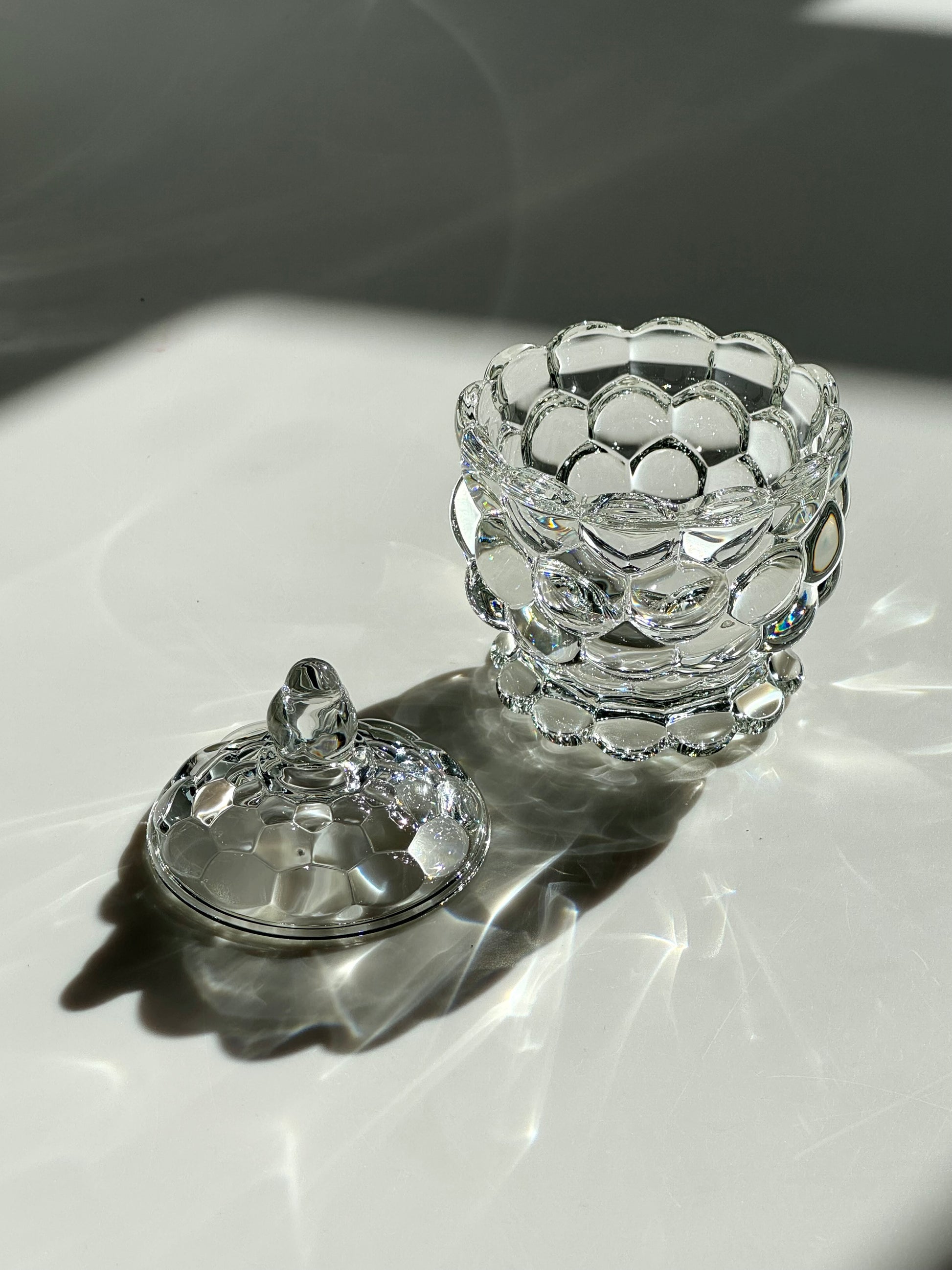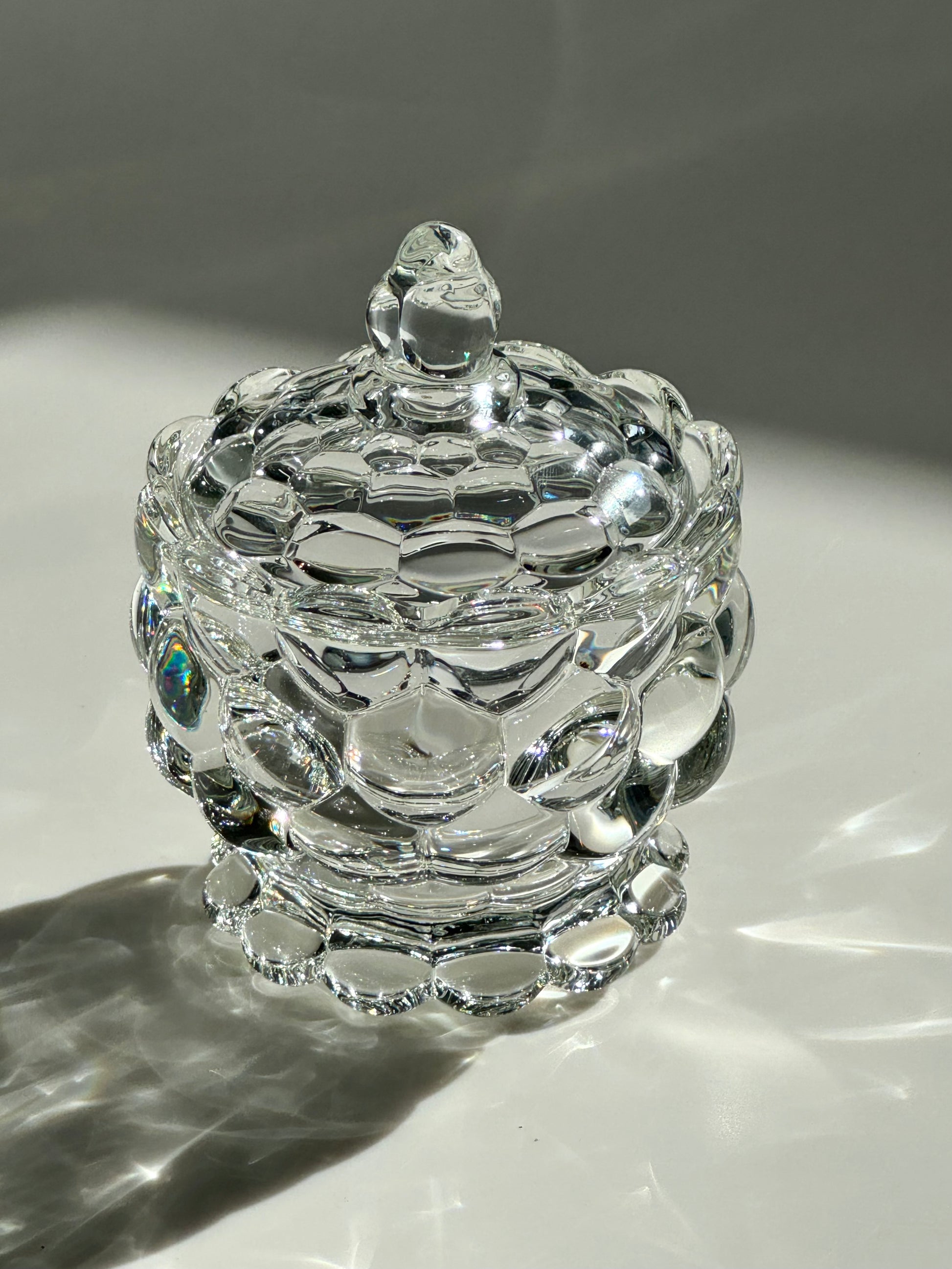 Chunky bubble bonbonniere, made in glass. Finest shine when the Sun hits. Very nice condition.