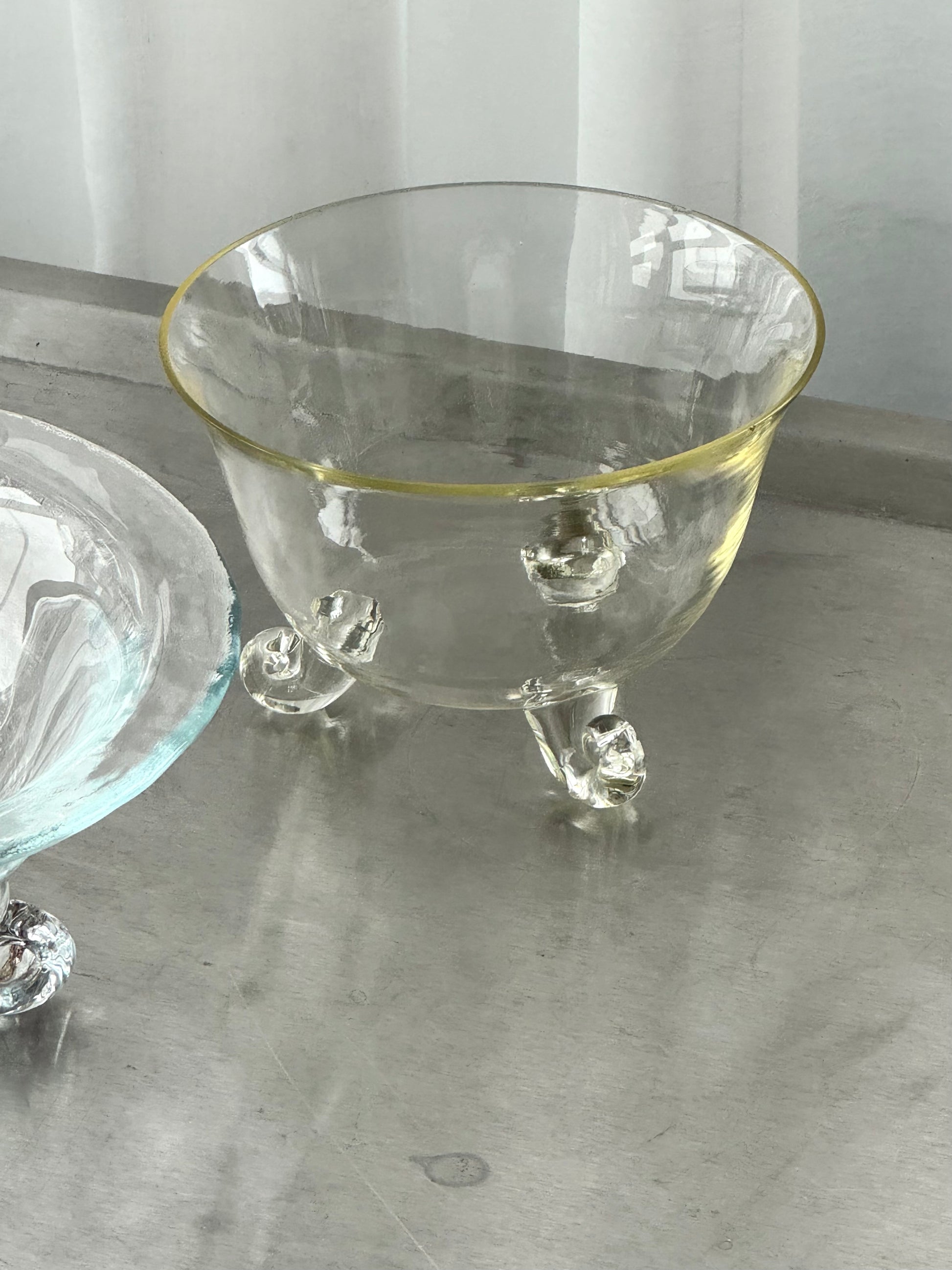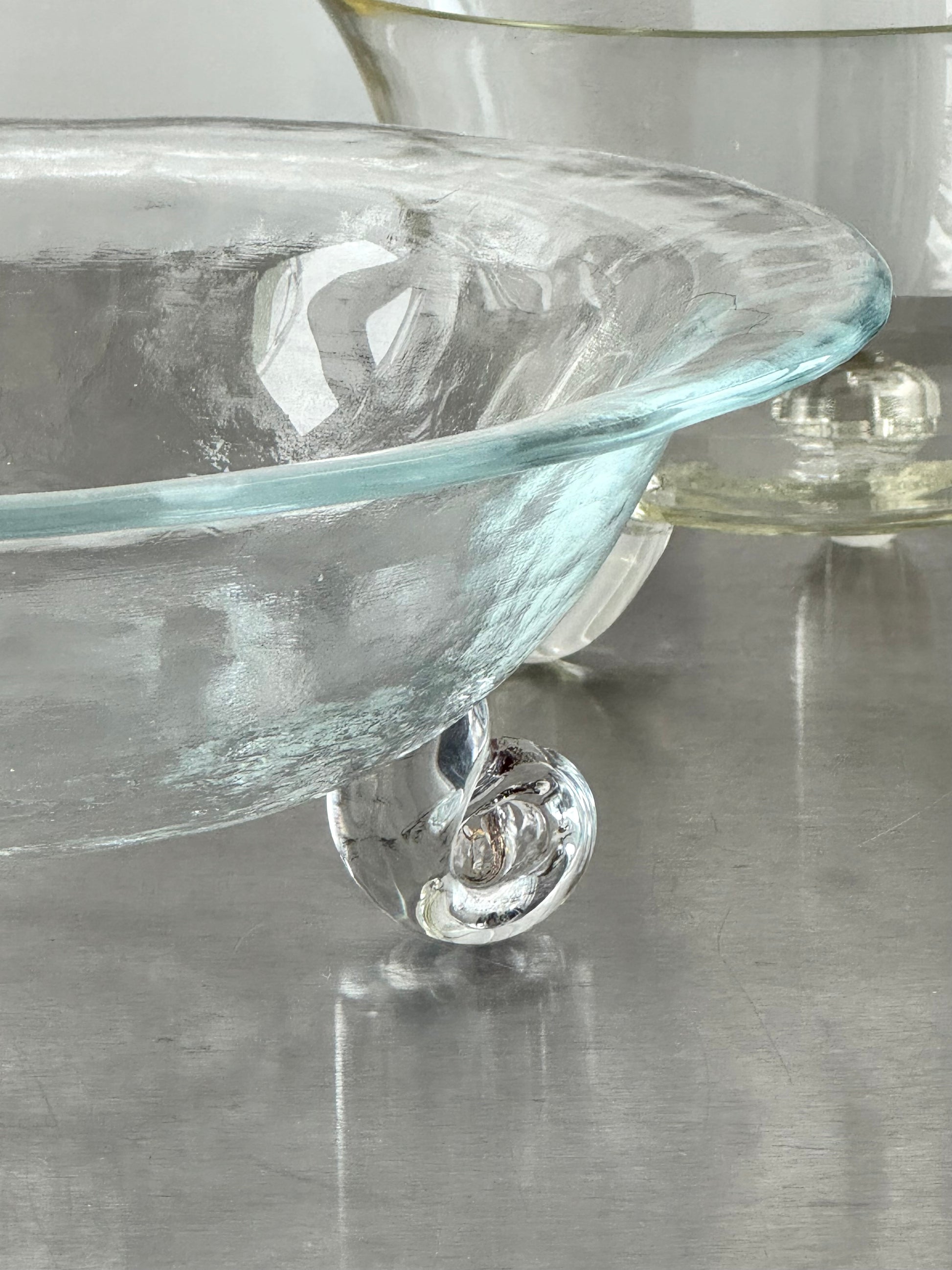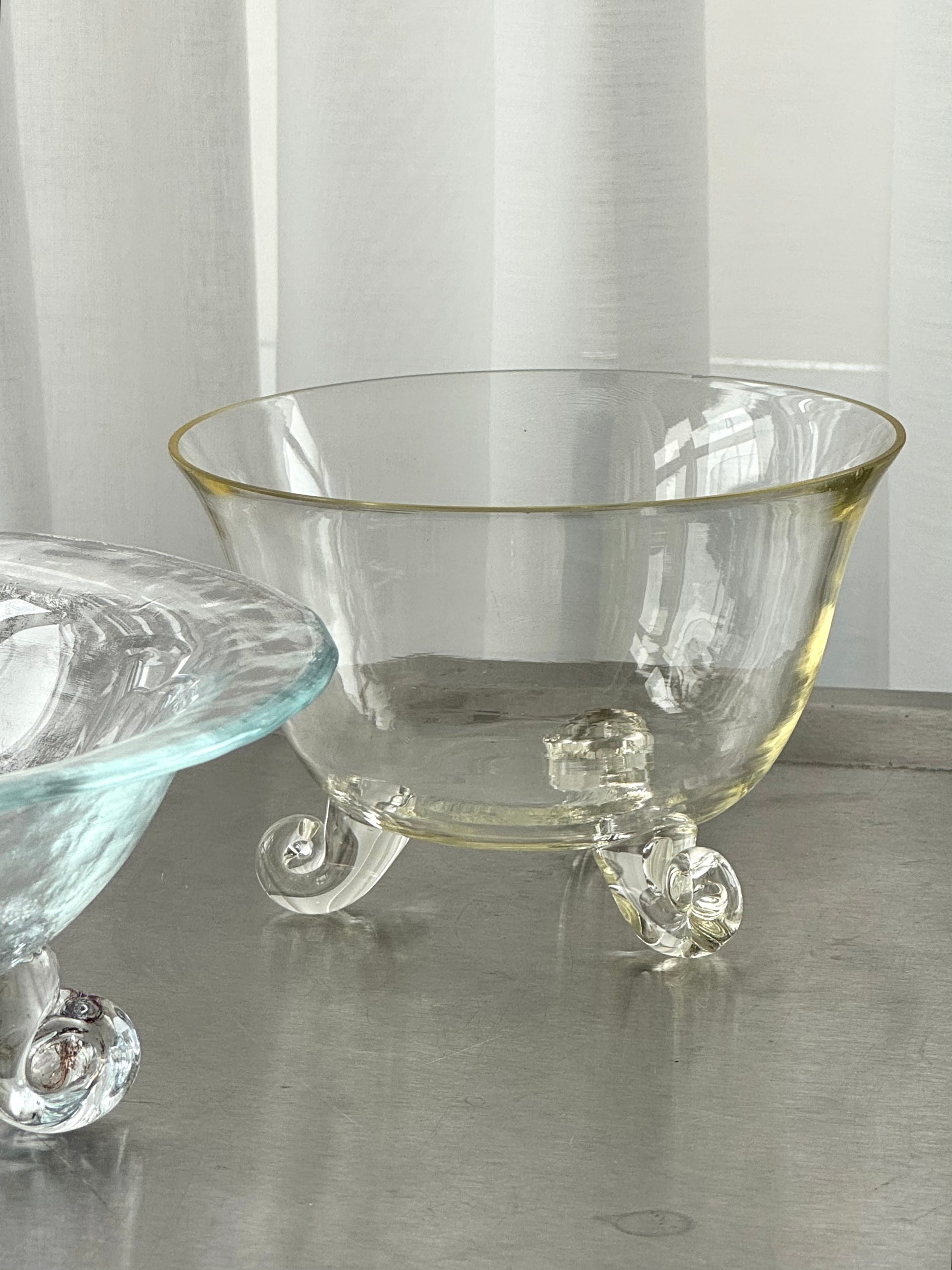 Cute handmade bowl on coiled feet, Big in Nice condition, Small with a Small chip. Price is for one.