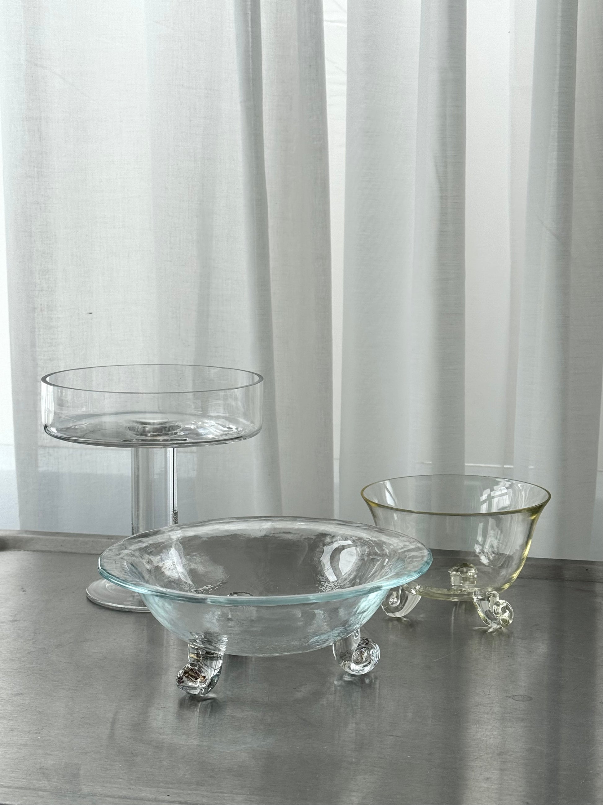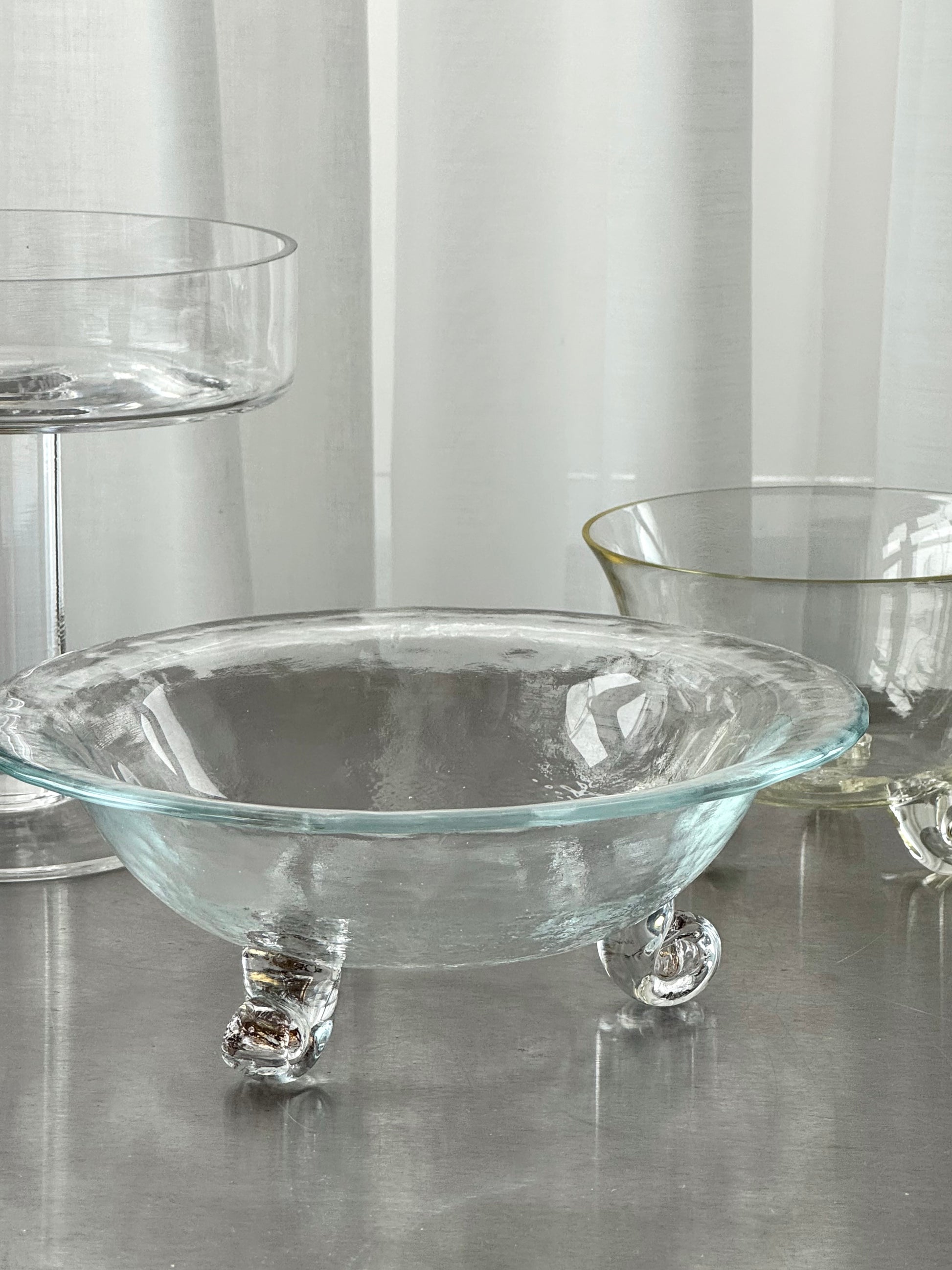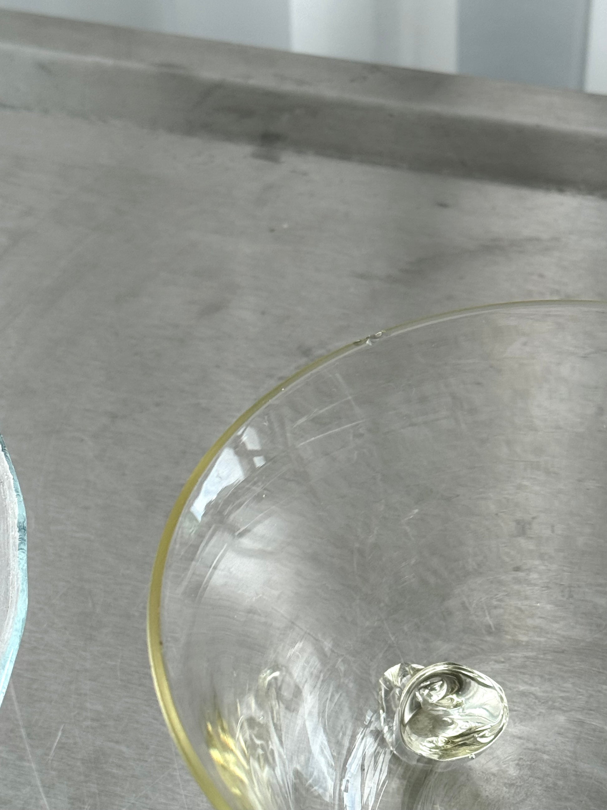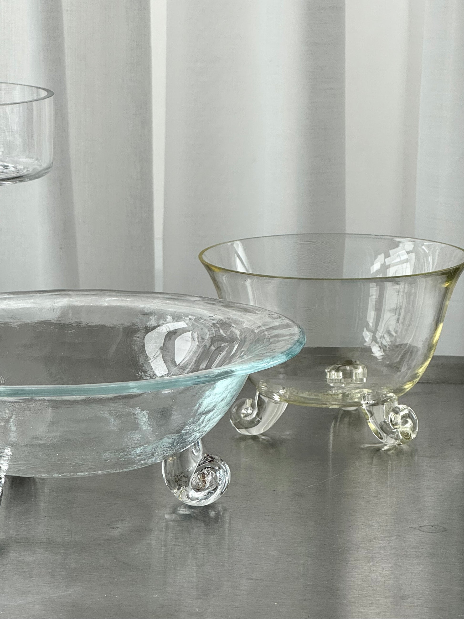 Cute handmade bowl on coiled feet, Big in Nice condition, Small with a Small chip. Price is for one.