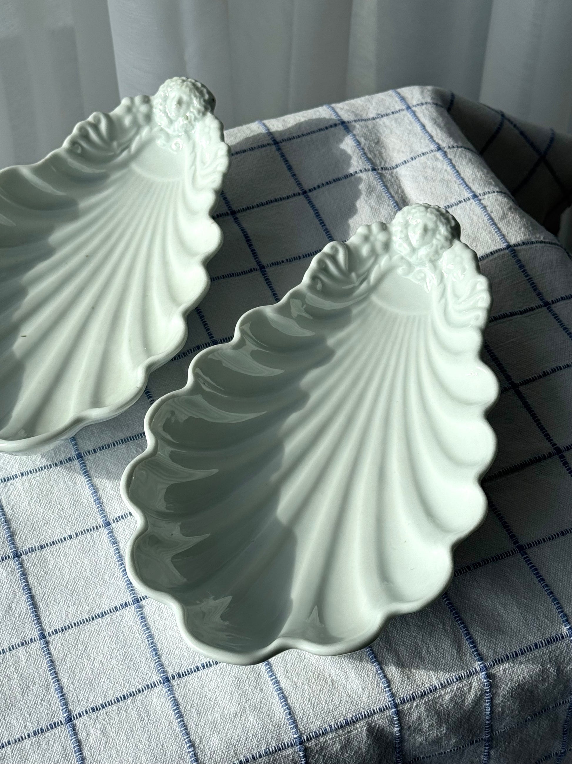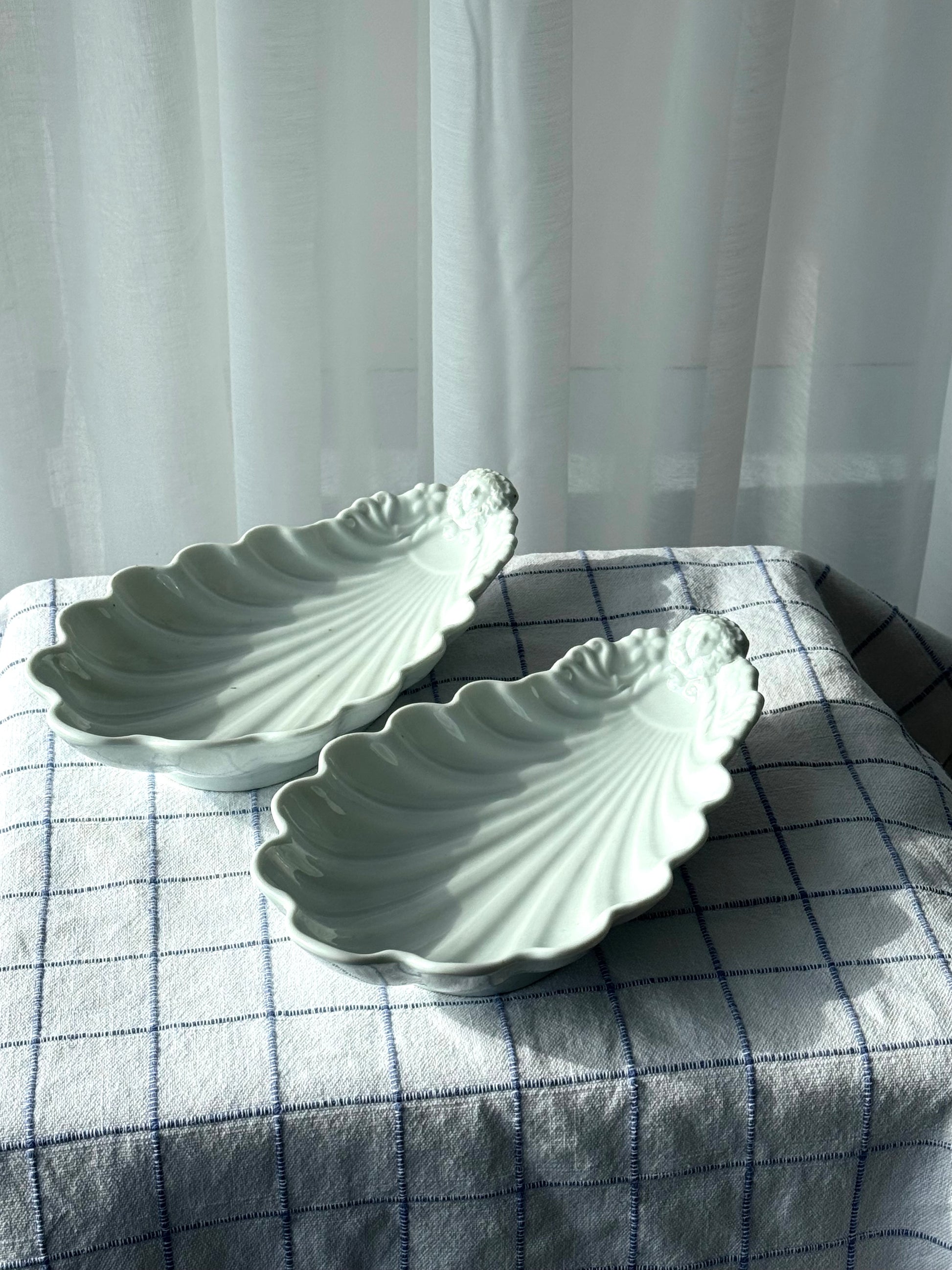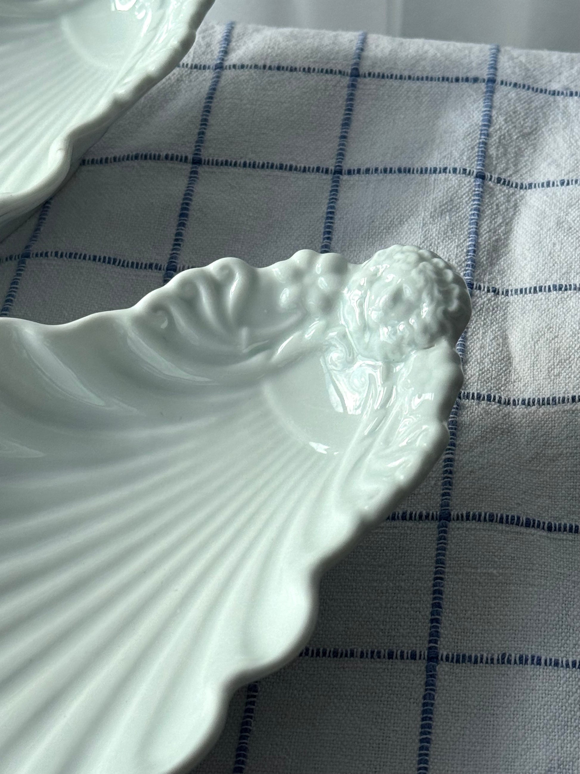 Vintage porcelain clam bowl. One in great condition, one with scratches.