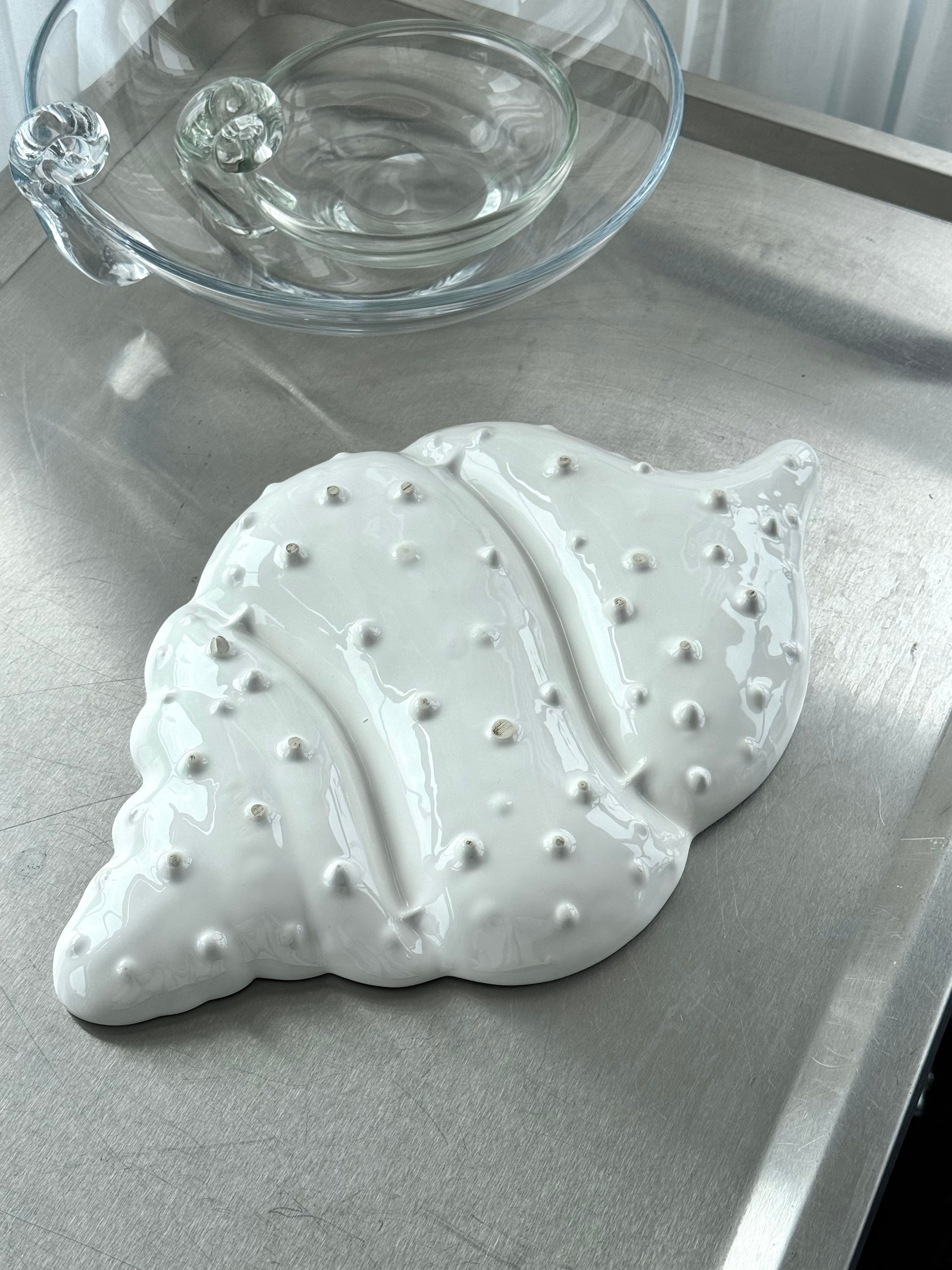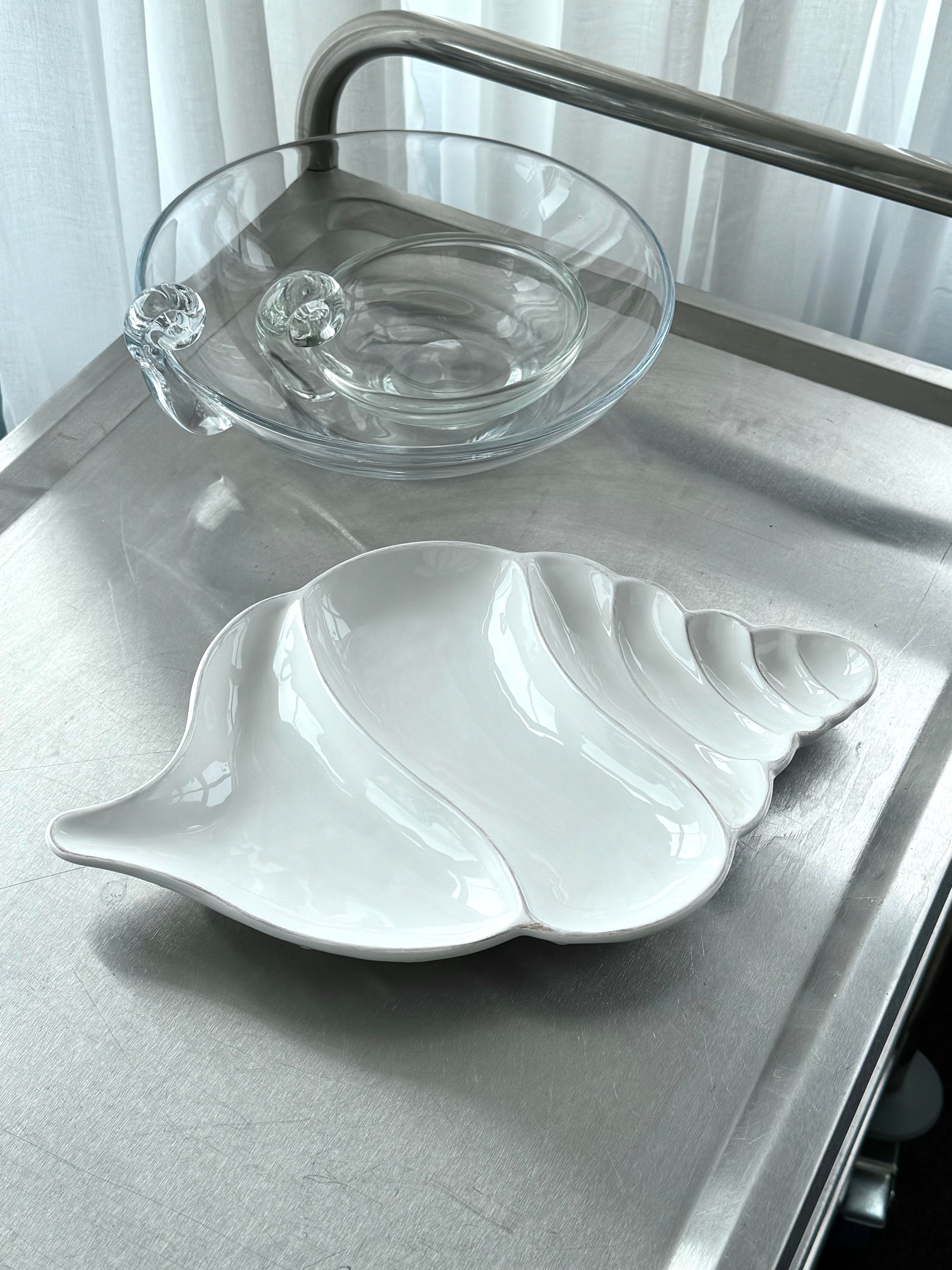 Cute Italian conch shell dish with divisions, ceramic with White glaze. Condition is used but nice.