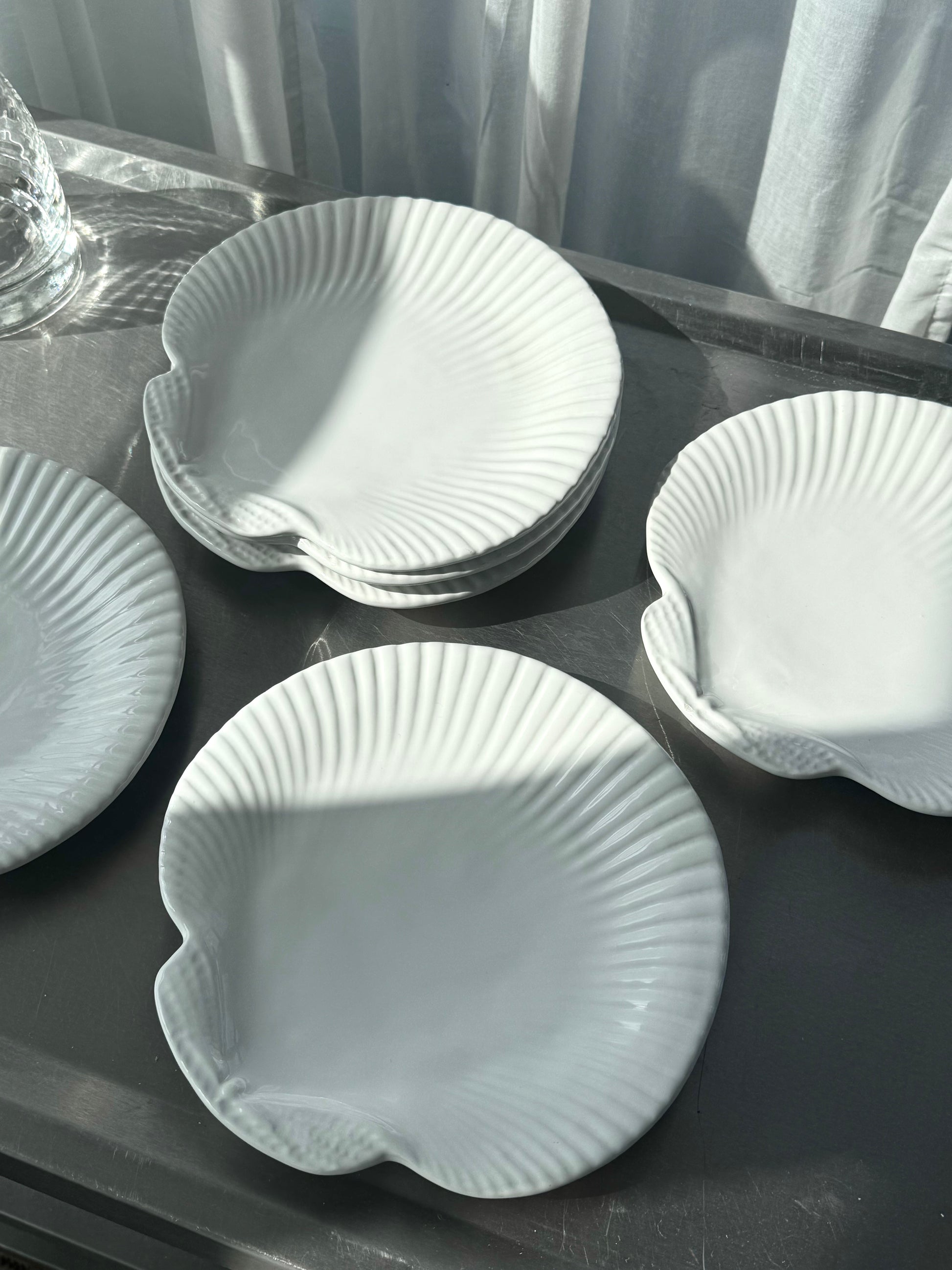 Vintage clam plates by Costa, handmade in italy. Chunky plates with creamy glaze. Condition is nice, two plates Comes with a Small chip.