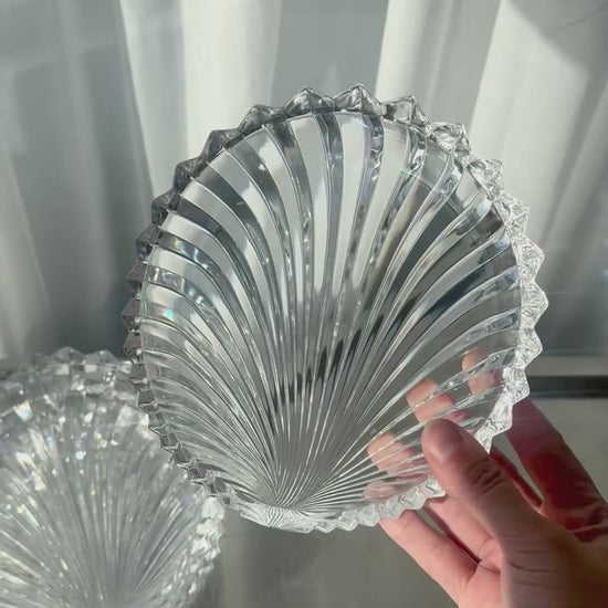 Stunning crystal plates, shaped like a clam. Very nice condition. 4 pieces available, Price is for one.