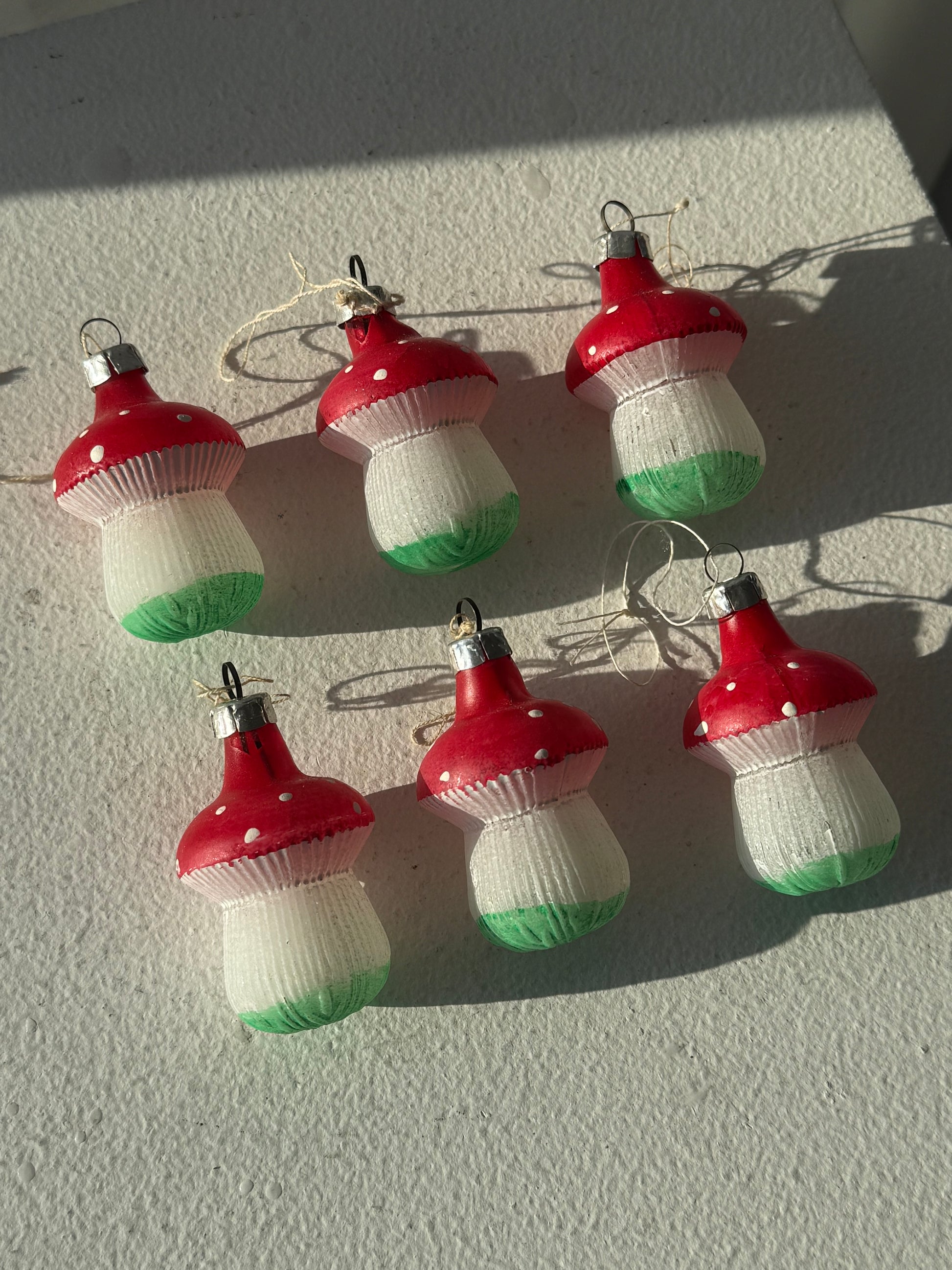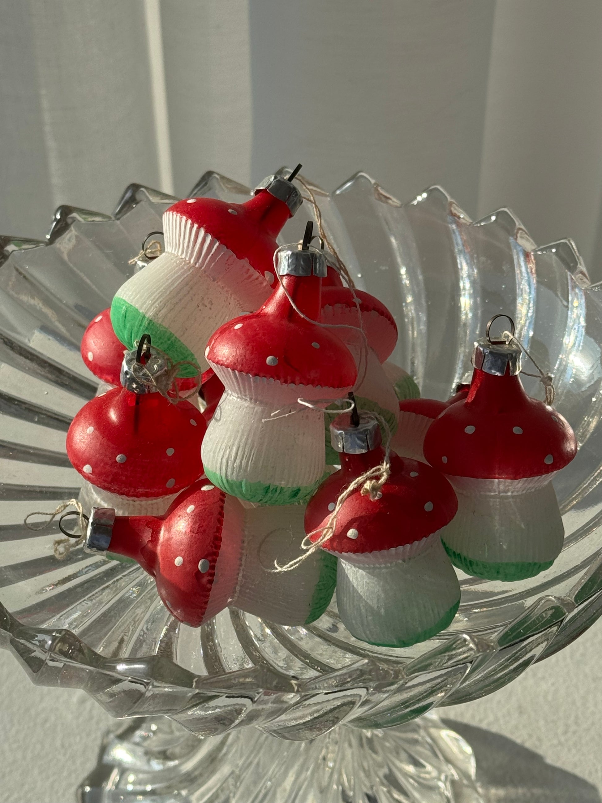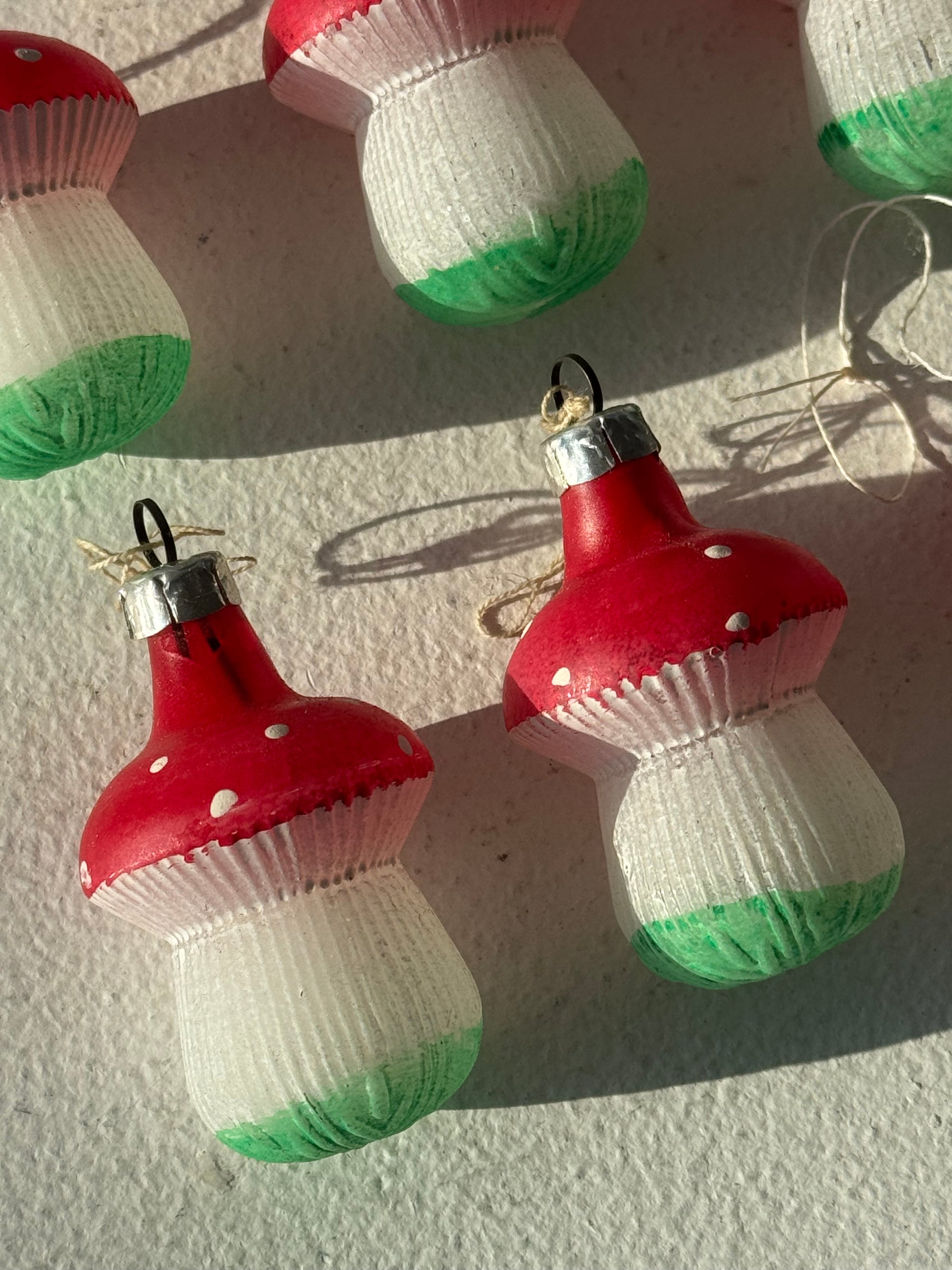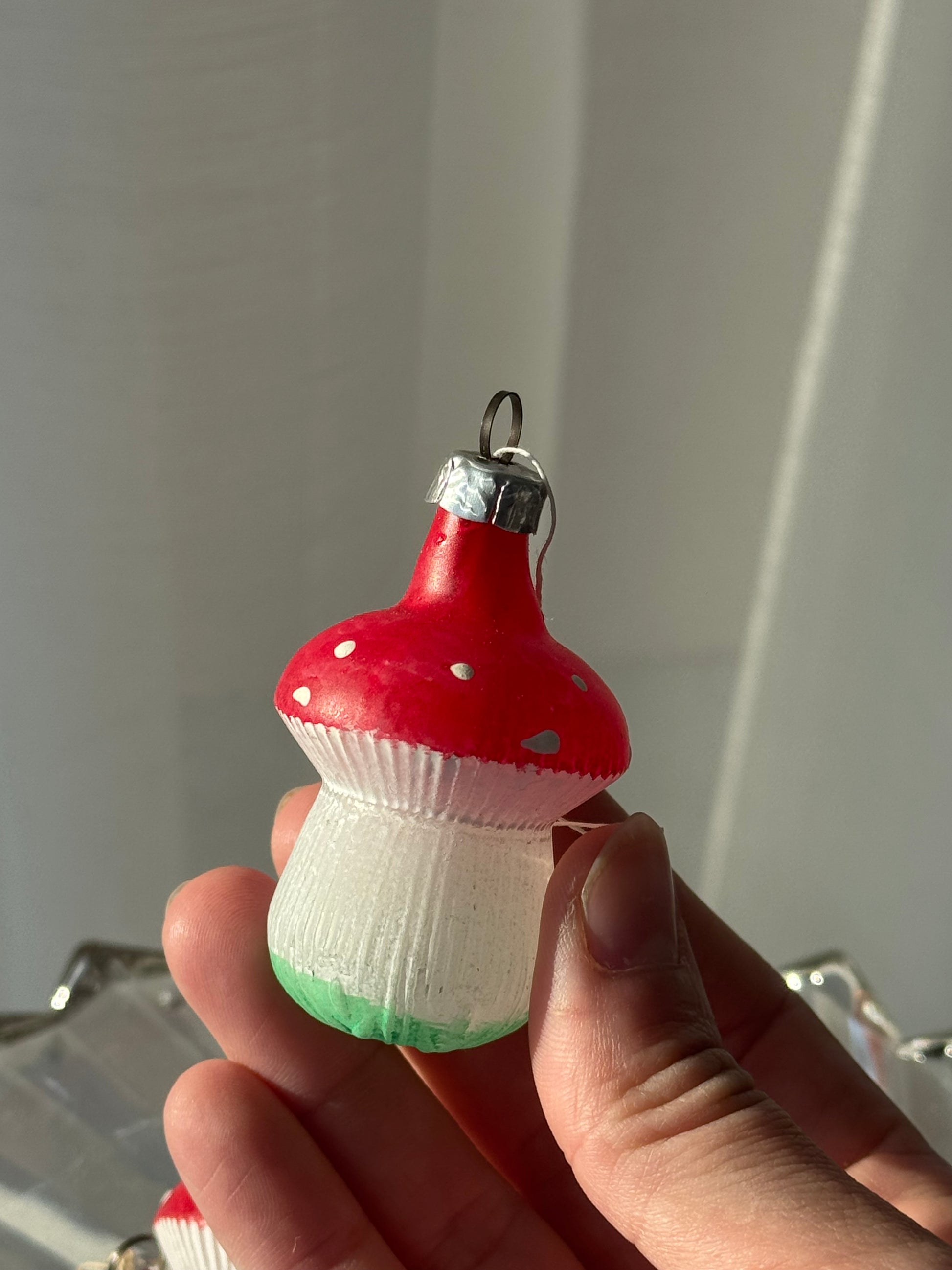 Incredibly beautiful vintage DDR glass mushroom ornaments. Very good condition. Rare find. Price is for one.