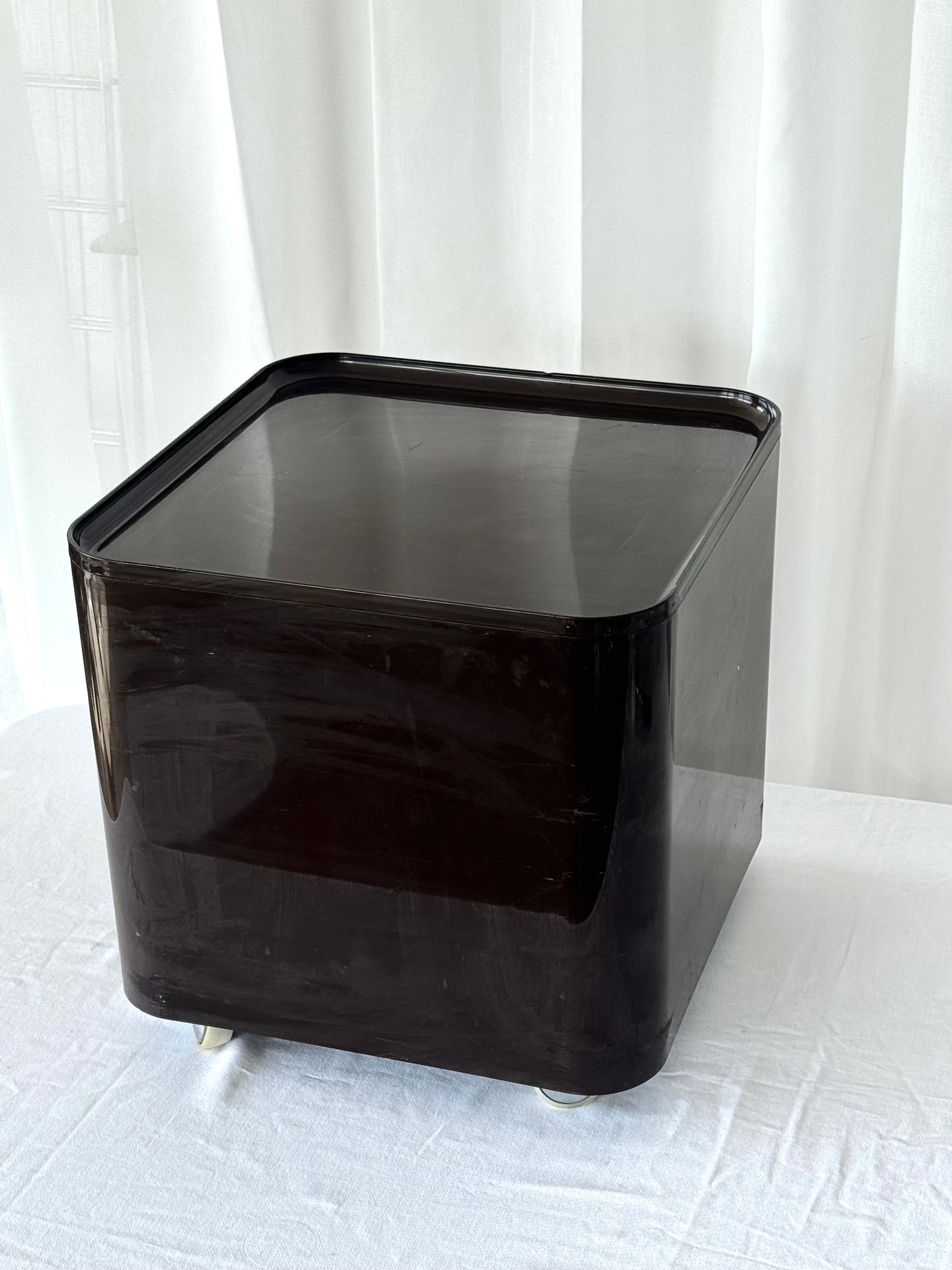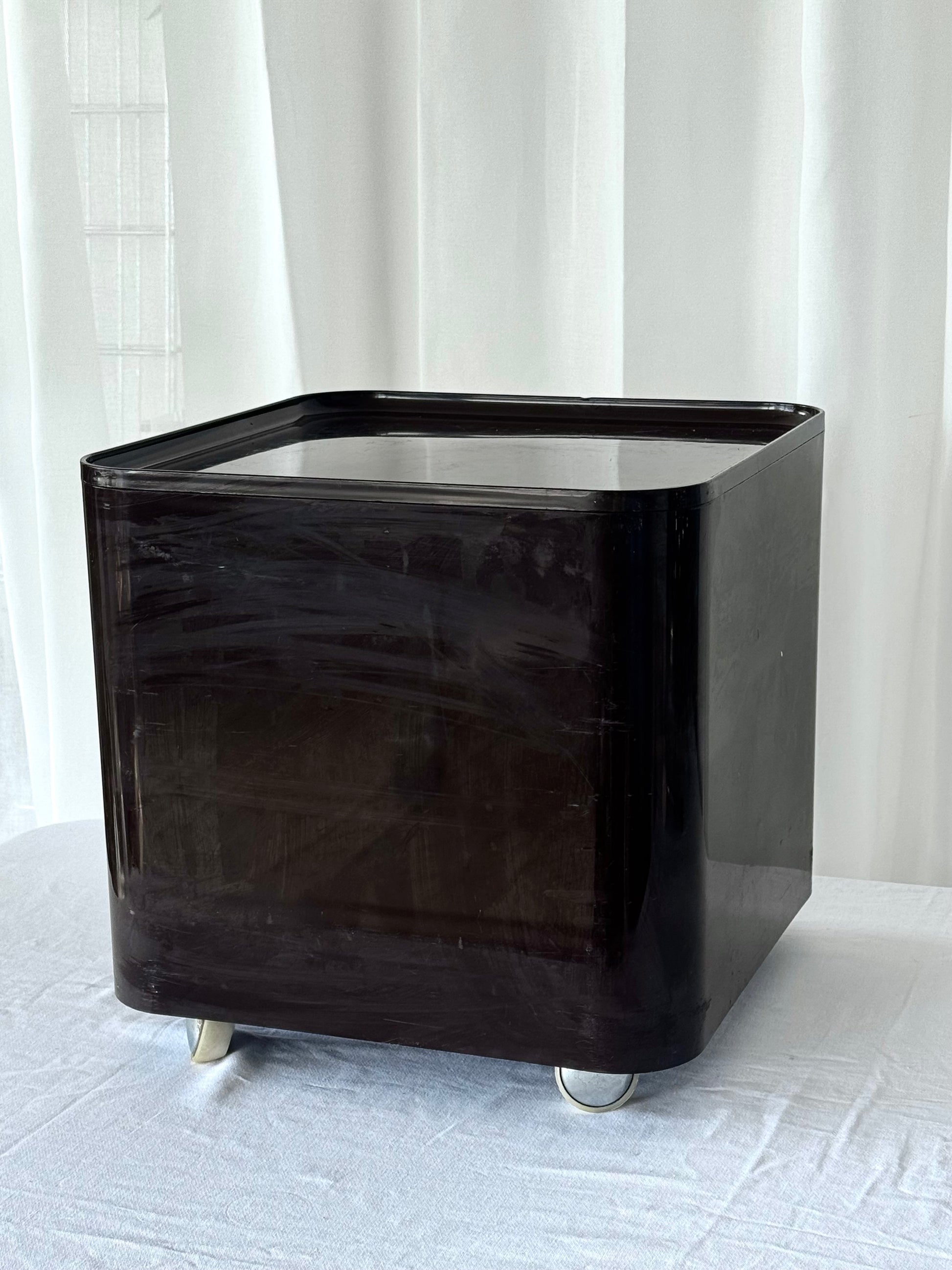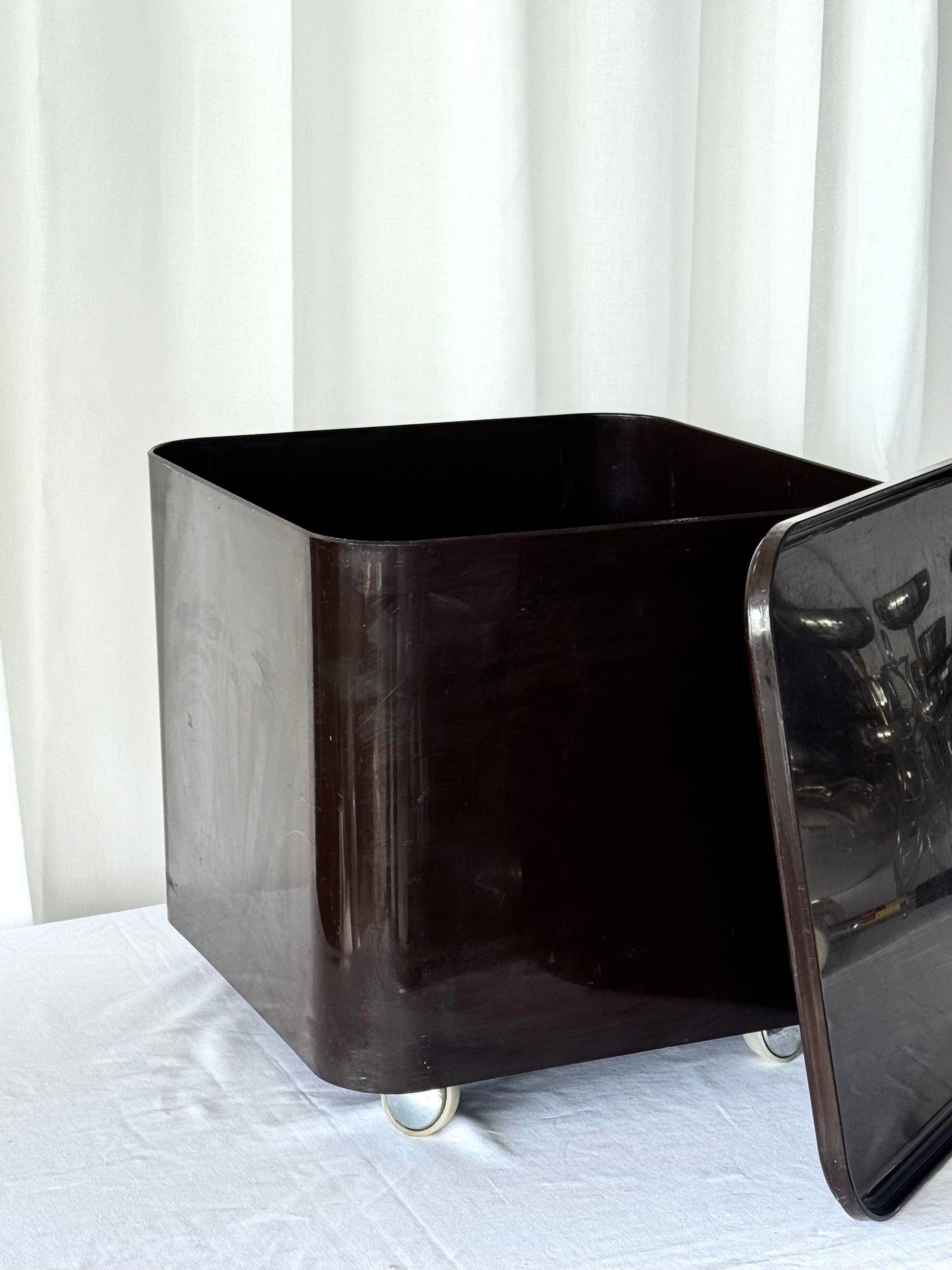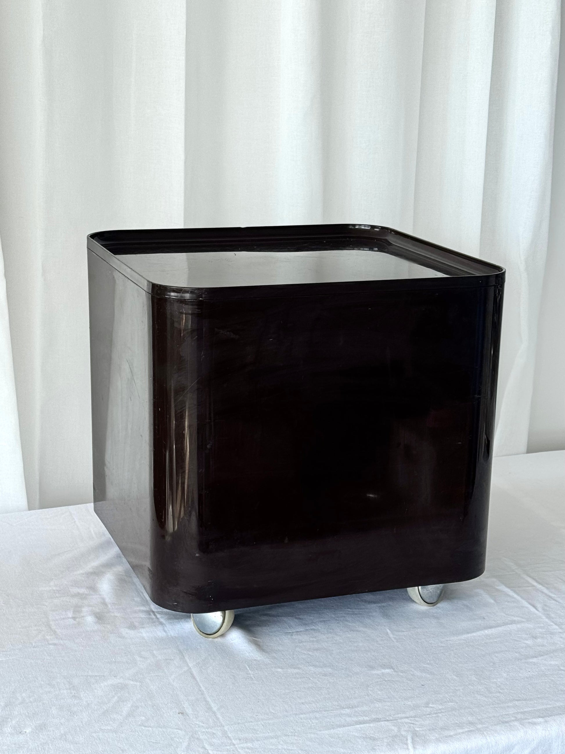 Italian bar trolley “Dime” by Marcello Siard for Longato, 1970. This cool piece is perfect for storage and Small side table. Condition is used with scratches and the wheels has had it hard, but still super nice. Color is chocolate Brown.