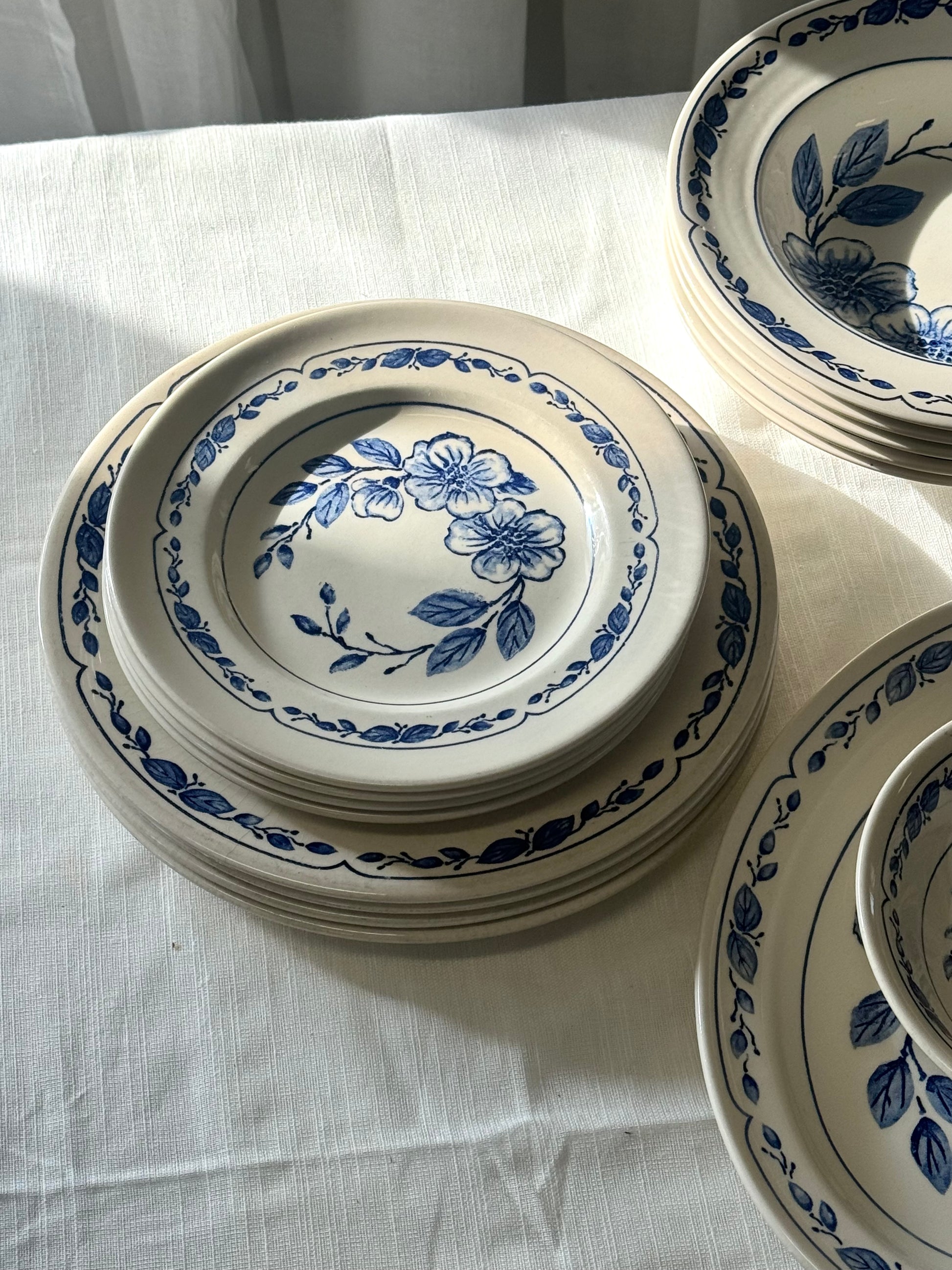 Stunning english porcelain. Handpainted blue flower details on a creamy glade. Comes with signs of use, but no Chips or cracks. Overall Nice condition.