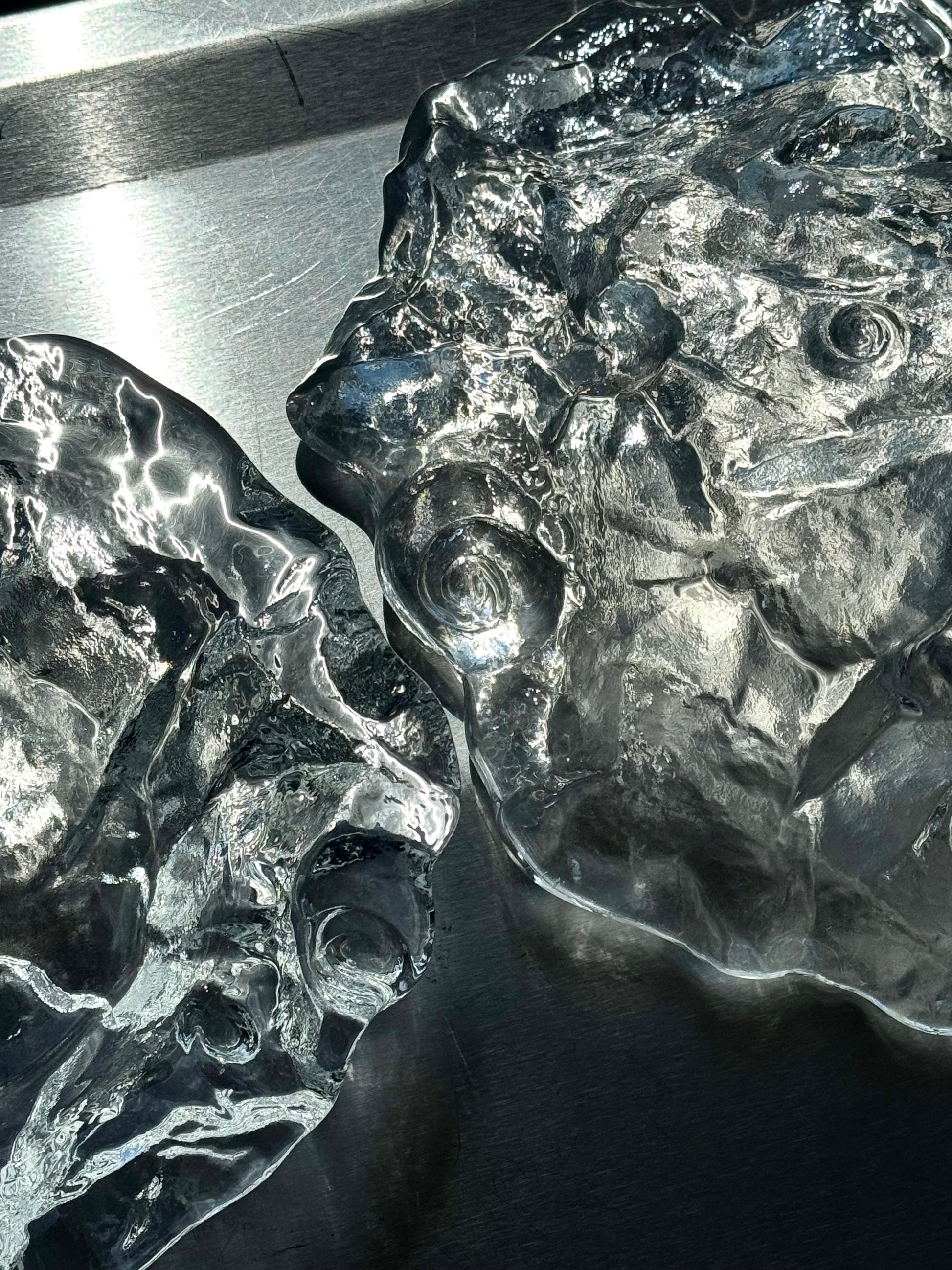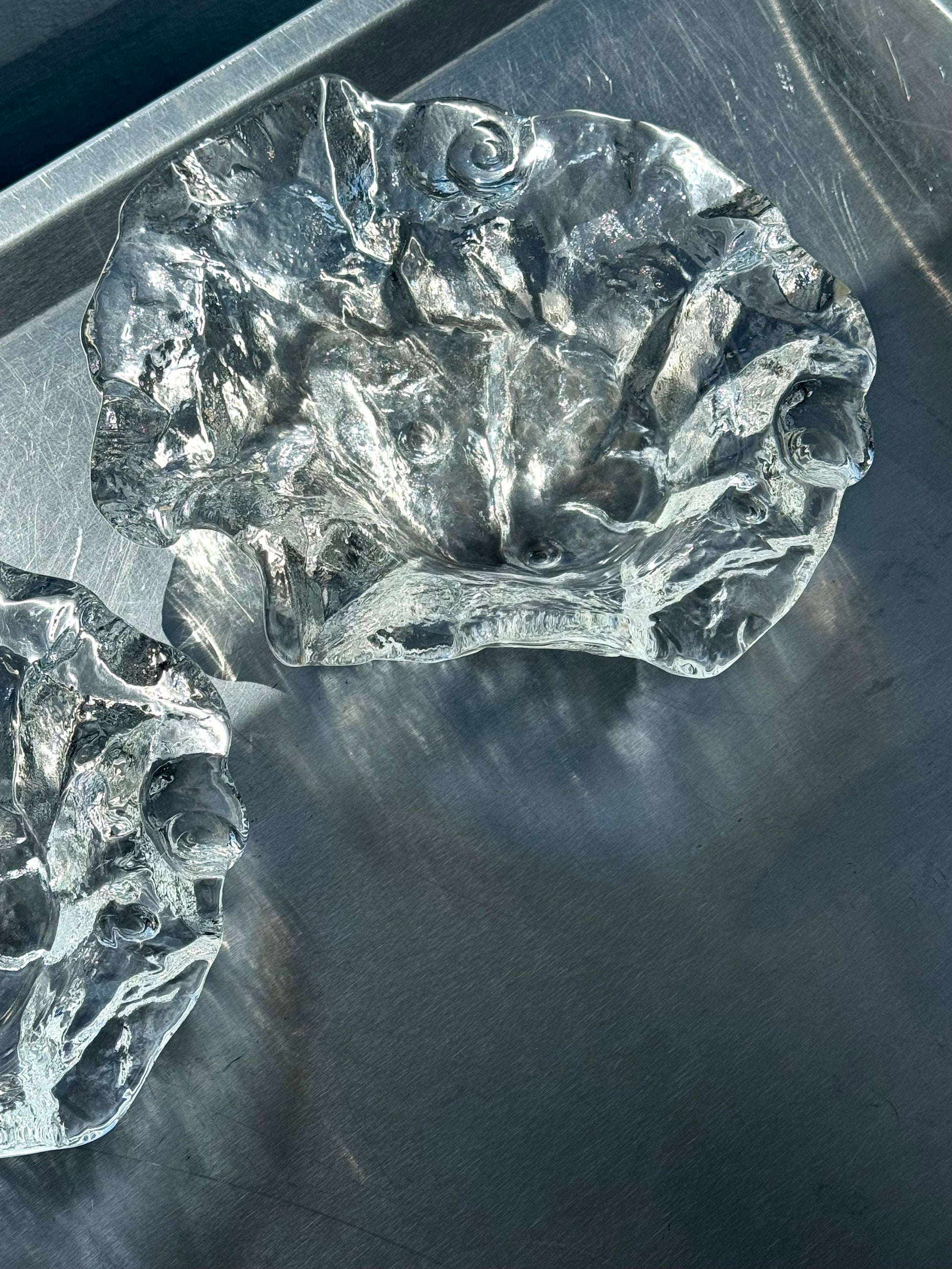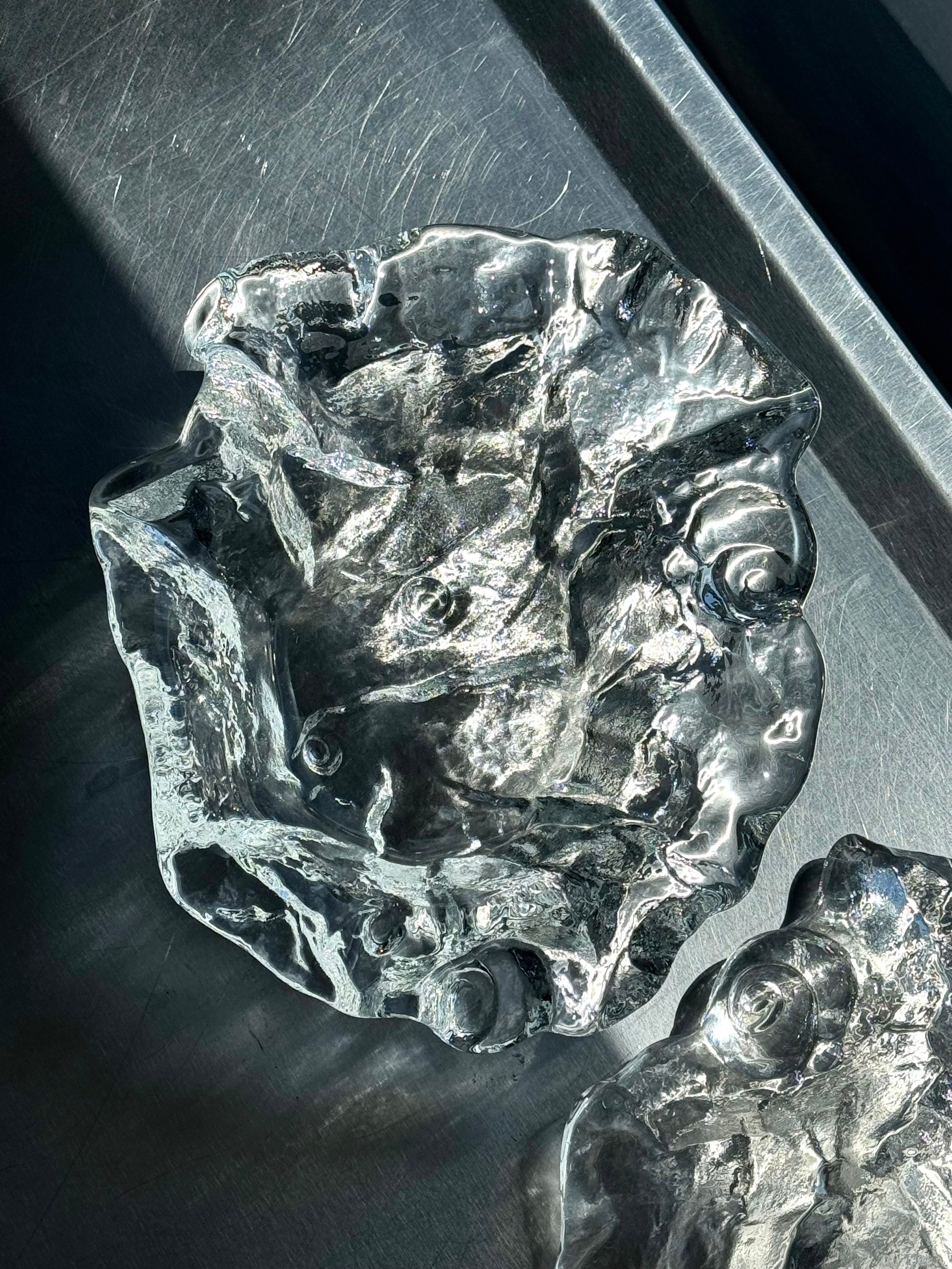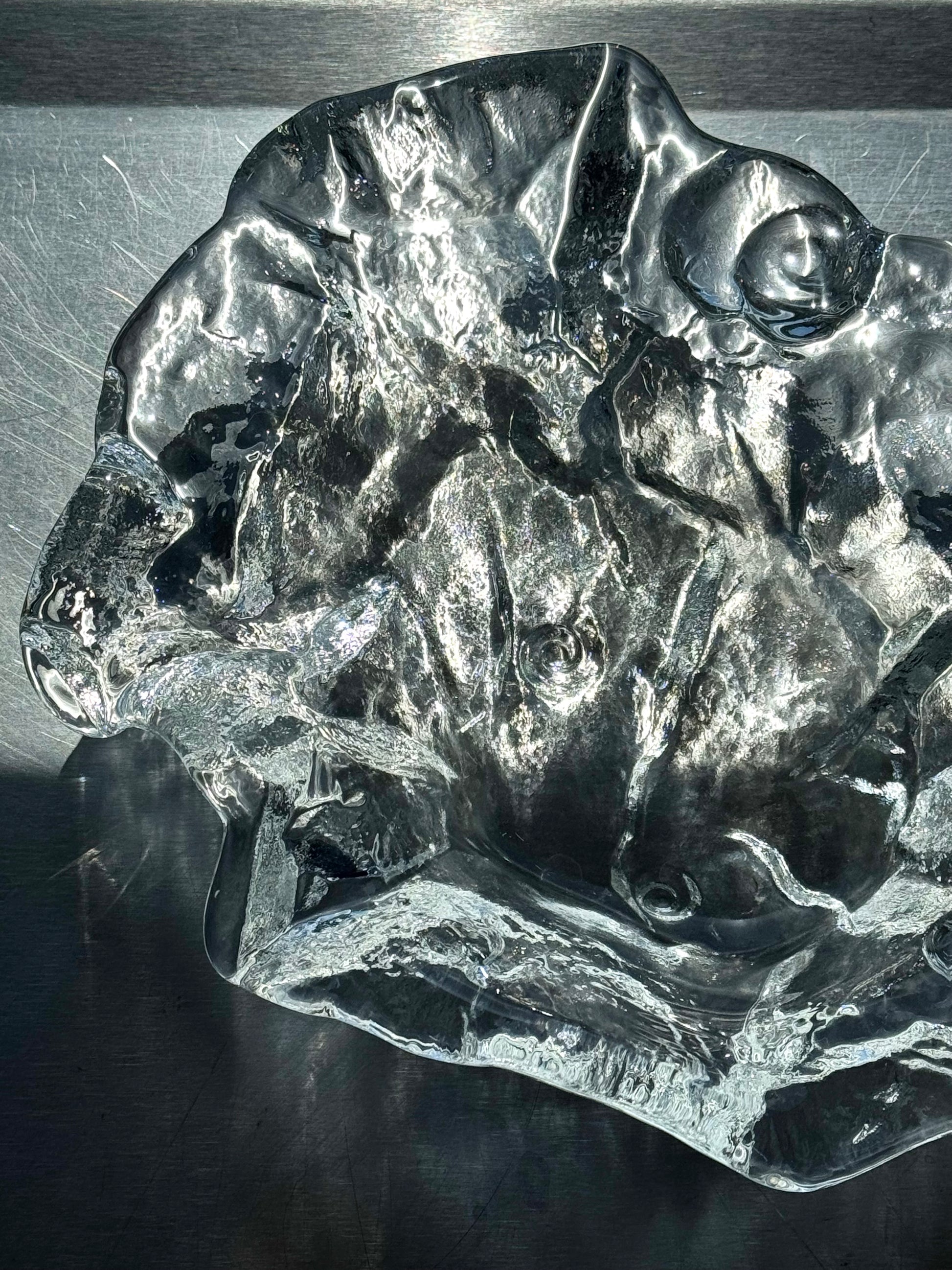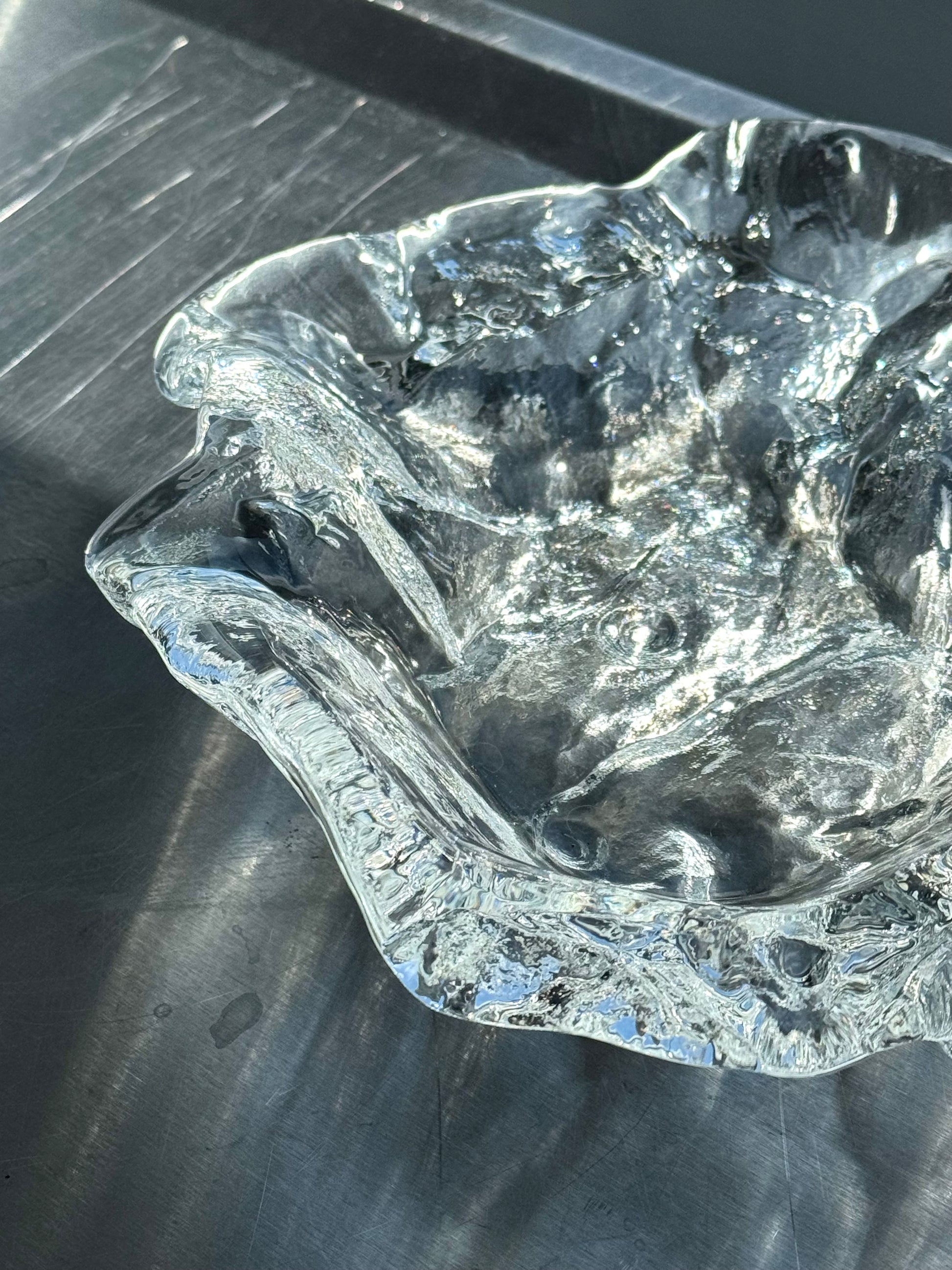 Stunning heavy glass bowl with fossil details. Very nice condition.