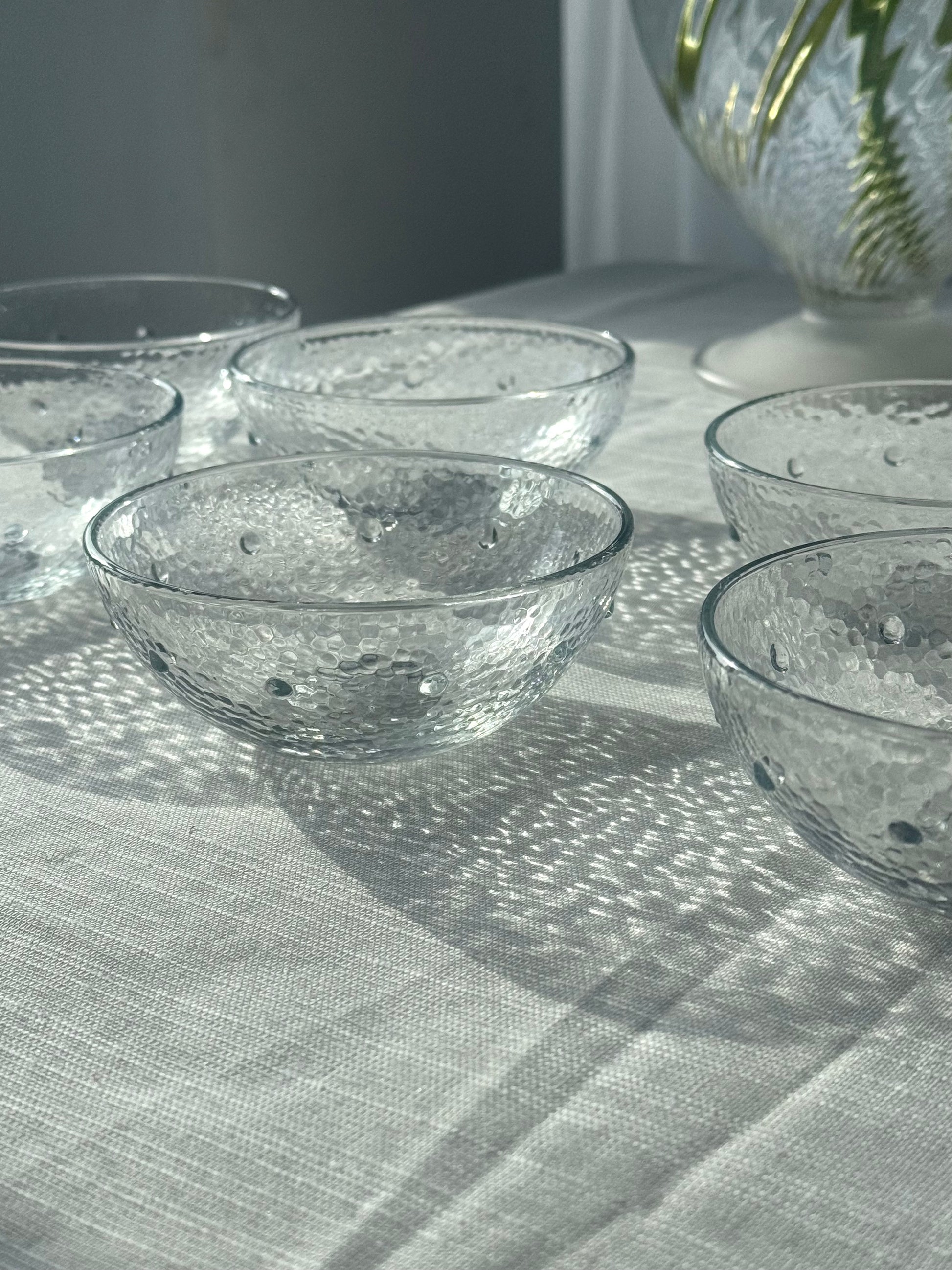 Cute structured glass bowl, nice dotted details along the edge. Nice vintage condition. 8 available, Price is for one.