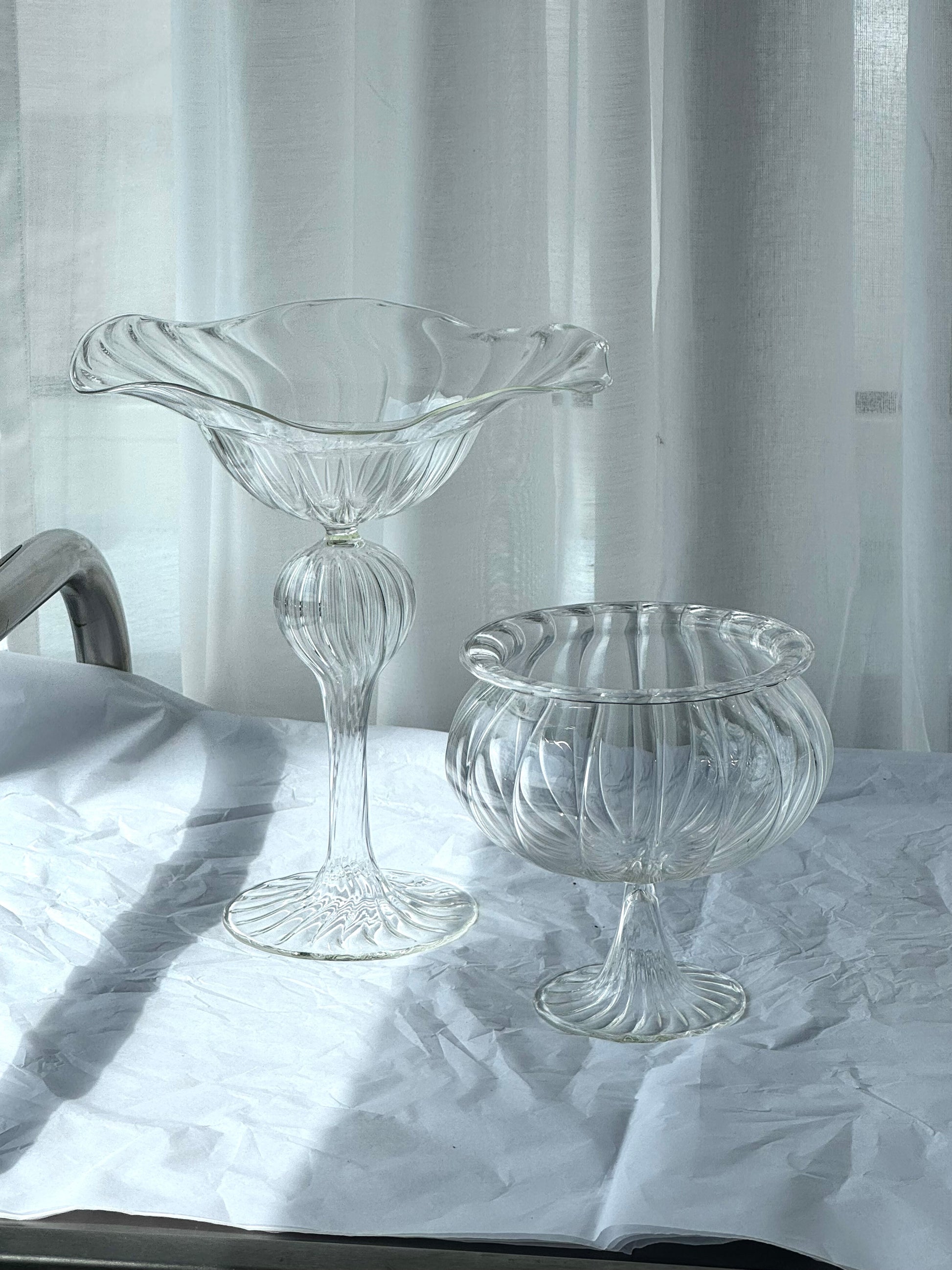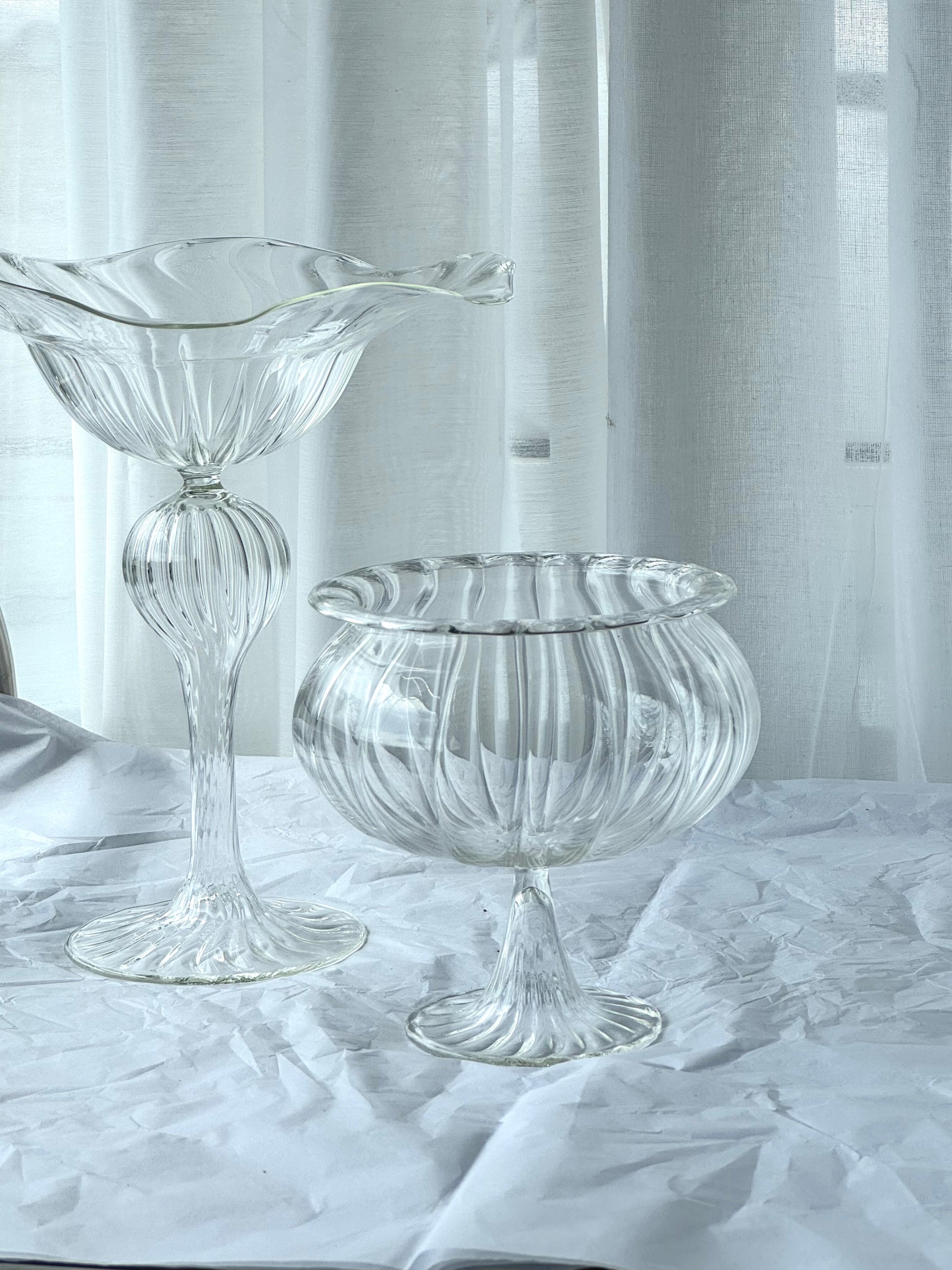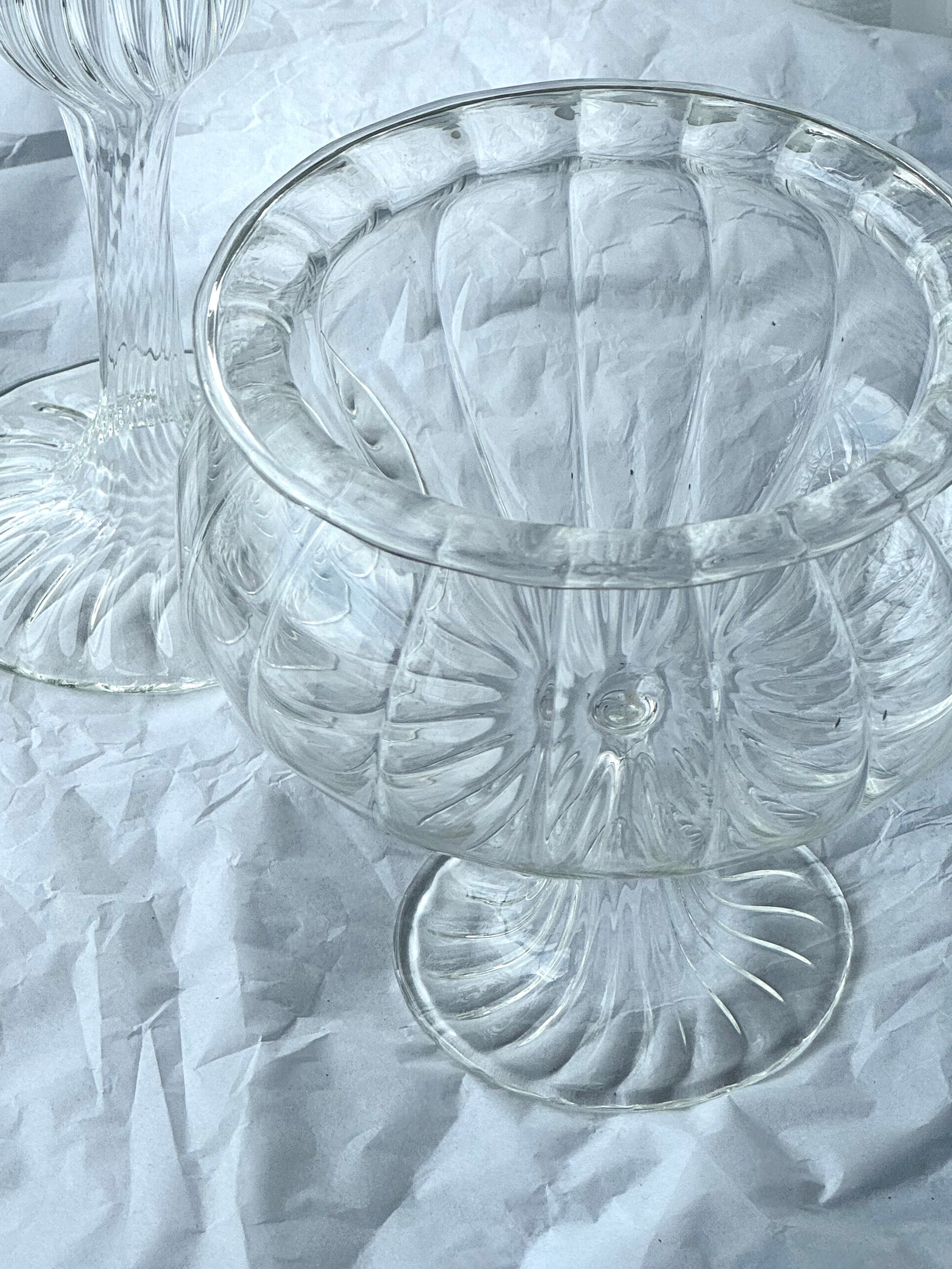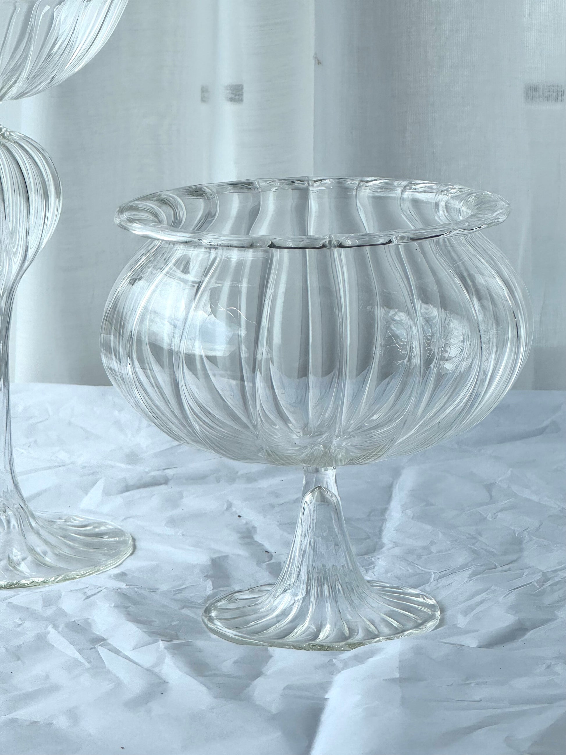 Stunning glass bowl on foot, handmade in italy. Very nice condition.
