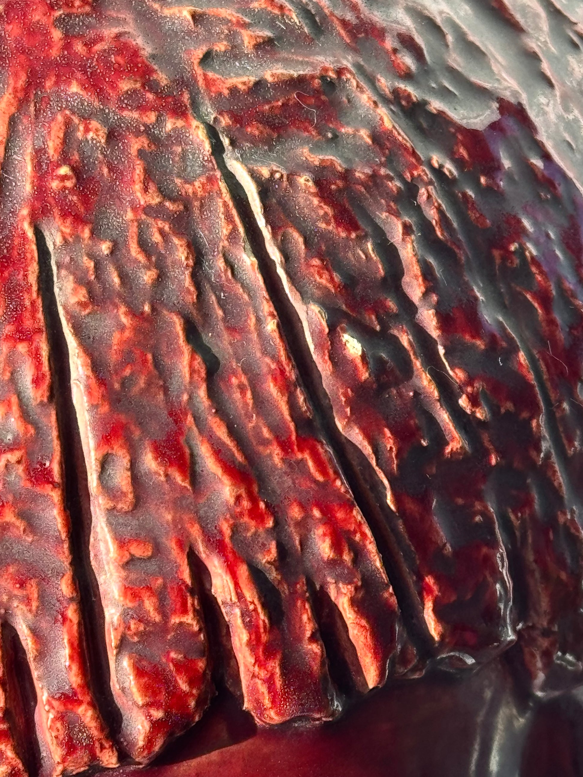 Stunning handmade ceramic head from Italy. Featuring a deep blood-red glaze and intricate detailing, this piece is a true one-of-a-kind work of art for your home décor. In very good condition with only minimal glaze wear, it makes a striking statement wherever you place it.