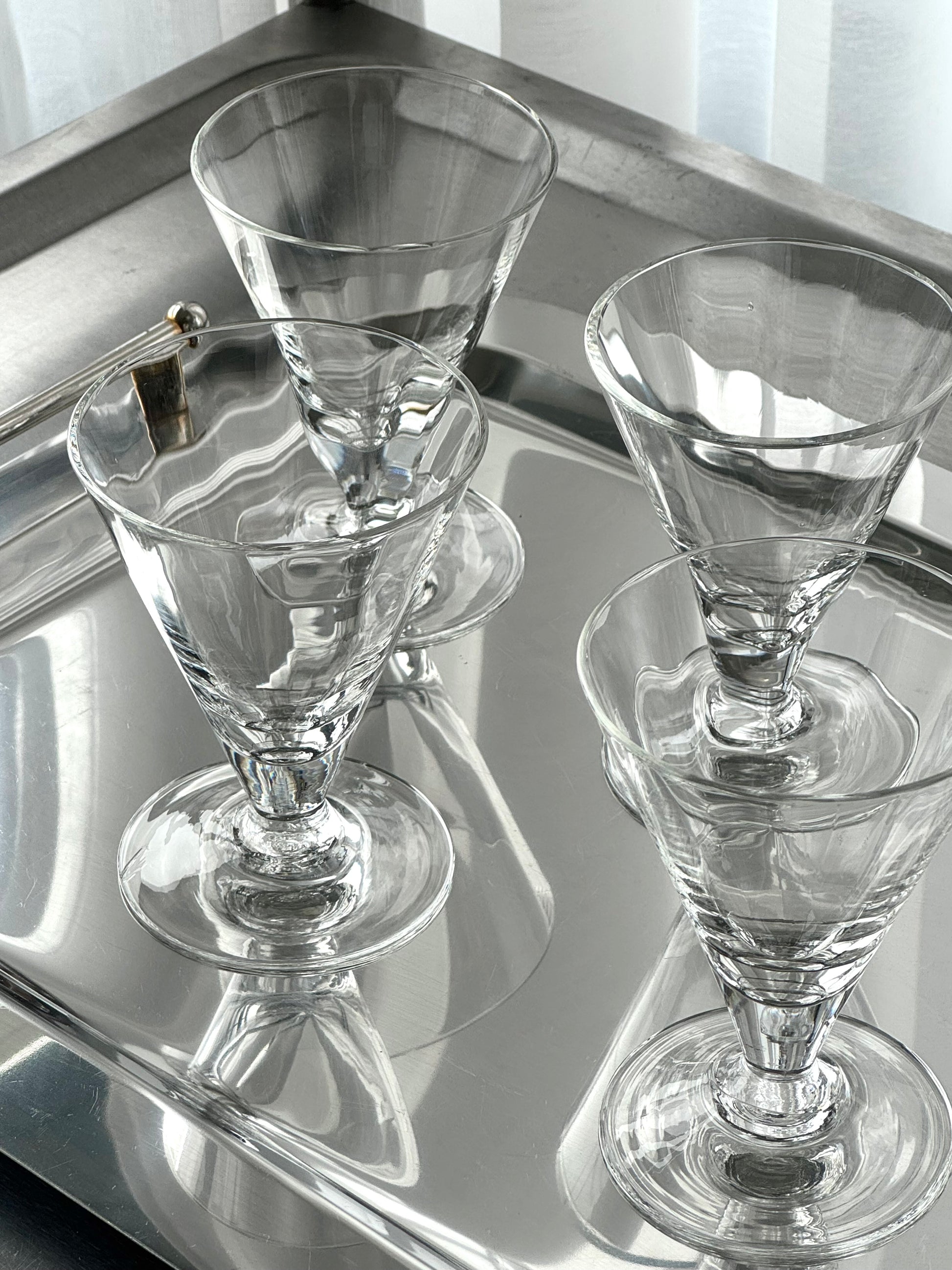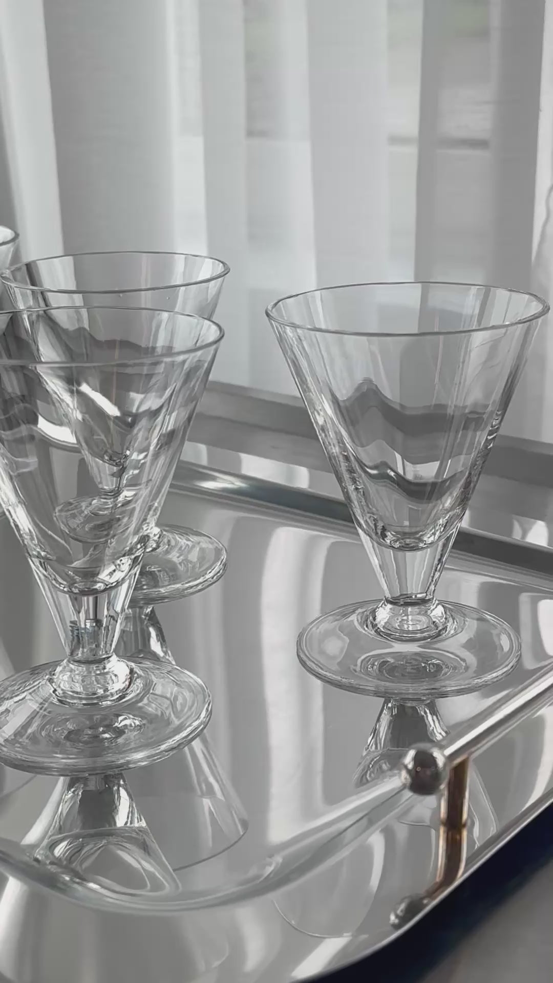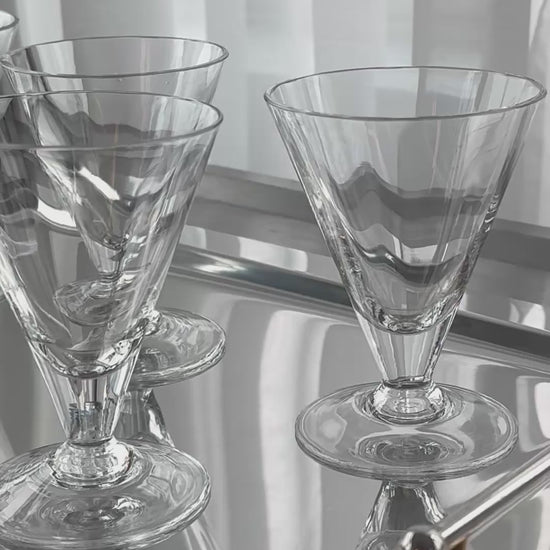 Beautiful handmade glasses on foot. Chunky structured glass. Very nice condition.