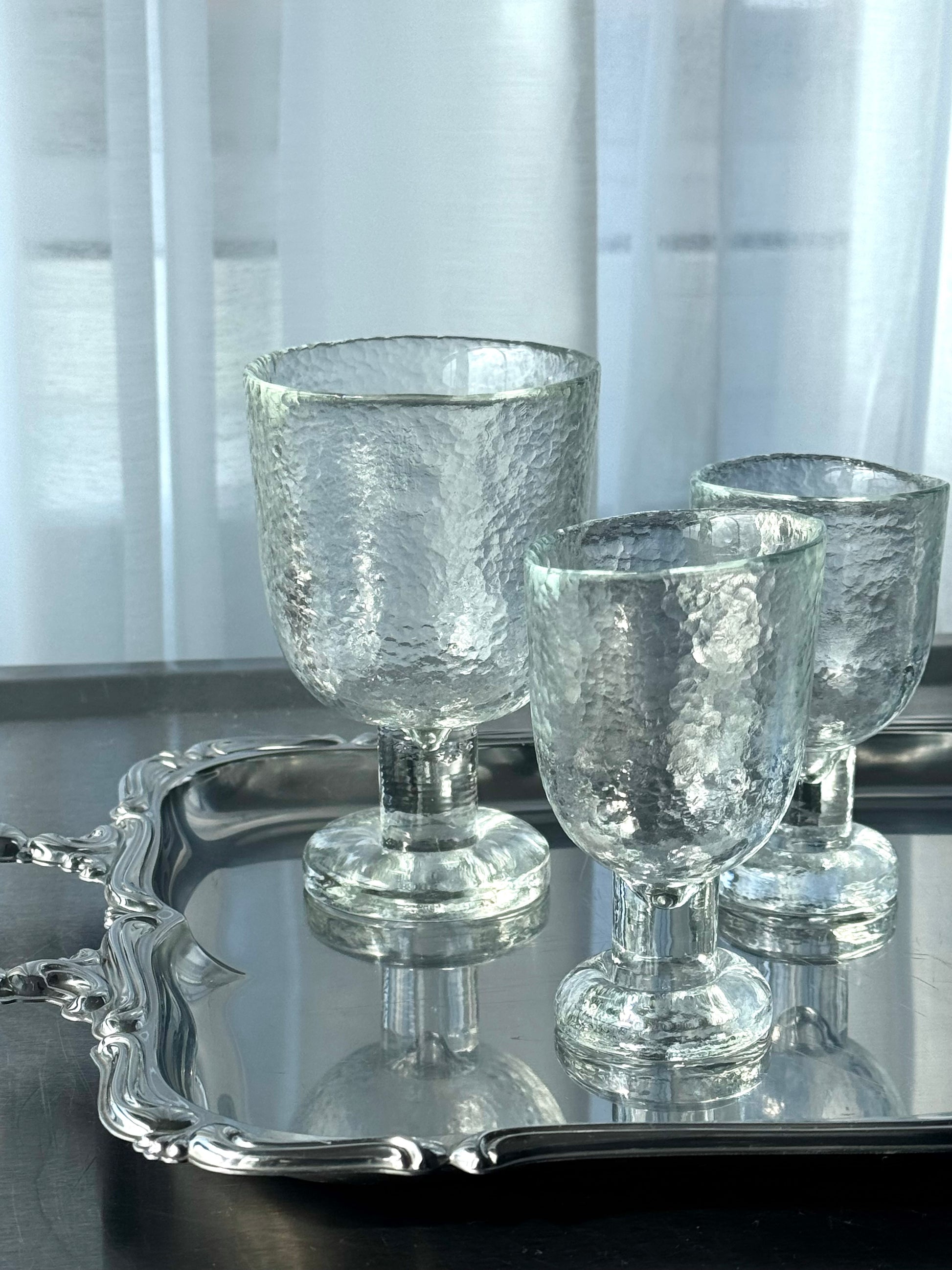 Stunning handmade Humppila findland glasses. Chunky structured glass. 5 Small and one Big available.