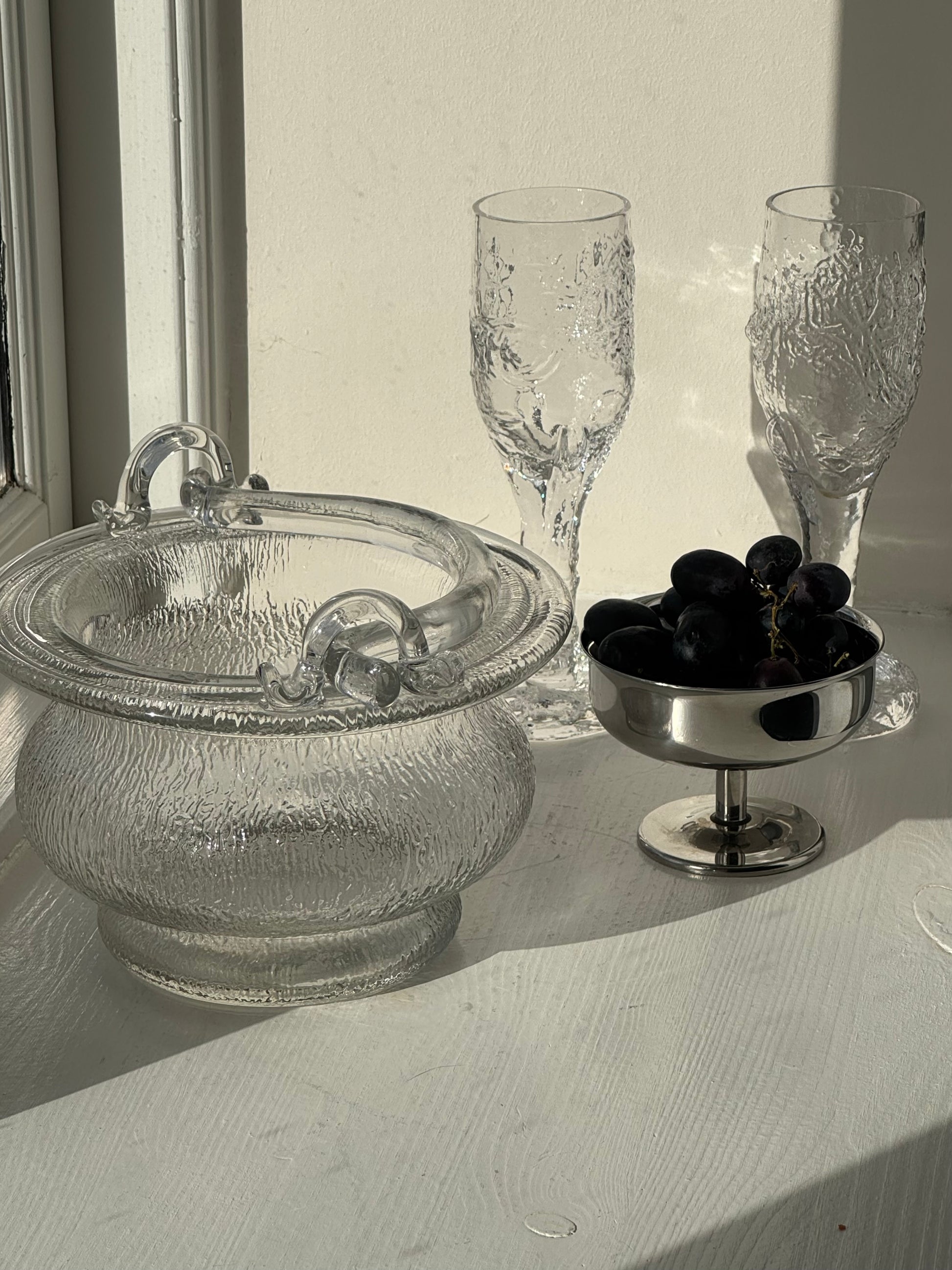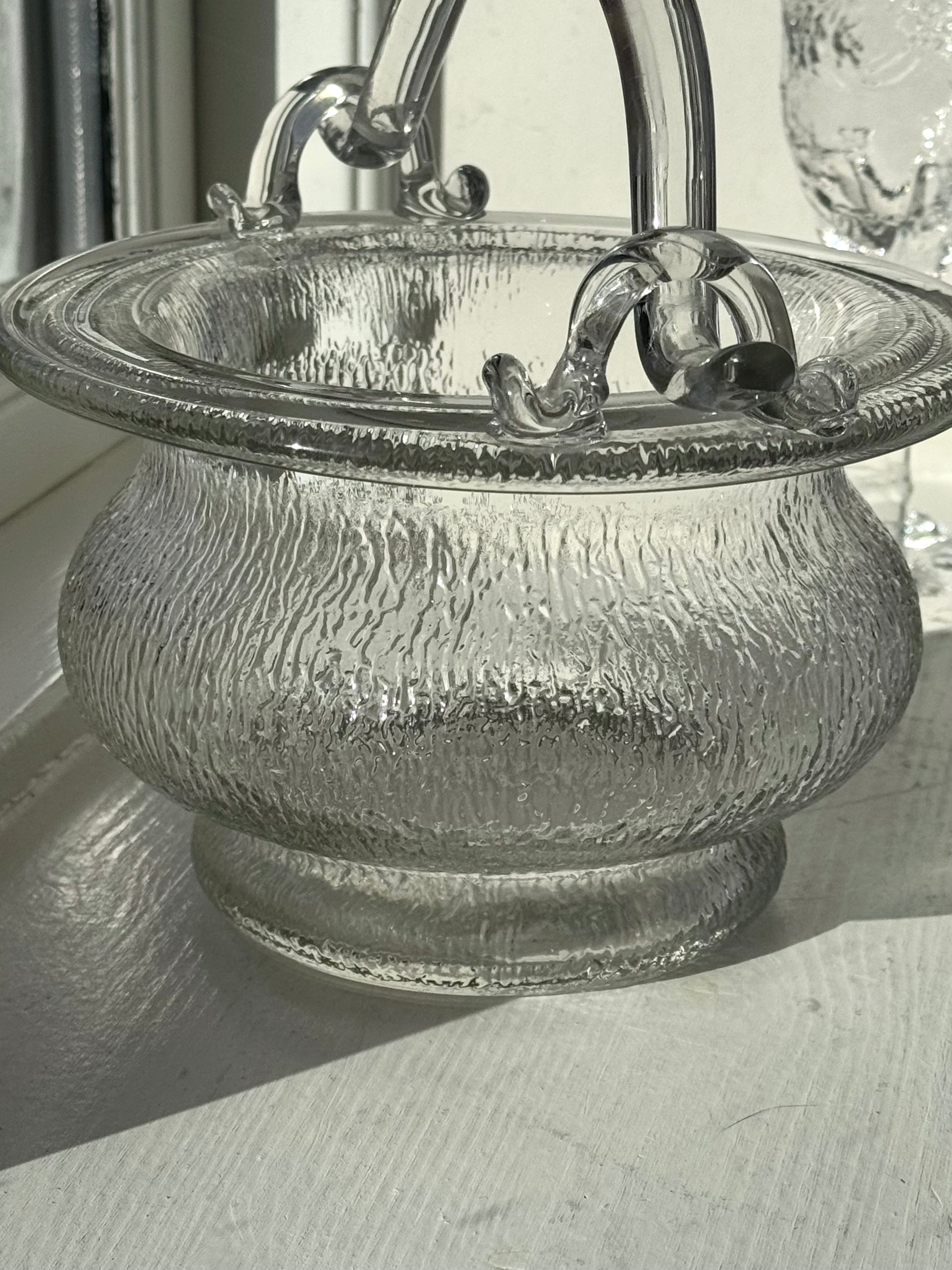 Stunning structured ice bucket, handmade heavy glass. Comes with a handle (Cannot be removed). Great condition.