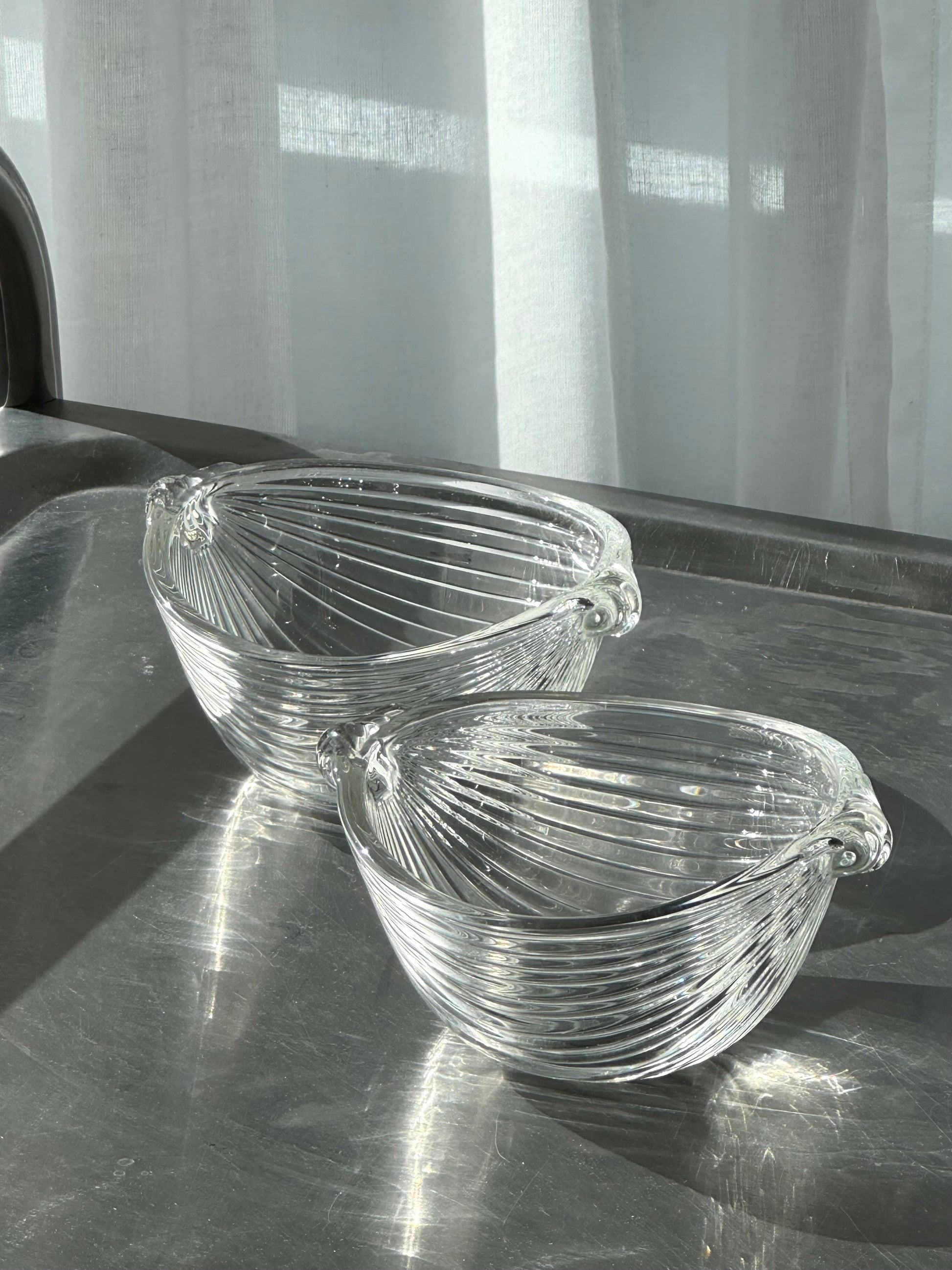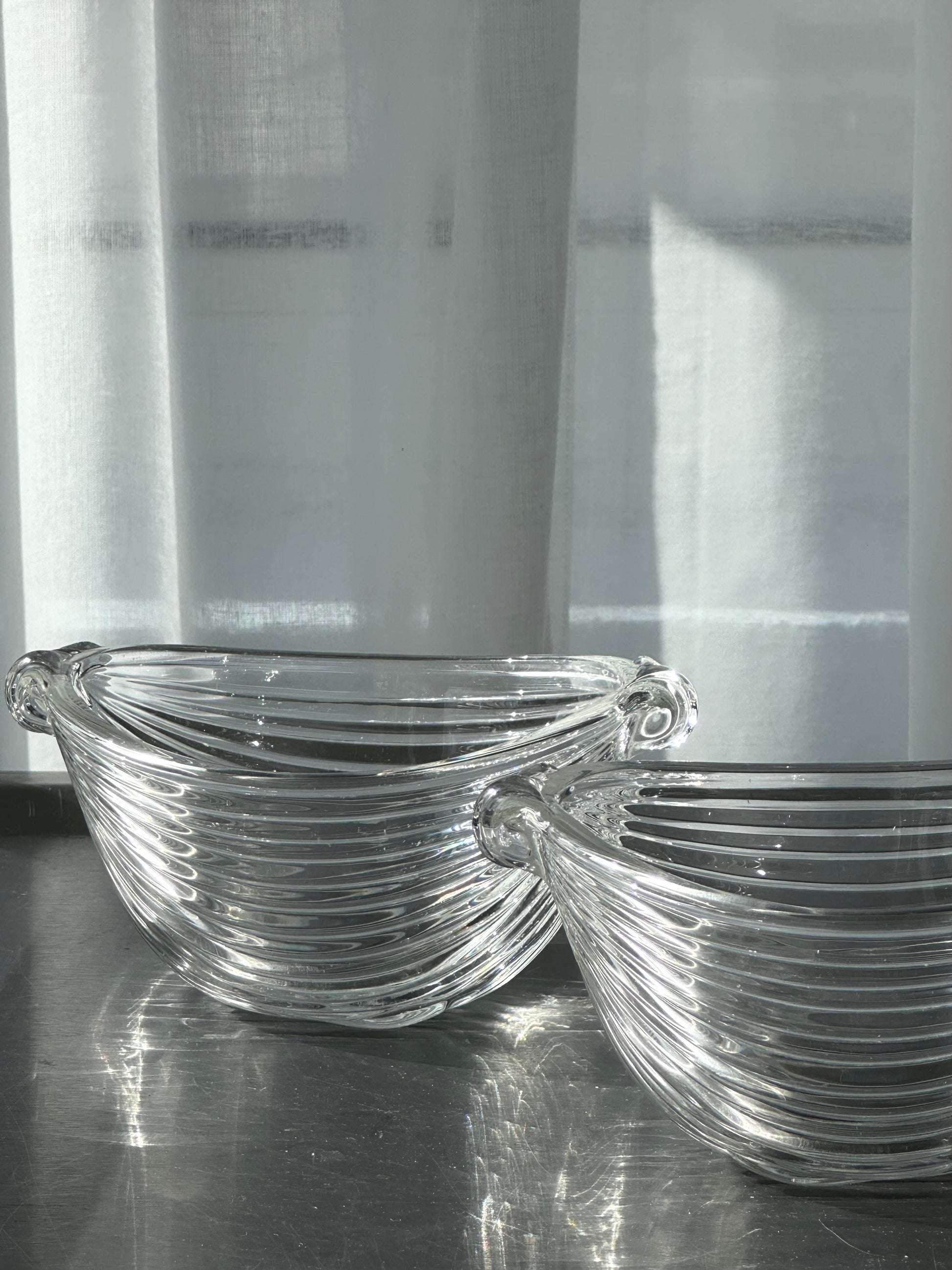 Stunning vintage Mikasa glass bowls and plate in a clam like shape and fine details. Price is for one.