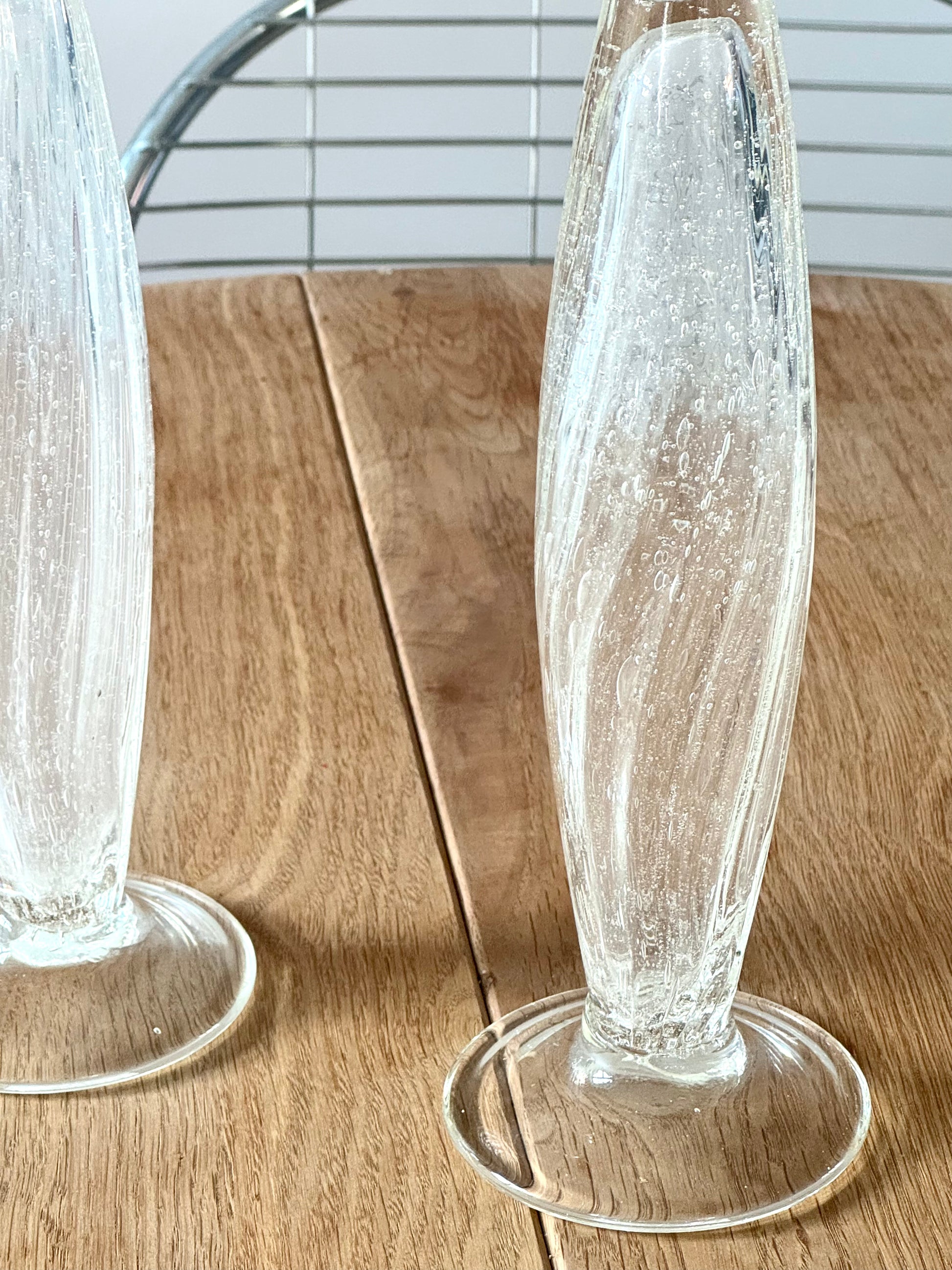 Handmade Murano candleholders from 1960. Beautiful textured glass with swirl effect. Perfect vintage condition.