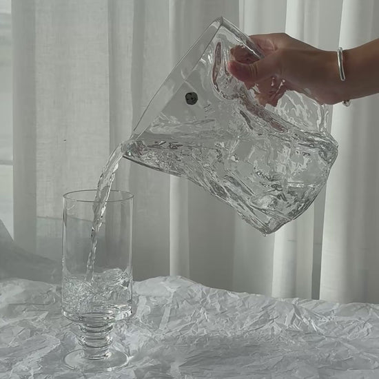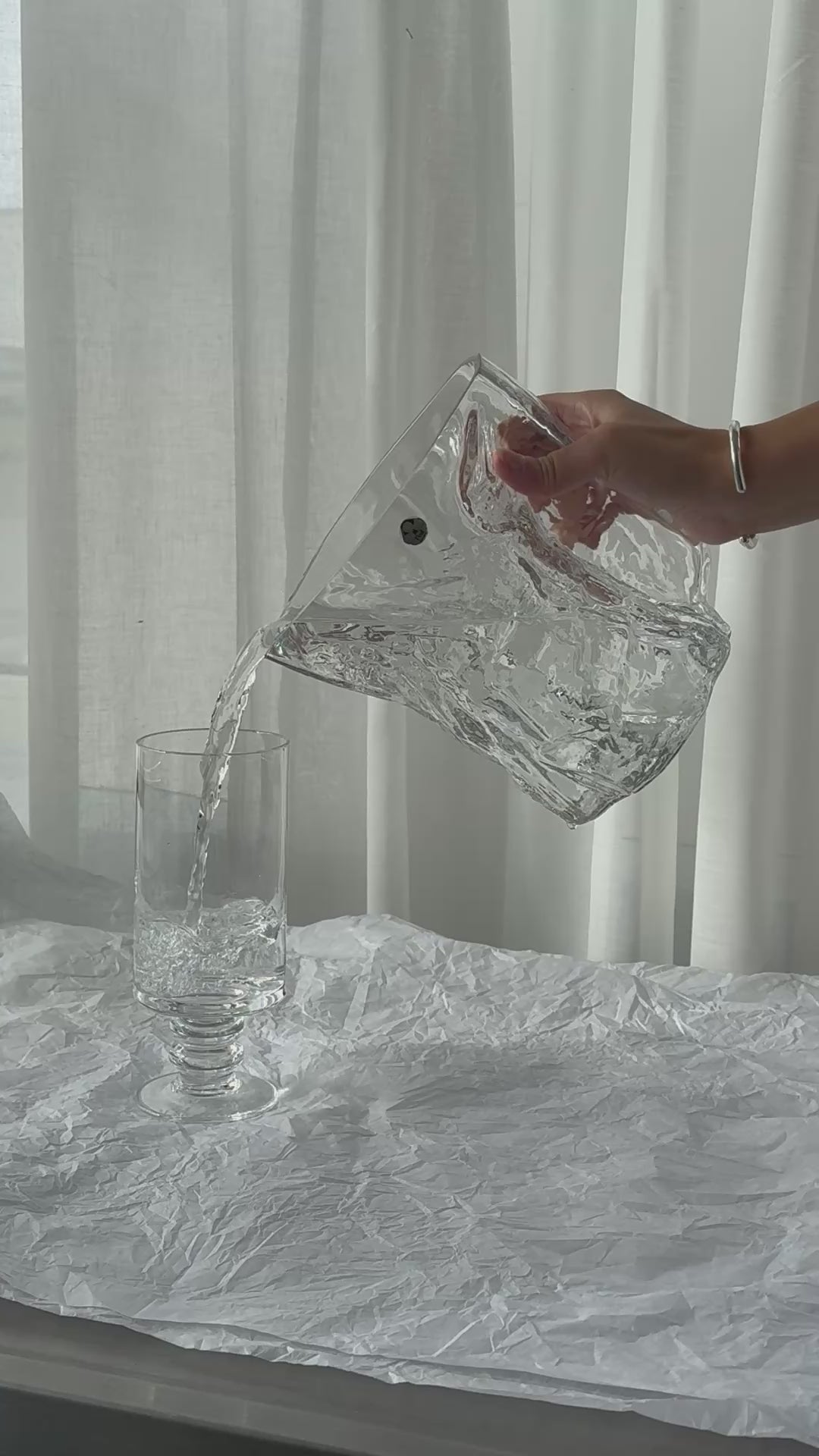 The heavily folded crystal glass resembles jagged chunks of ice.