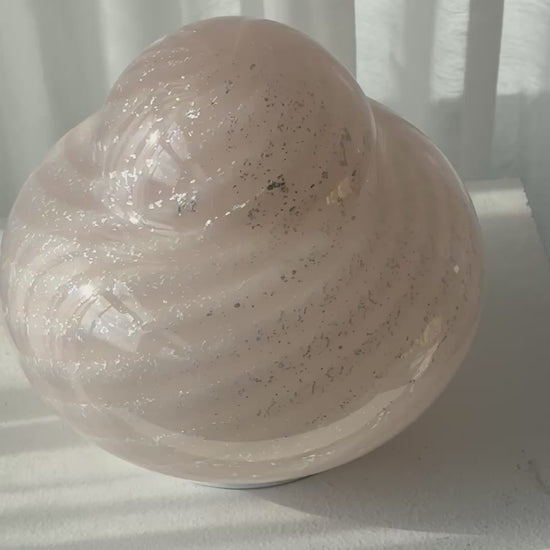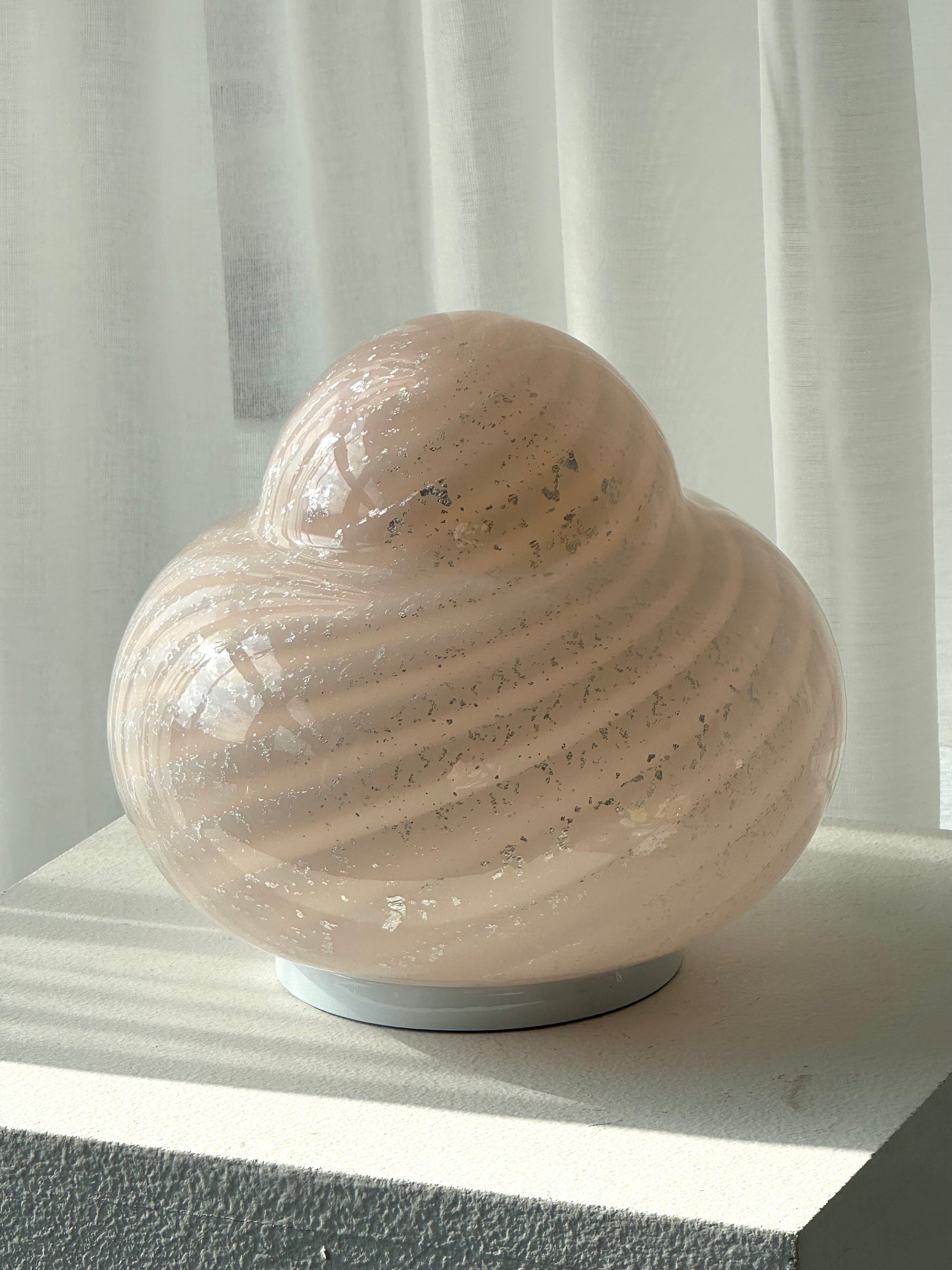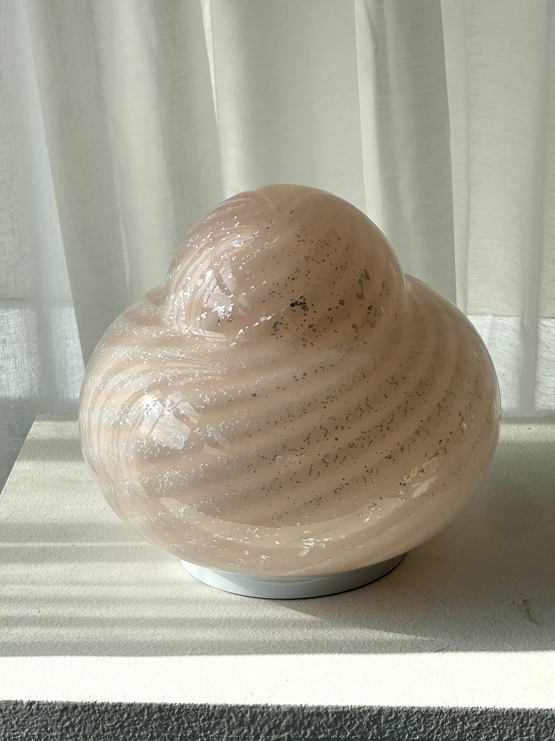 Exquisite Murano table lamp, handmade in italy 1970. Crafted from swirling pink mouth-blown glass, adorned with delicate sparkling glitter accents – a true statement piece of timeless elegance. Very nice condition.