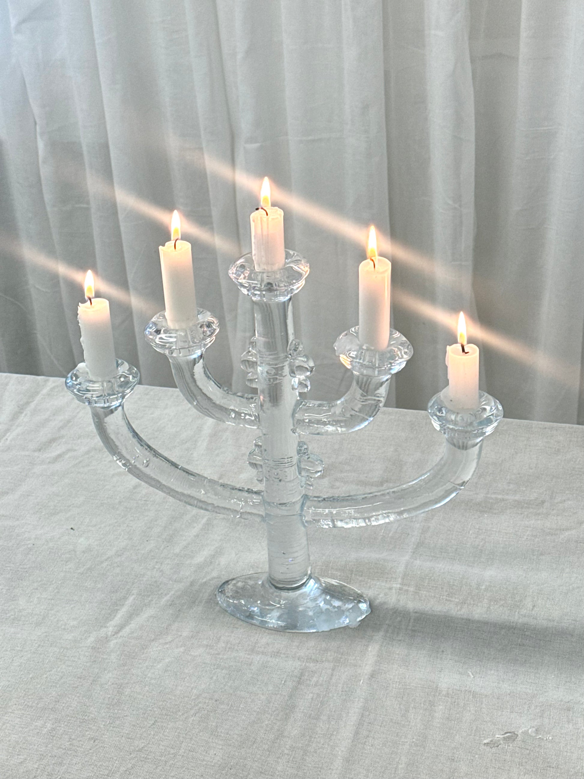 Stunning handmade Pukeberg candelabra, designet by Staffan Gellerstedt 1970. Heavy strucktured glass. Very Nice condition, no Chips or cracks.