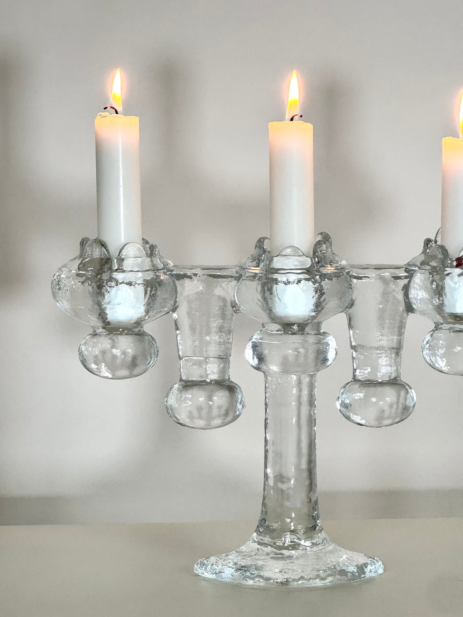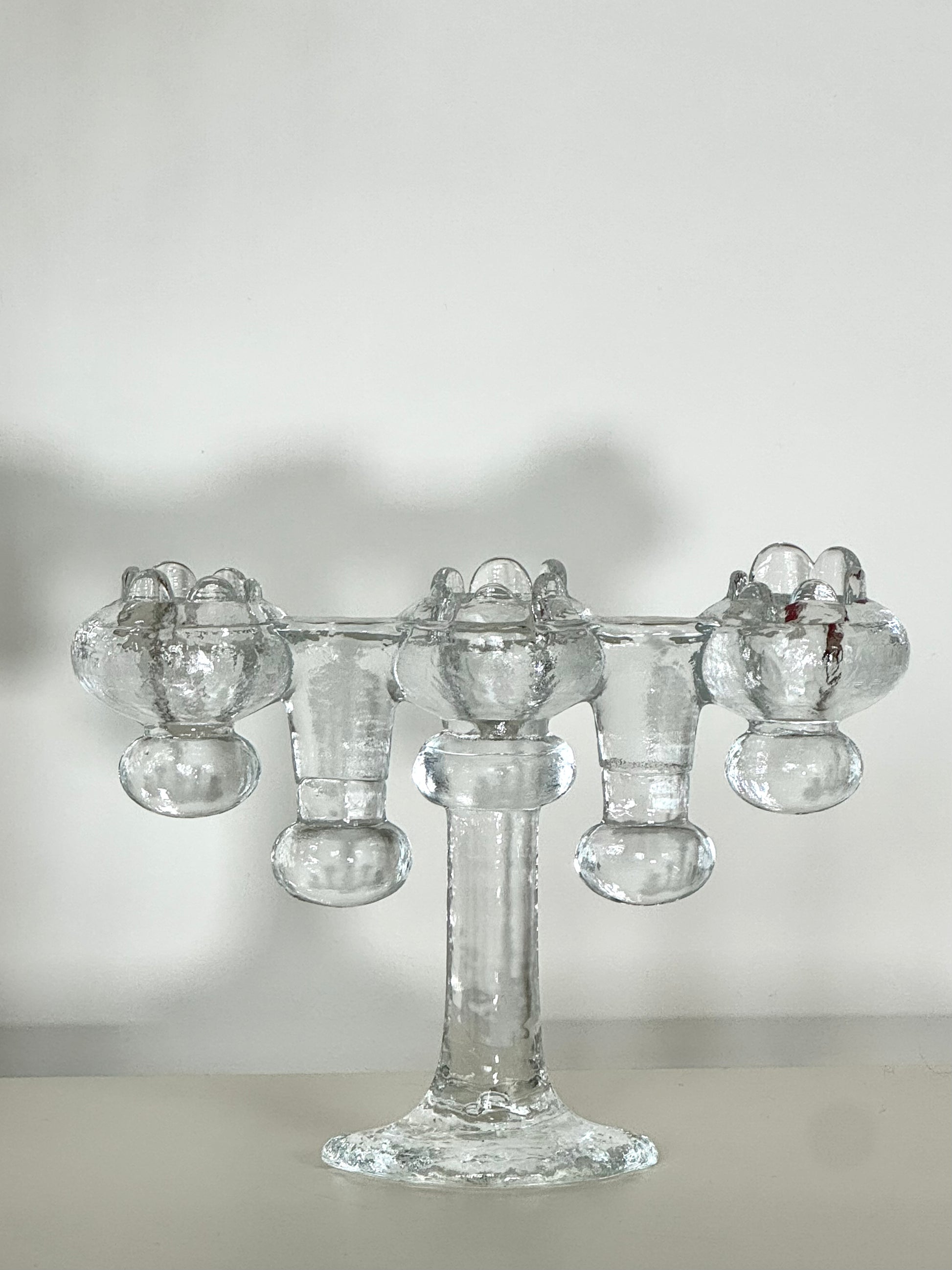 Beautiful handmade glass candleholder, by Pukeberg 1960. Heavy structured glass in perfect condition.