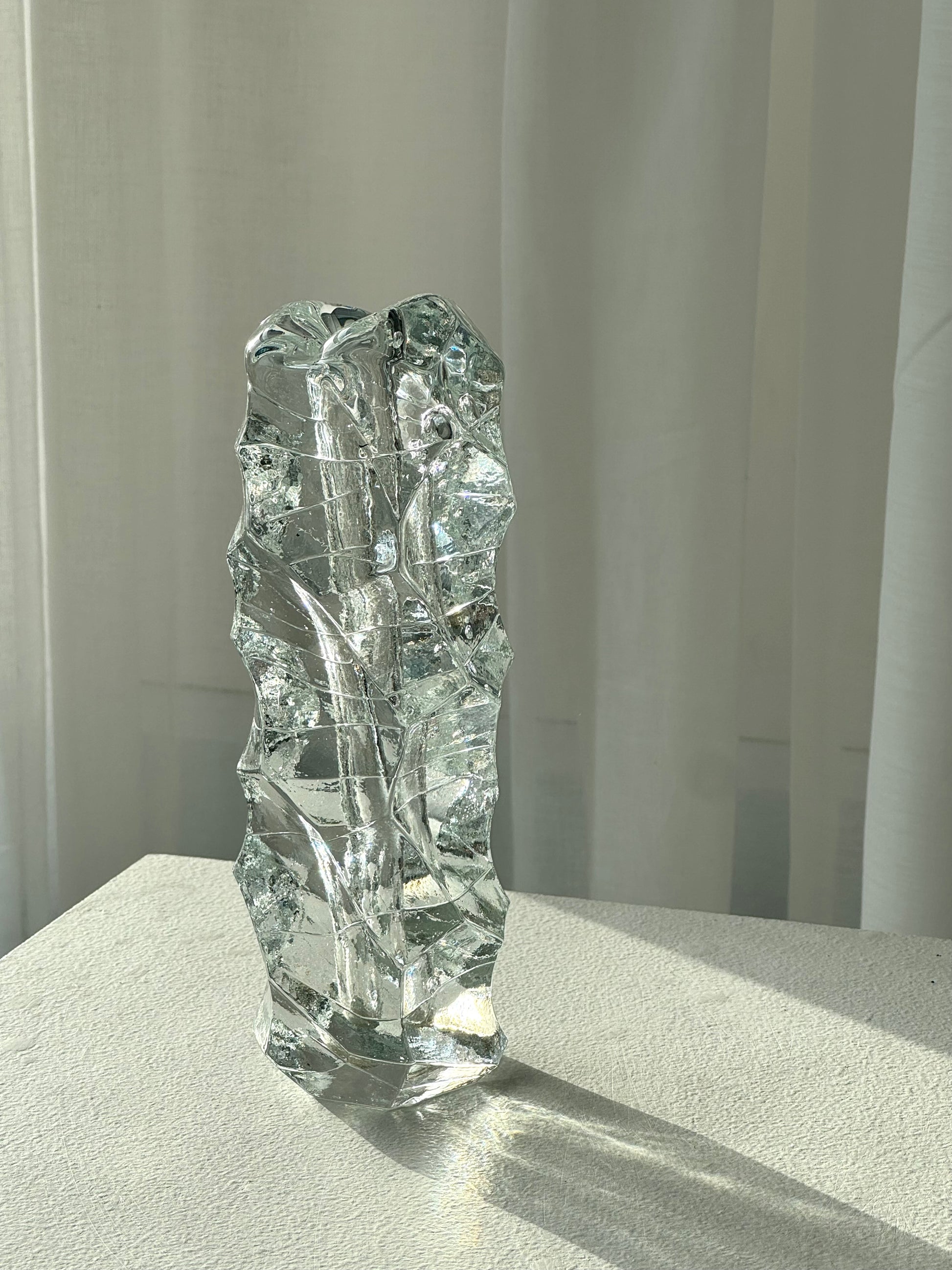 Stunning and heavy single flower vase. Handmade swirling detailed, nice condition.