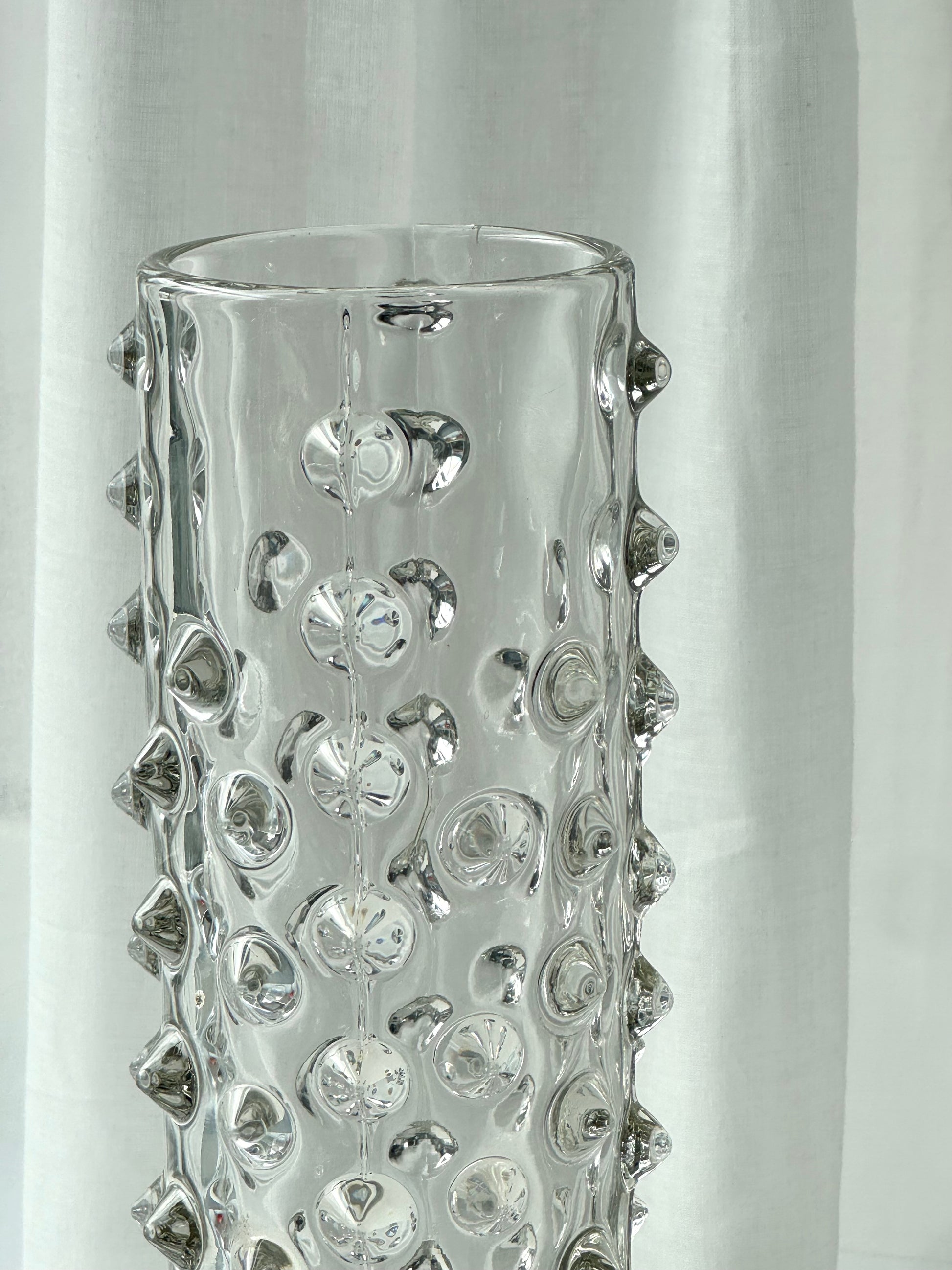 Beautiful glass vase, with spikes all around. Handmade in italy. Nice condition.