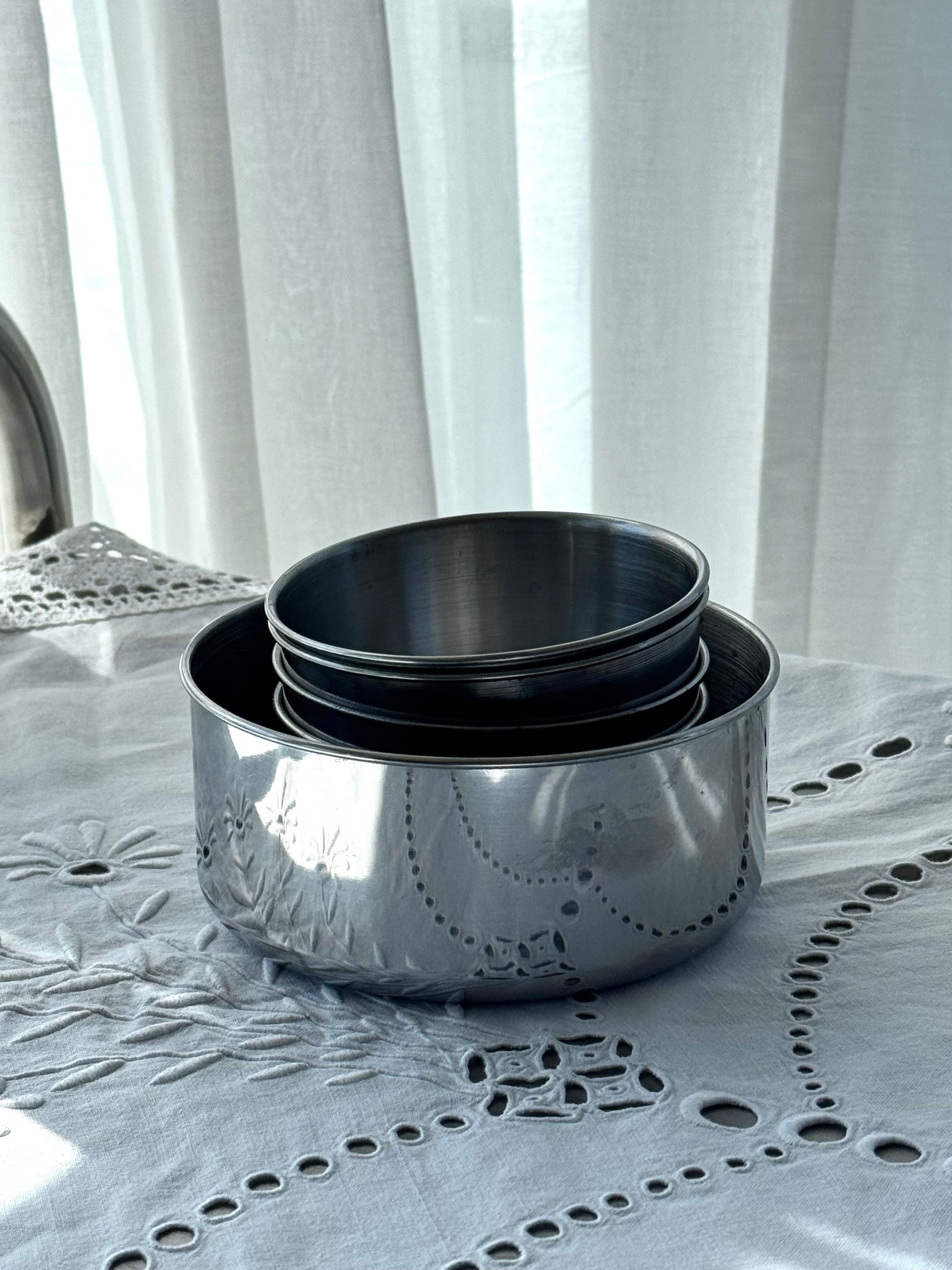Det of 5 steel bowls. Condition is used, but still nice. Sold as a set.