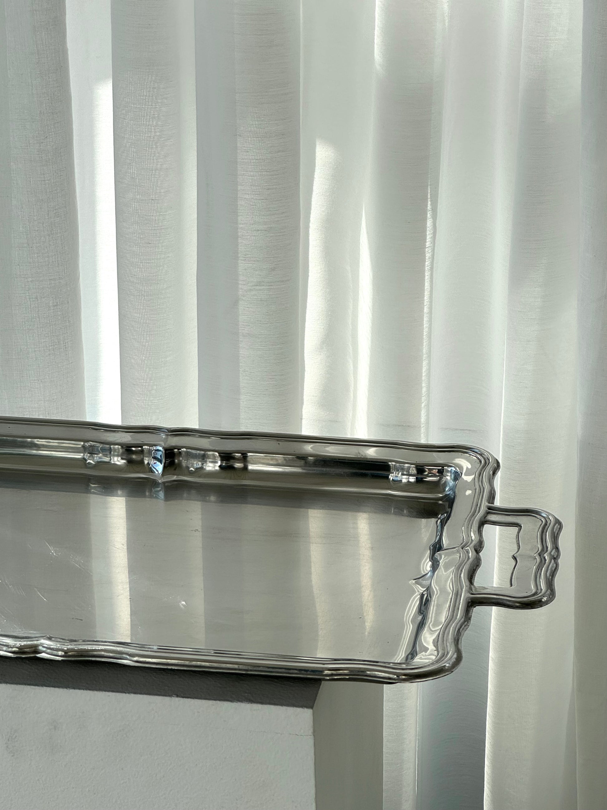 Stunning vintage Steel tray with ruffled details, Comes with signs of use, but nice condition.