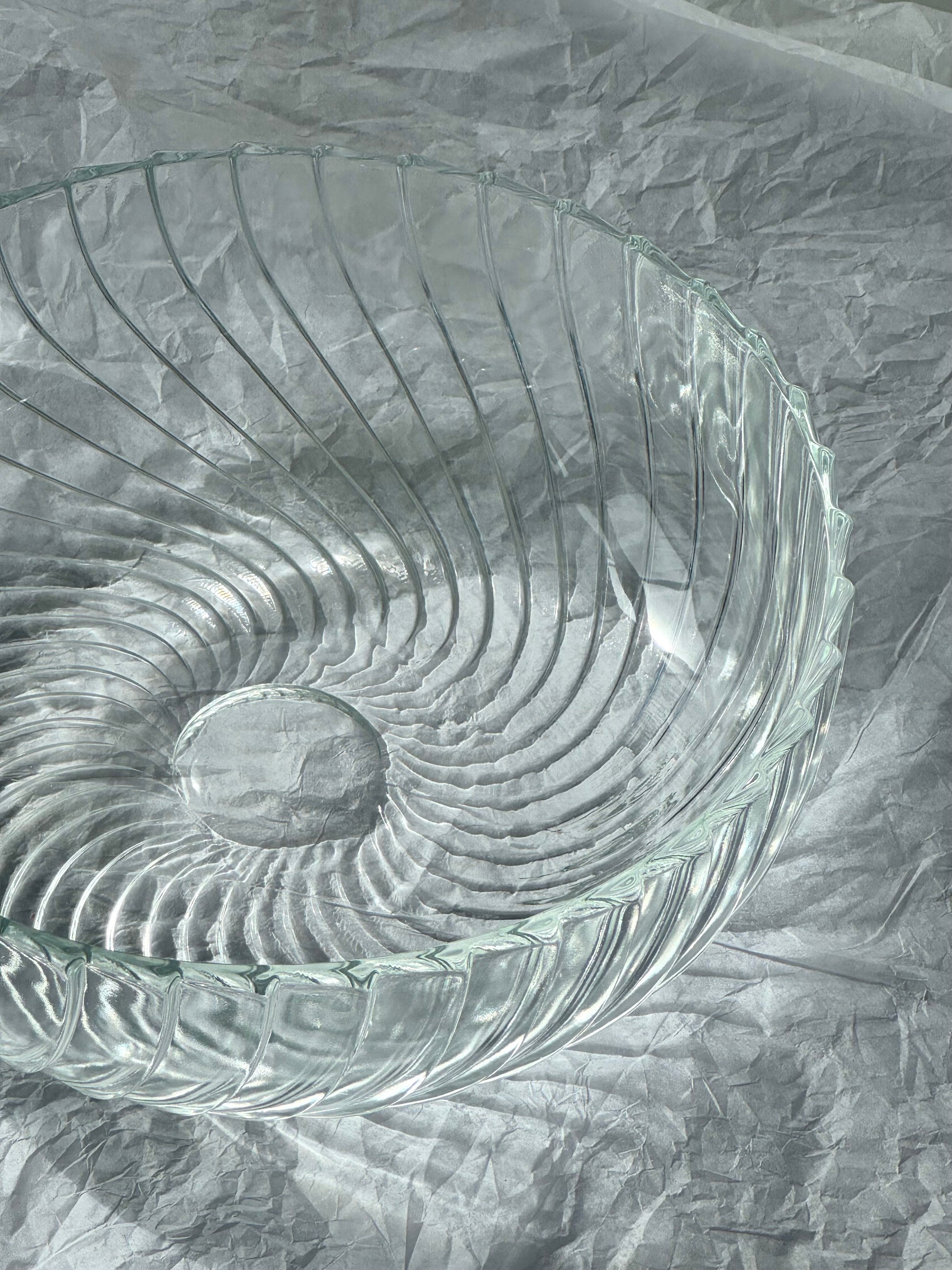 Big swirling glass bowl, perfect for salad. Nice condition.