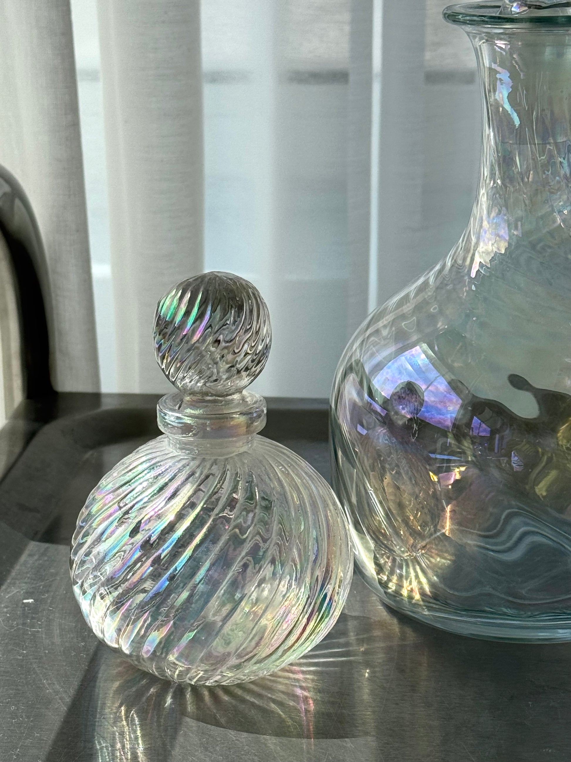 Stunning mother of Pearl swirling carafe. Nice condition: