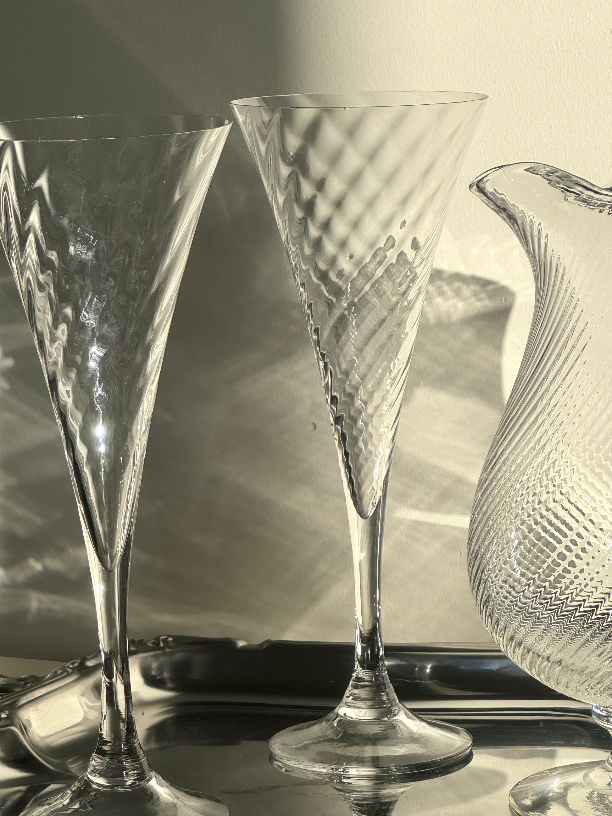 Beautiful swirling champagne glasses. 2 pieces, sold together. Nice condition.