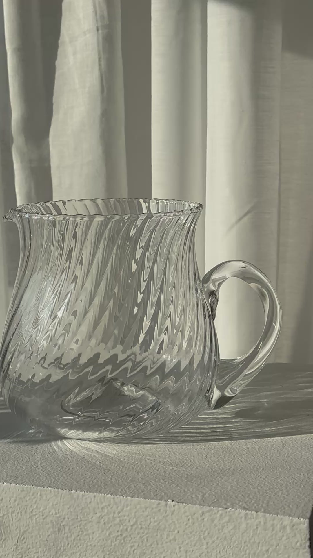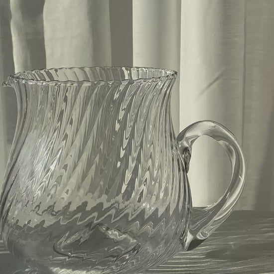 Stunning Italian swirling jug, handmade in heavy clear glass. Very nice condition.