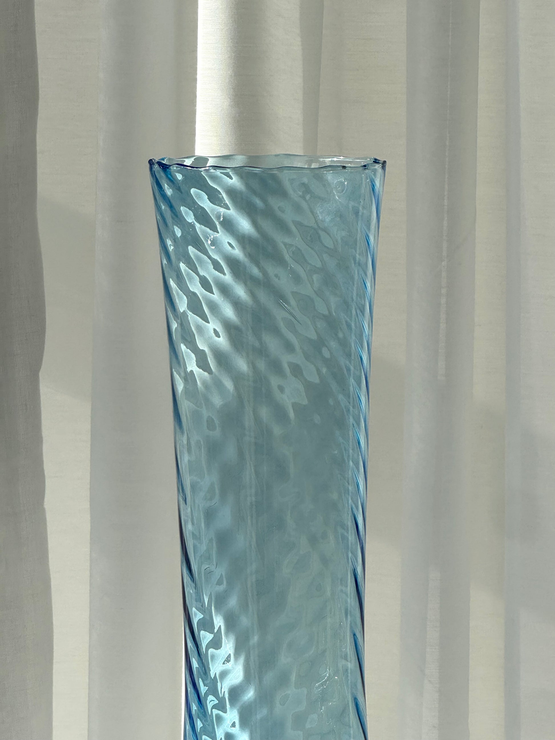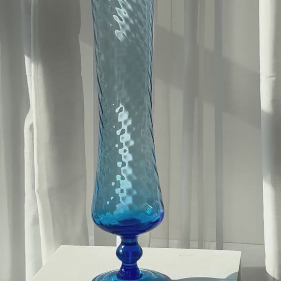 Stunning swirling blue vase on foot. Handmade Italian glass. Very nice condition.