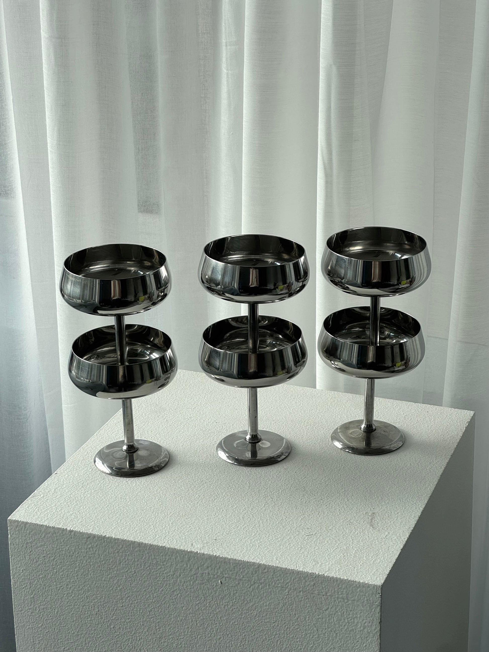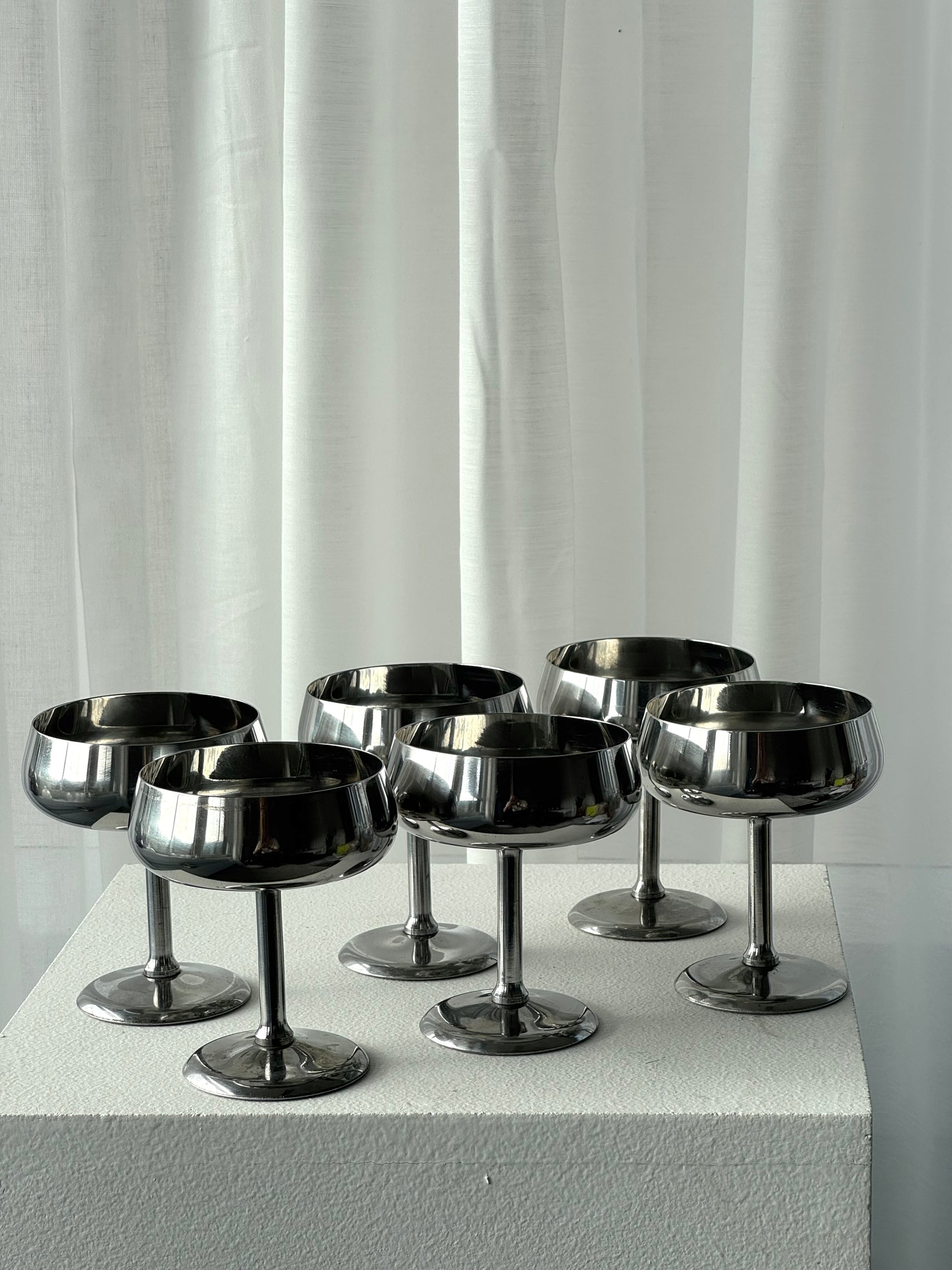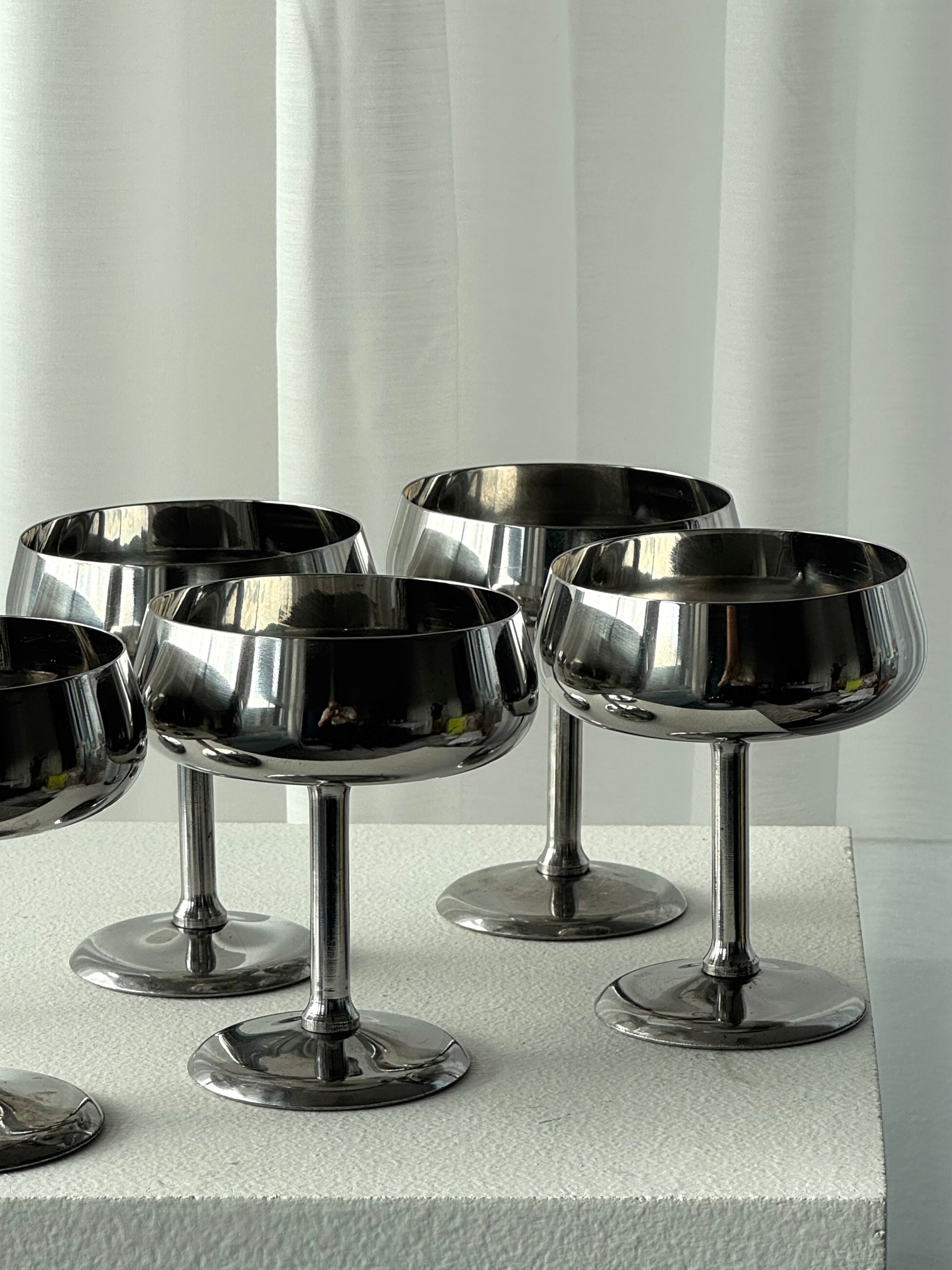 Beautiful tall Steel coupes, perfect for champagne or Small servings. Condition is used but nice. Price is for one.