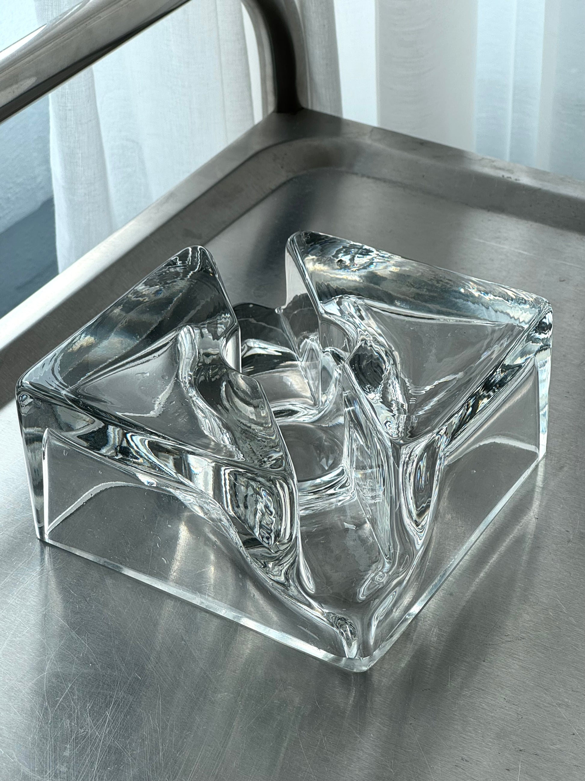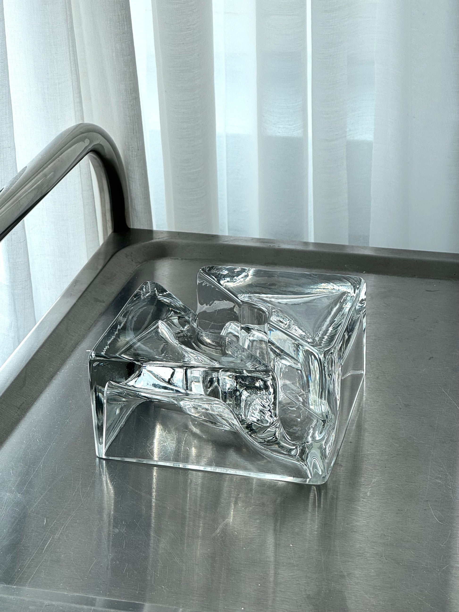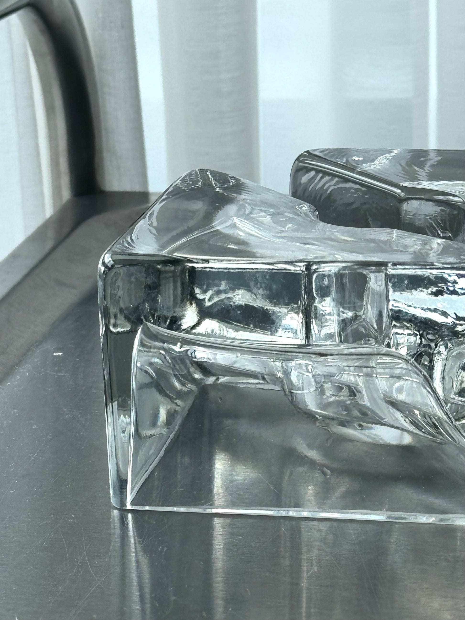 Stunning heavy tea warmer in glass. You put a candle in the middle and place the teapot on top. Both sculptural and useful. Nice condition.