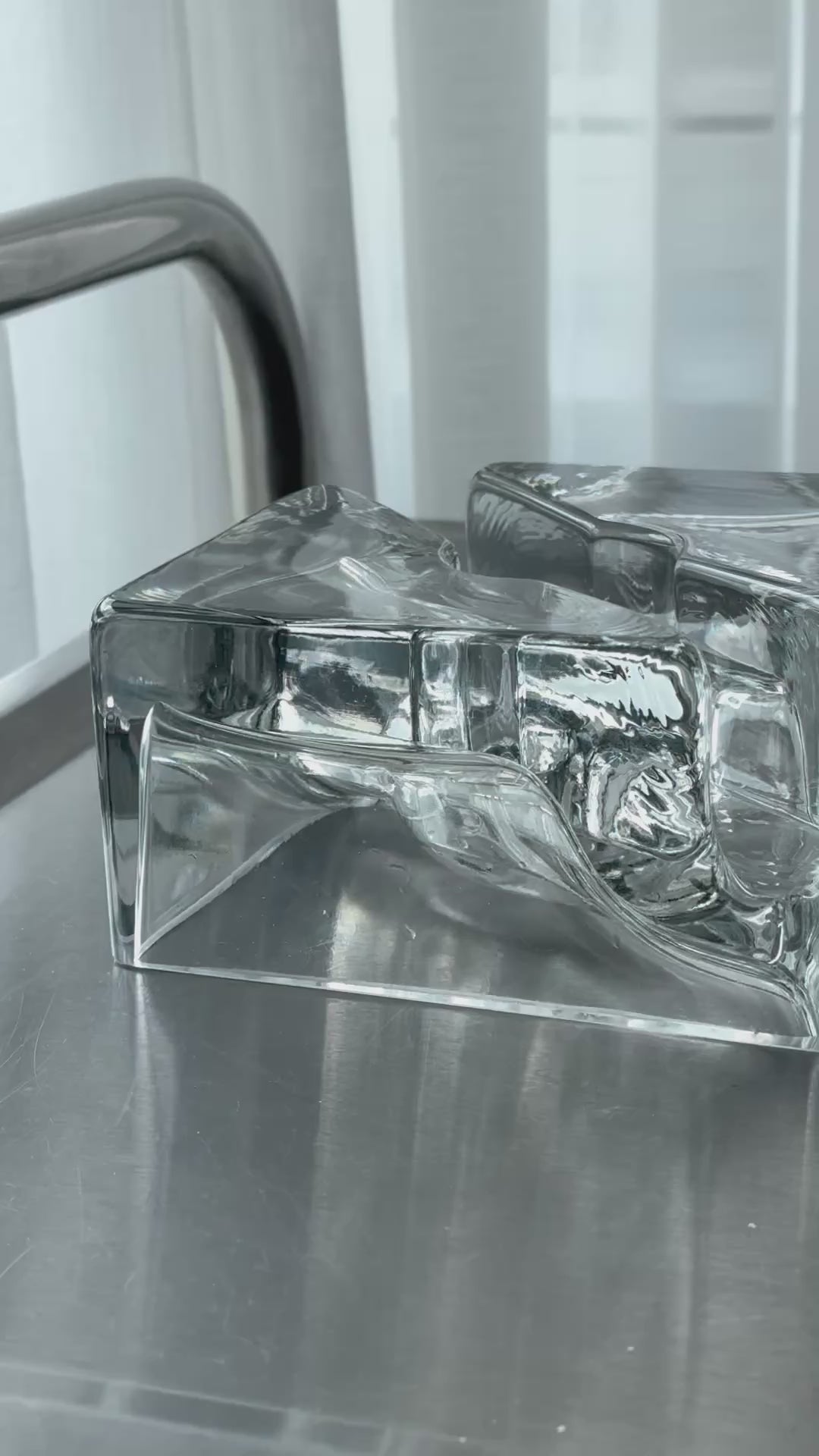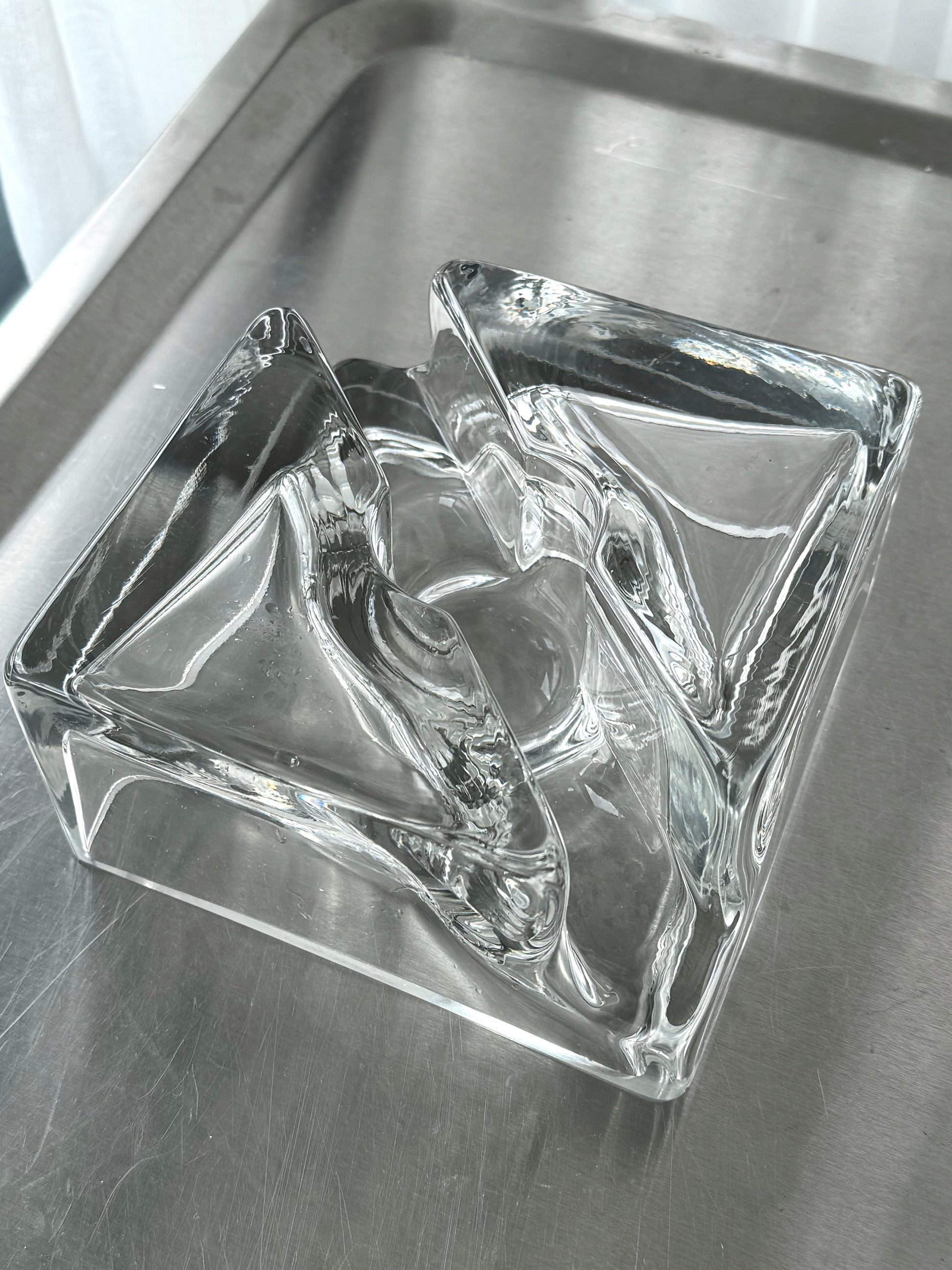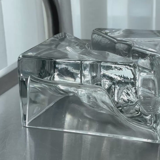Stunning heavy tea warmer in glass. You put a candle in the middle and place the teapot on top. Both sculptural and useful. Nice condition.