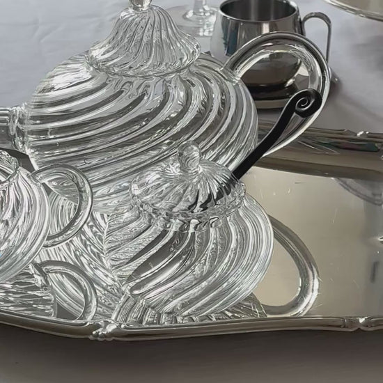 Add a touch of timeless elegance to your table with this exquisite vintage tea set. The “Bonjour” set is handcrafted from delicate ribbed glass, featuring a teapot, sugar bowl, and creamer. Perfect for collectors or afternoon tea lovers who appreciate fine craftsmanship and vintage charm. Perfect vintage condition.