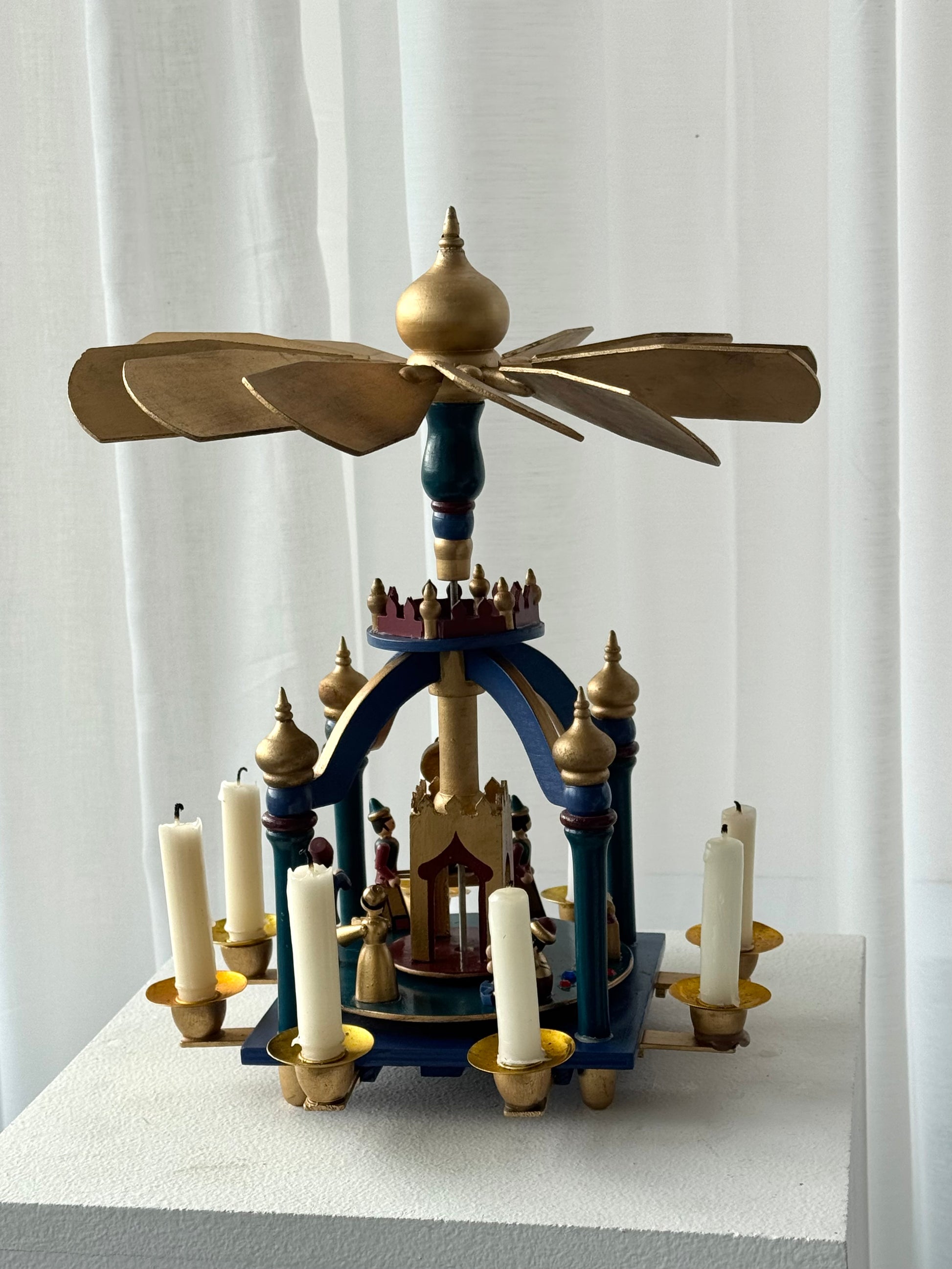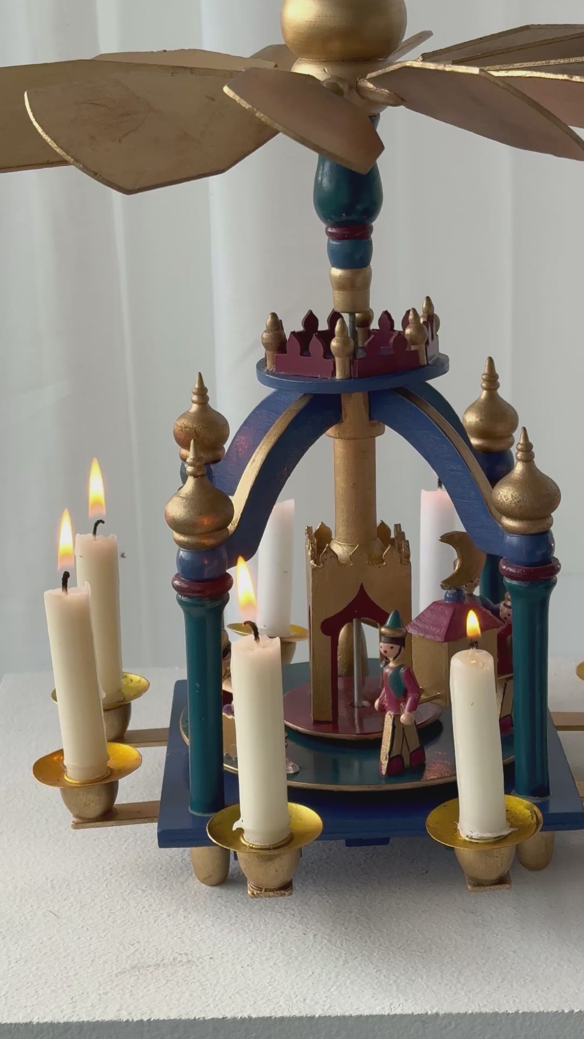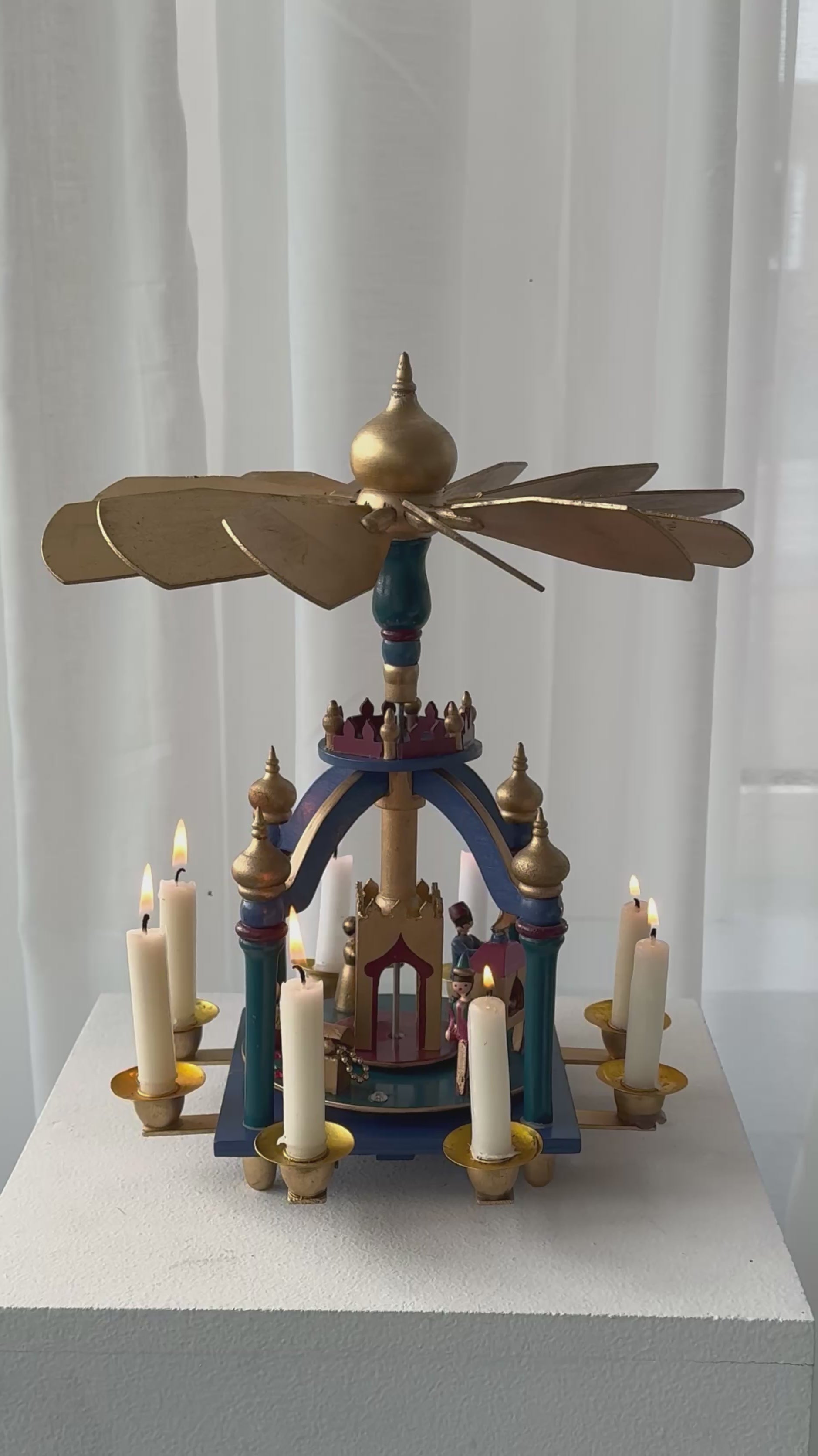 Please note: All pyramids are handmade and either vintage or antique. Minor imperfections, scratches, or signs of age may occur. No figures are missing, and the pyramid spins as it should. However, the wings or other parts may occasionally need a little adjustment to help it start turning. Should any issues arise, you are always welcome to contact me for assistance.