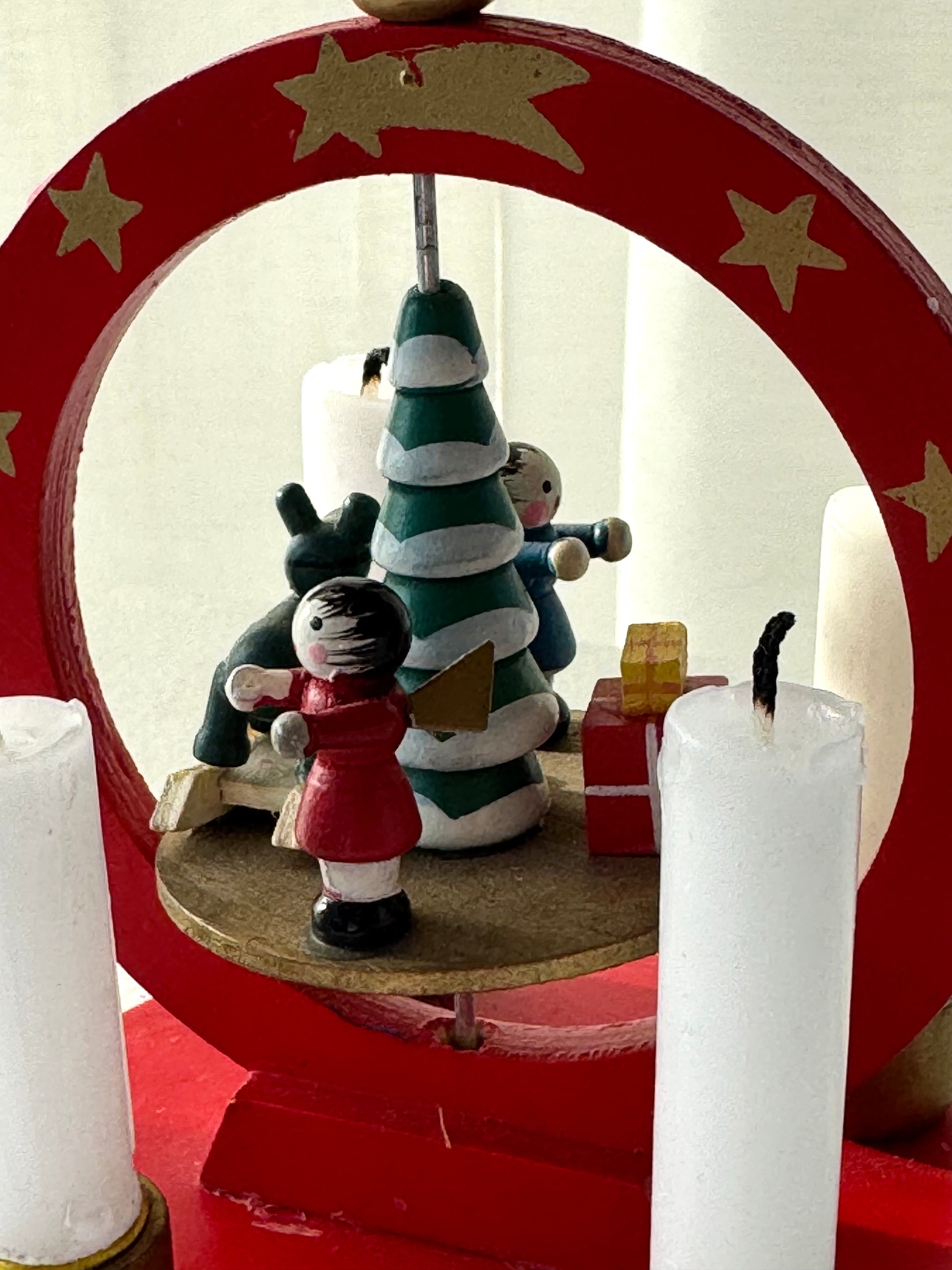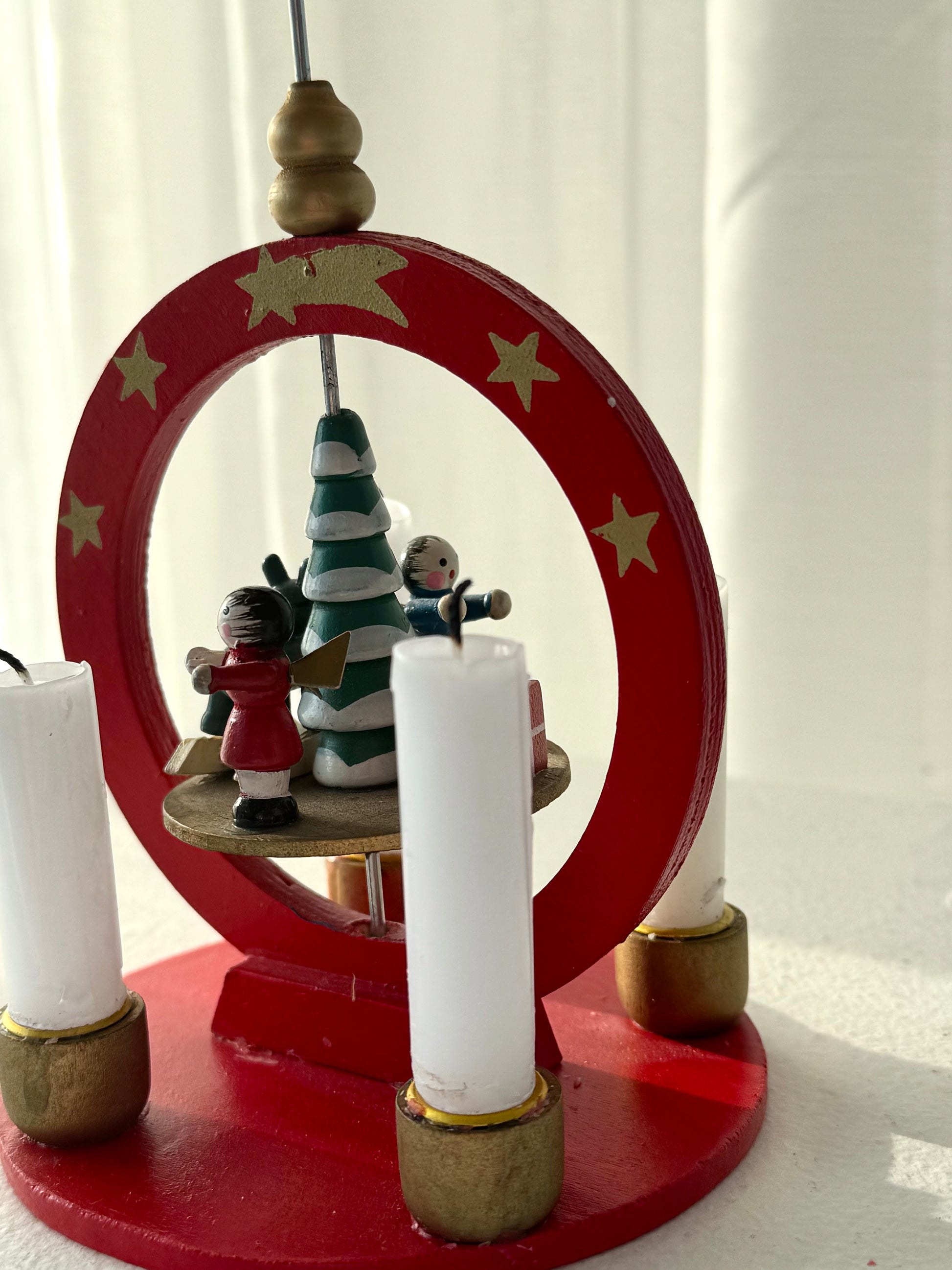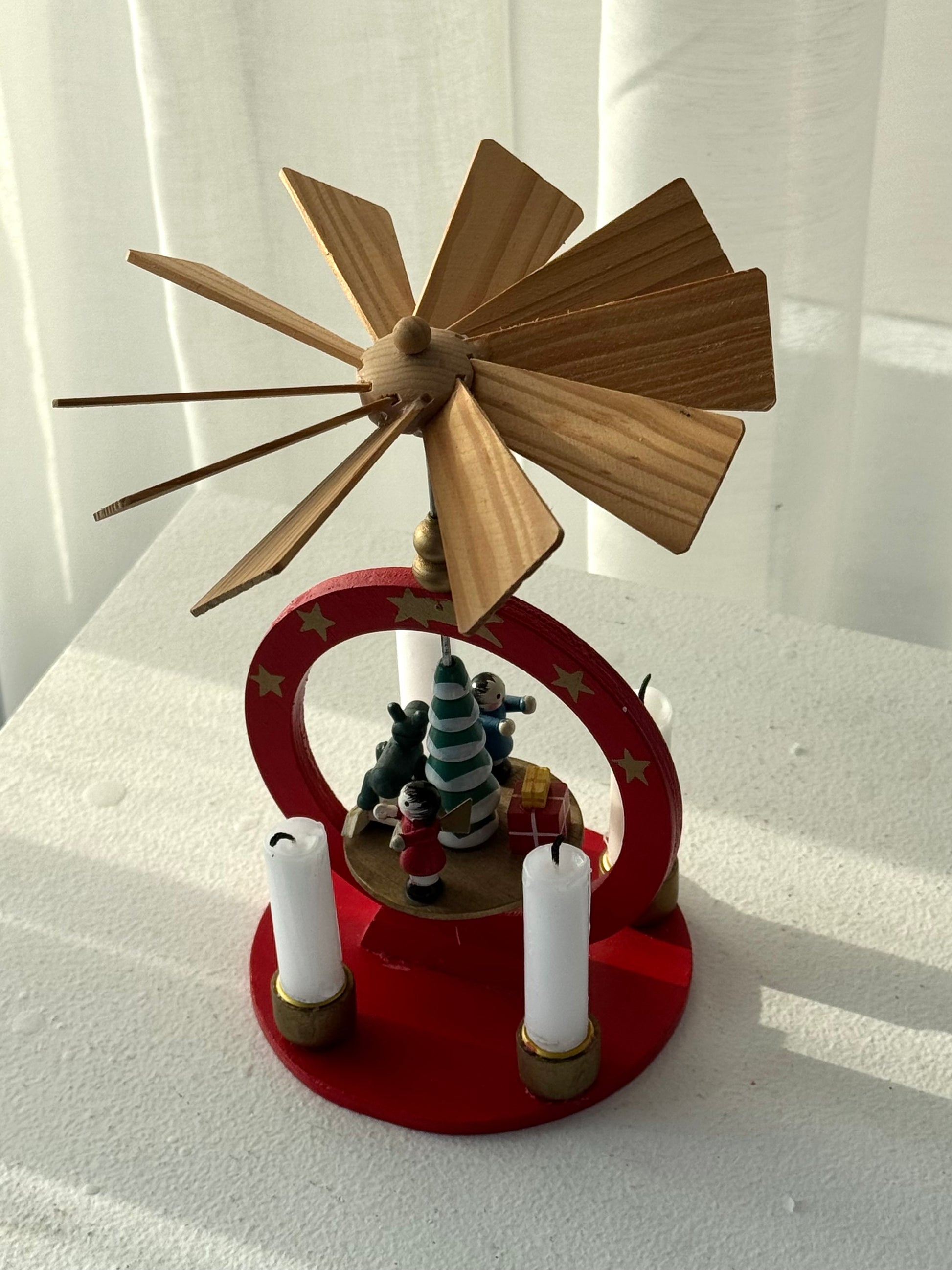 Please note: All pyramids are handmade and either vintage or antique. Minor imperfections, scratches, or signs of age may occur. No figures are missing, and the pyramid spins as it should. However, the wings or other parts may occasionally need a little adjustment to help it start turning. Should any issues arise, you are always welcome to contact me for assistance.