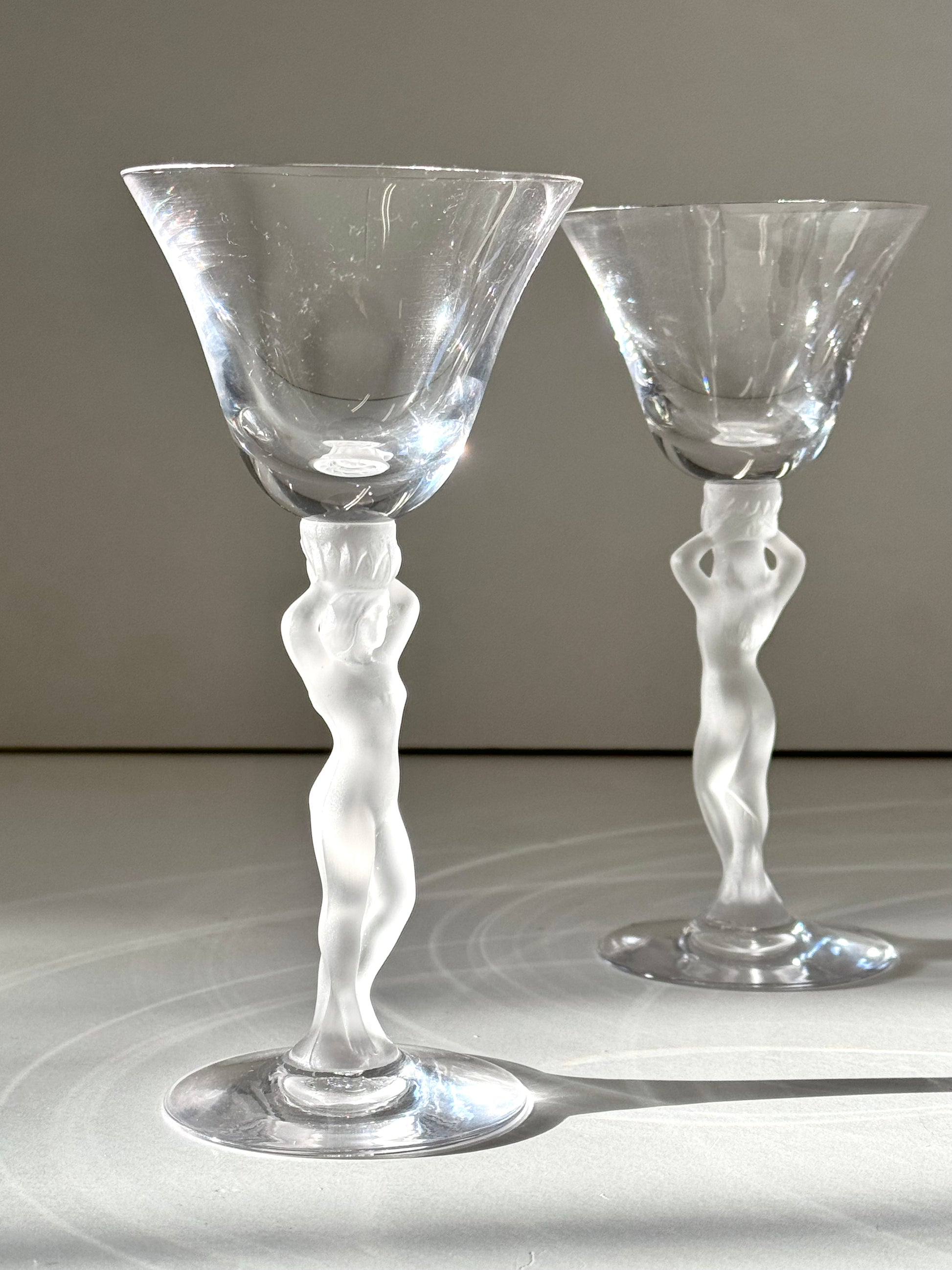 3 pieces of venus stem cocktail glasses. One with a tiny chip. Sold together.