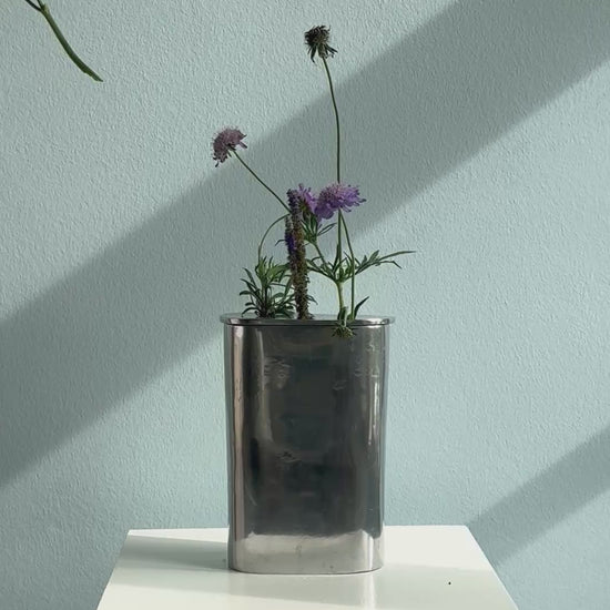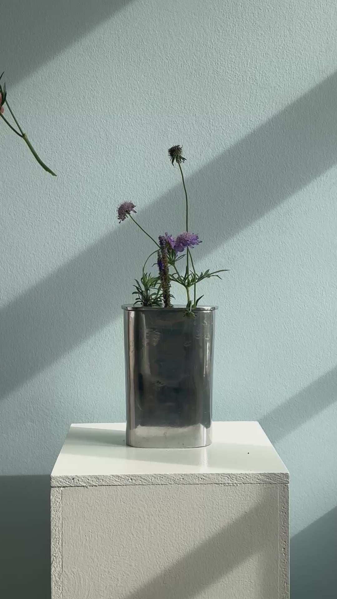 Fantastic vintage aluminum vase. Comes with a flower arranger in the form of a removable lid. Can be used both with and without. Shows signs of use, but is in very good condition.