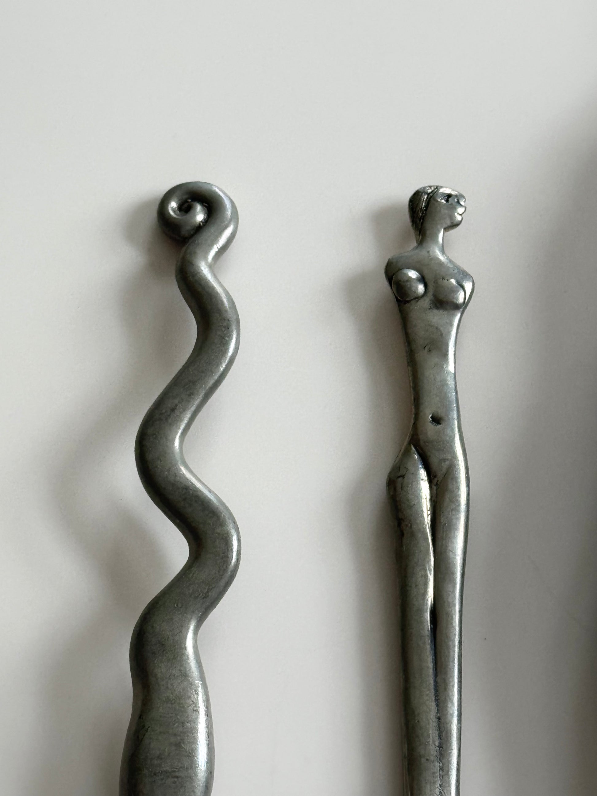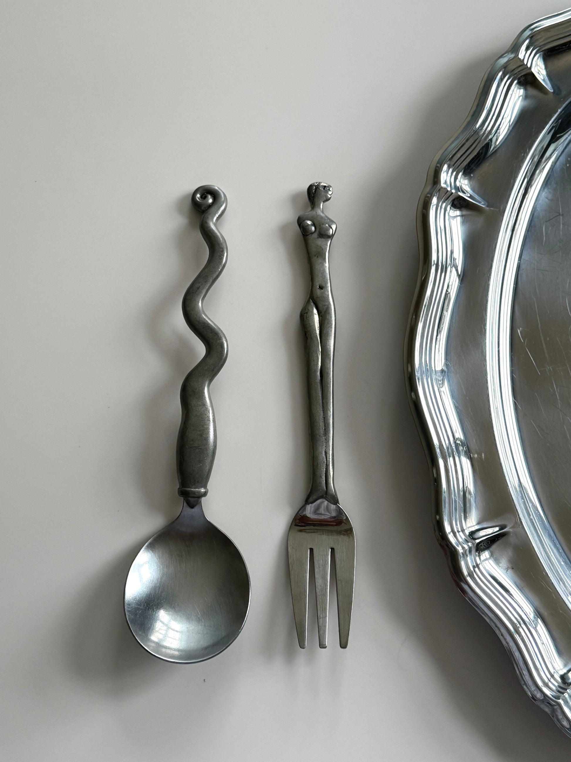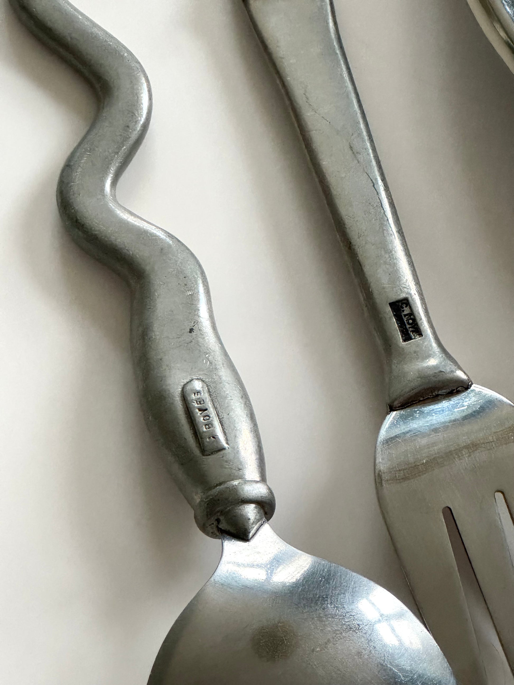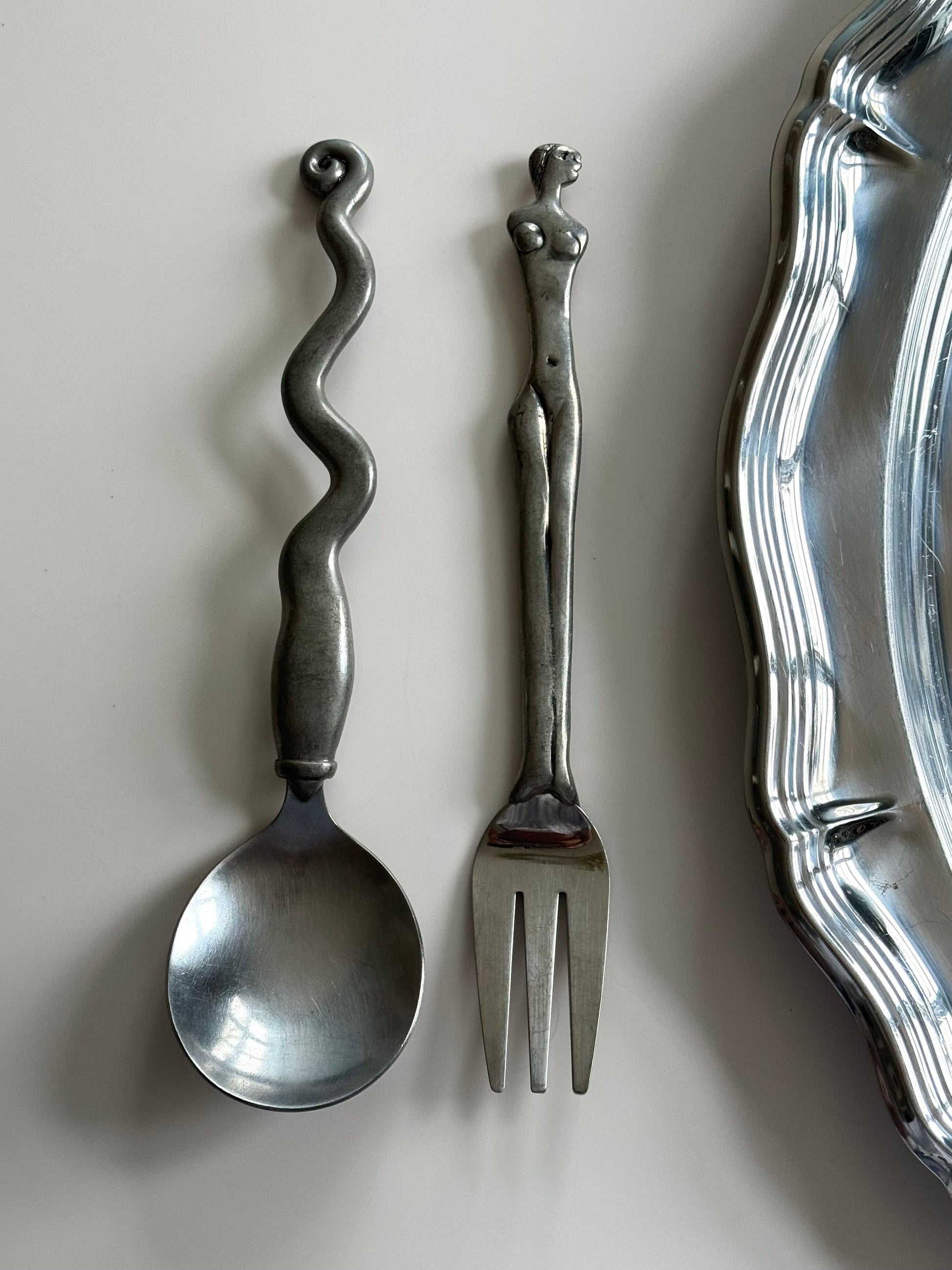 Beautiful serving flatware, handmade by the south African designer Carrol Boyes. Great vintage condition. 1 serving spoon and 1 serving fork available, Can also be used as salad servers. Price is for one.