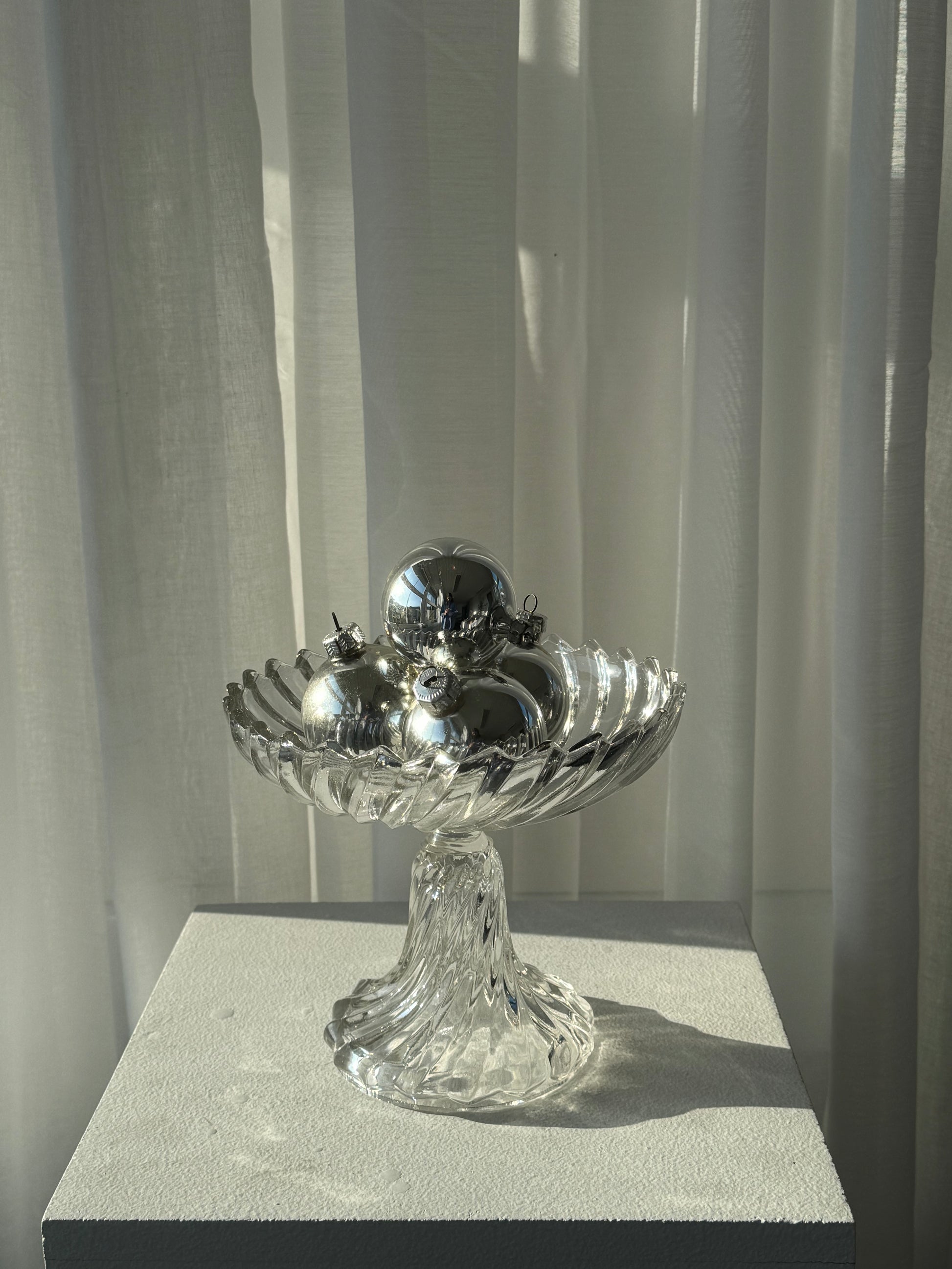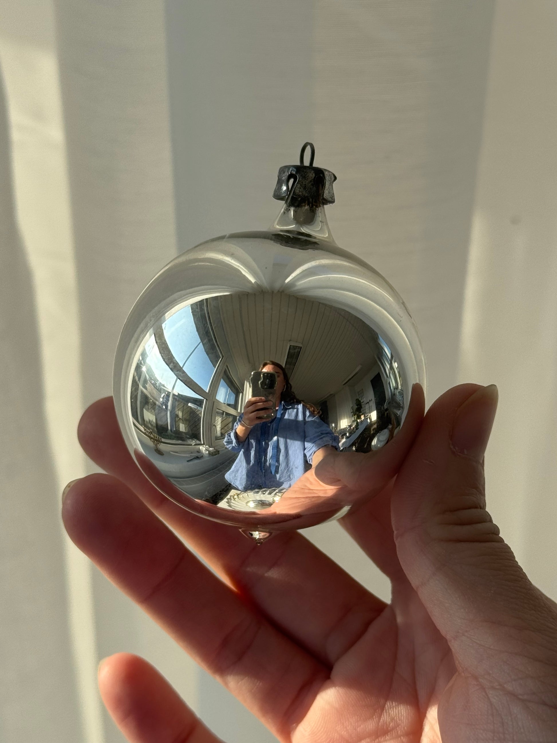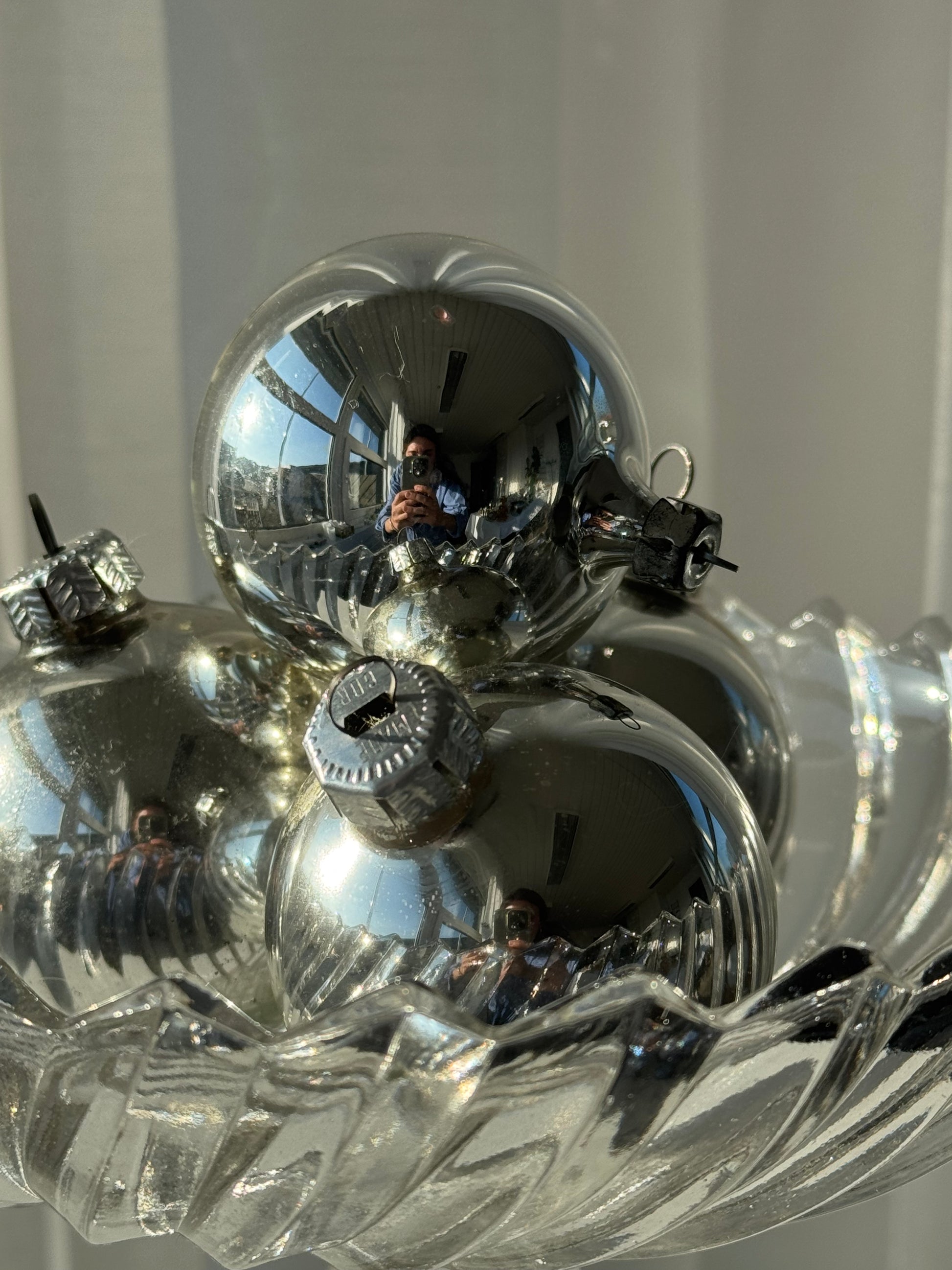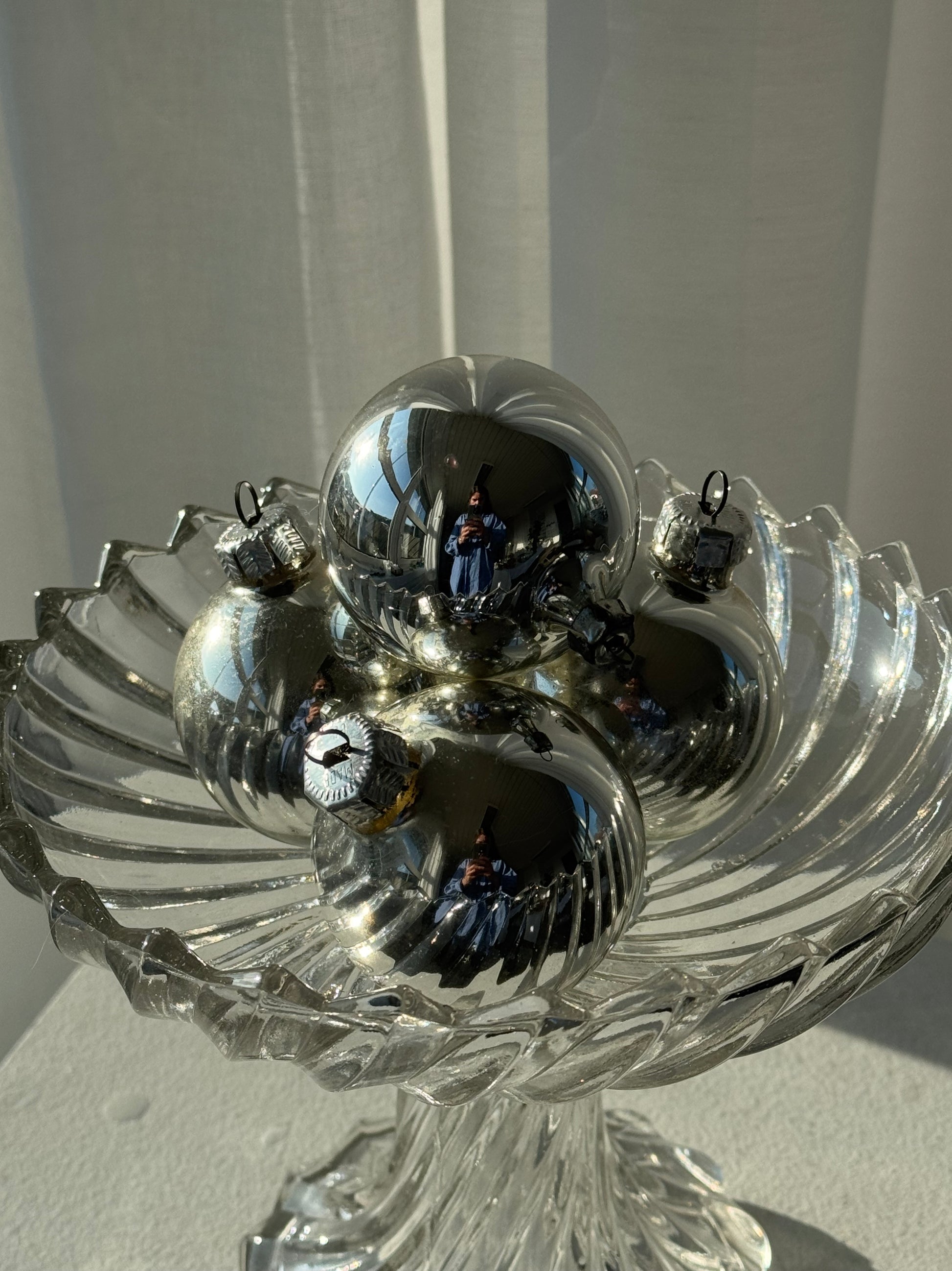 Cute vintage Silver colored glass ornaments, sold as a set of 4.